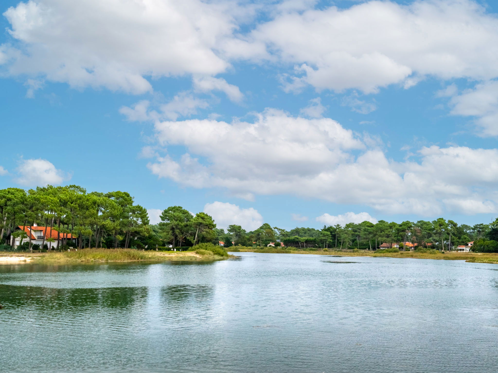 Mimizan Plage: Residence "Hameau du courant". 400 m from the edge of the forest, 1 km from the sea, 10 km from the lake, 1 km from the beach, 100 m from the river. Shop 1.2 km, grocery 2 km, supermarket 2 km, shopping centre 5 km, restaurant 1.2 km, bakery 1.5 km, pedestrian zone 2 km, bus stop 1.2 km, sandy beach "sud digue" 1 km, bathing lake "Aureilhan" 10 km. Golf course (9 hole) 6 km, surf school 2 km, tennis 1 km. Nearby attractions: Biscarrosse 35 km, Arcachon le pilat 75 km, Musée de marquèze 45 km. Well-known lakes can easily be reached: Aureilhan 10 km.