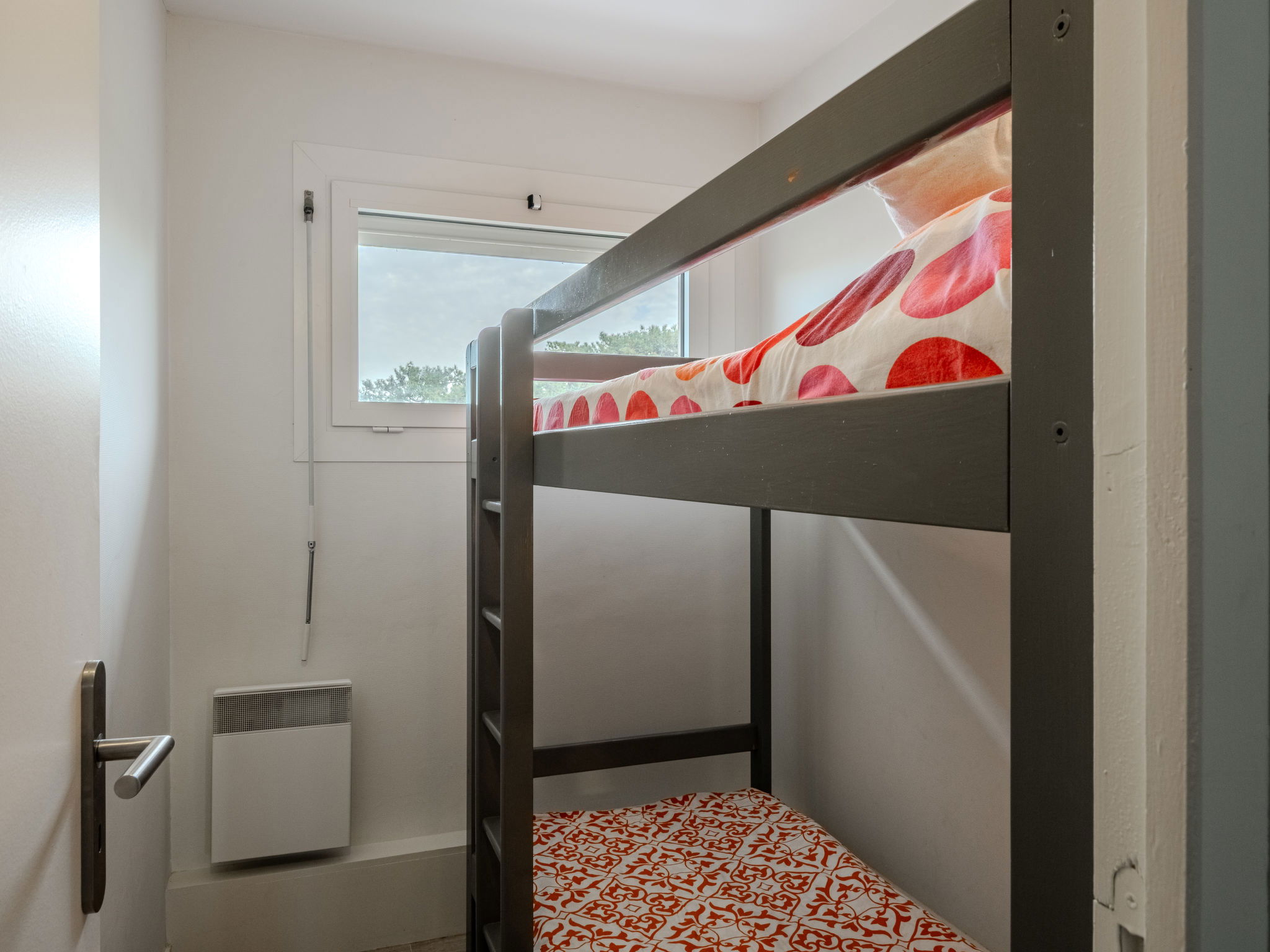 3-room apartment 35 m2 on 2nd floor. Living/dining room with TV (flat screen). 1 room with 1 french bed (1 x 160 cm, length 190 cm). Sleeping alcove with 1 x 2 bunk beds (90 cm, length 200 cm). Open kitchen (oven, dishwasher, 1 induction hot plates, 2 gas rings, toaster, kettle, microwave, freezer, electric coffee machine). Shower, sep. WC. Electric heating. Small balcony 3 m2. Facilities: washing machine, iron, hair dryer. Internet (WiFi, free). Please note: non-smokers only. 1 small pet/ dog allowed. Smoke alarm. Offer by a private individual according to Art. 155, IV of CGI.