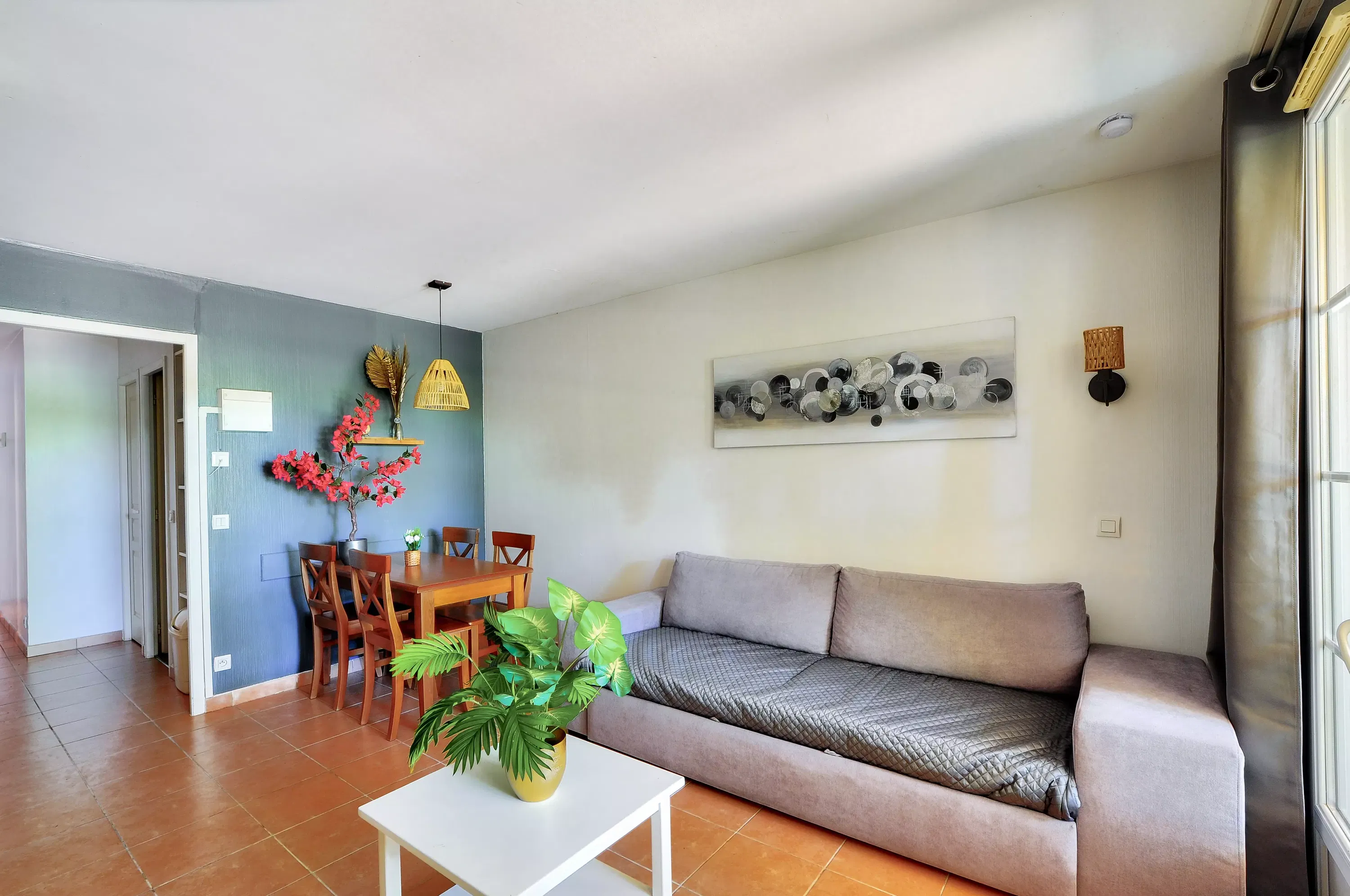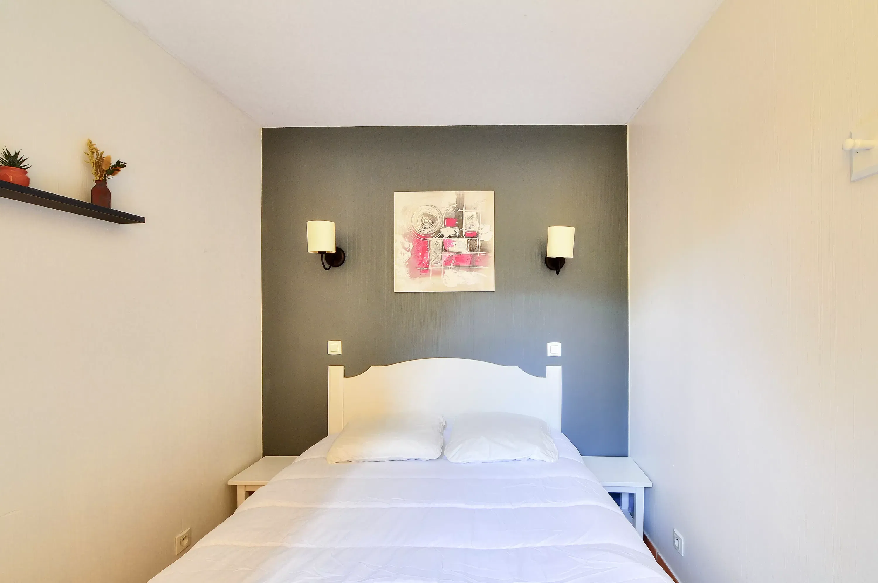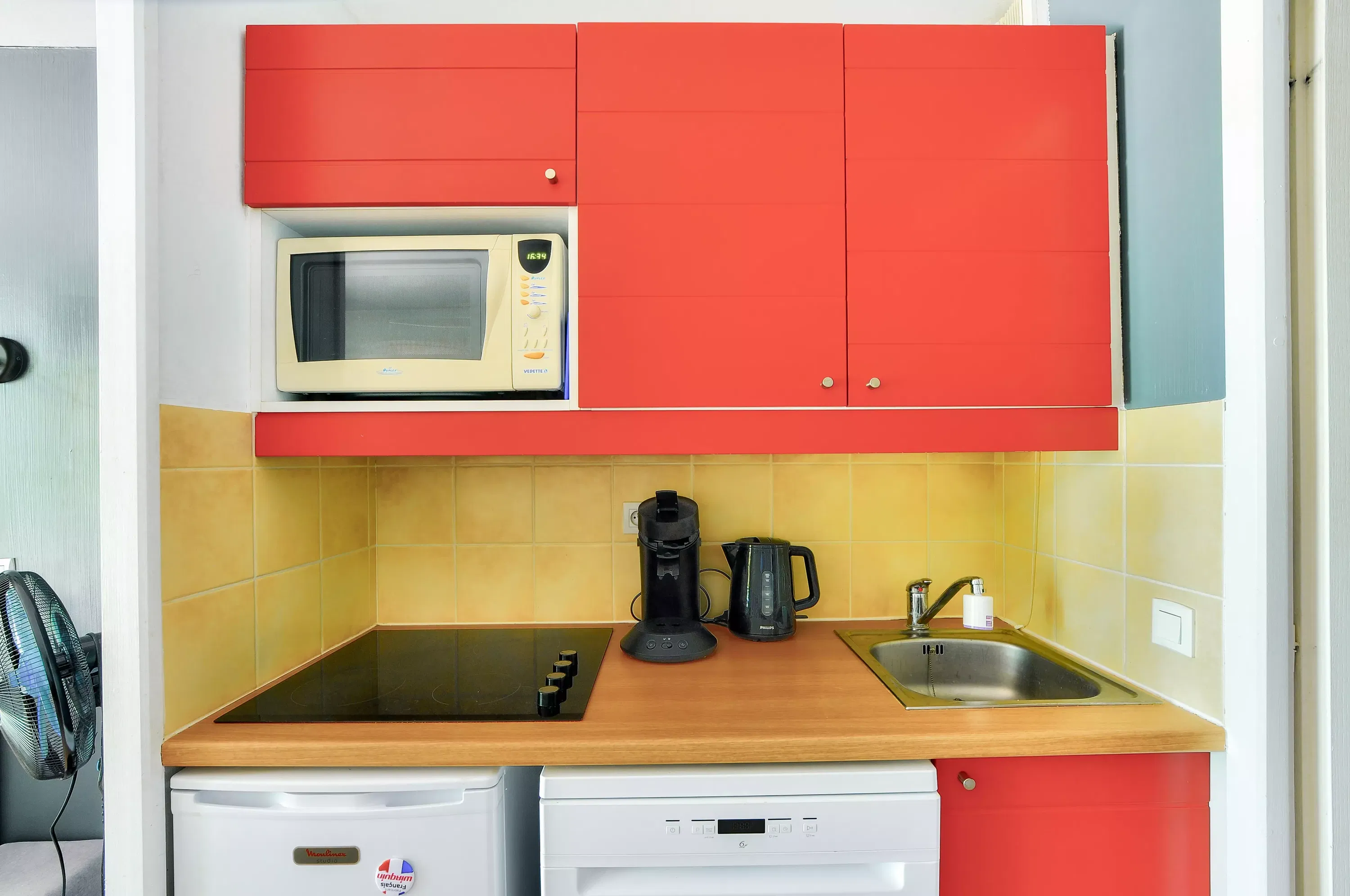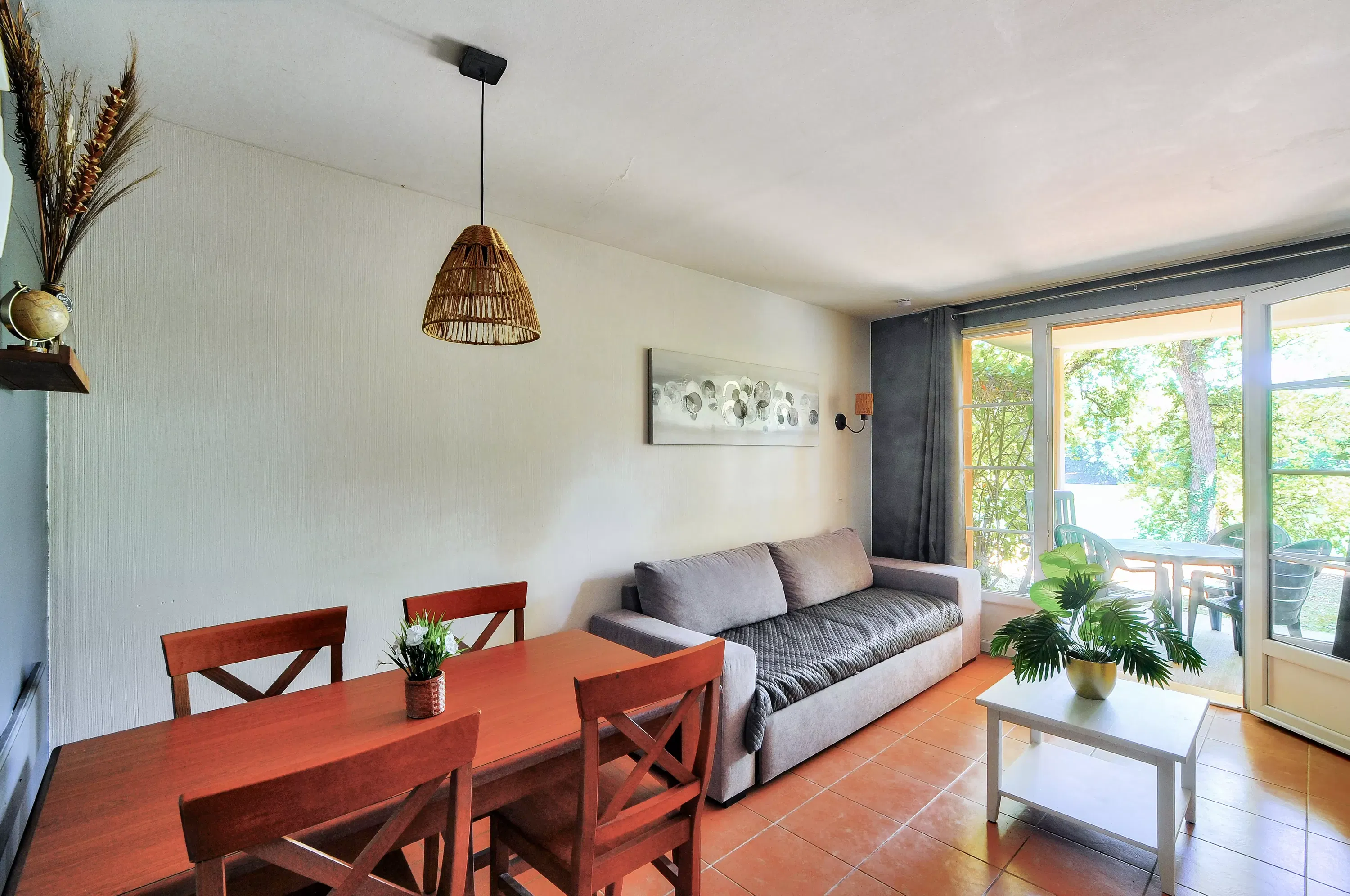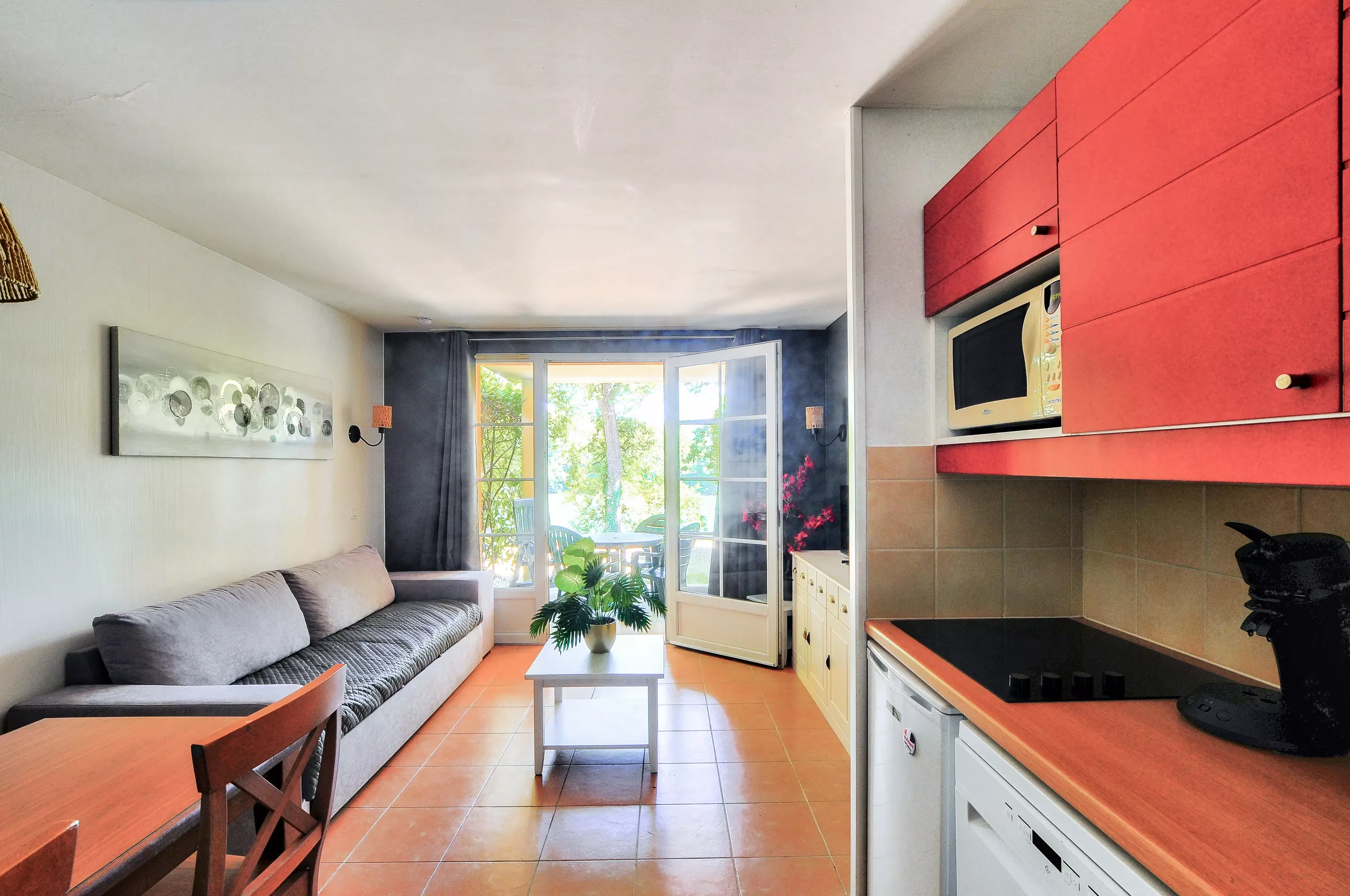 The advantages of your rental: Functional and pleasant apartment, with a northwest-facing covered terrace offering a view of the forest. Ideal for 4 people, it has a living room with a sofa bed, a bedroom with a double bed, a bathroom with a bathtub and a separate toilet. You will enjoy a quiet outdoor space, a parking space, as well as a well-equipped kitchen (microwave, refrigerator, coffee maker, kettle, toaster, dishwasher, hob). Perfect for a relaxing stay, less than 500m from the nearest activities and a few minutes' drive from the shops.