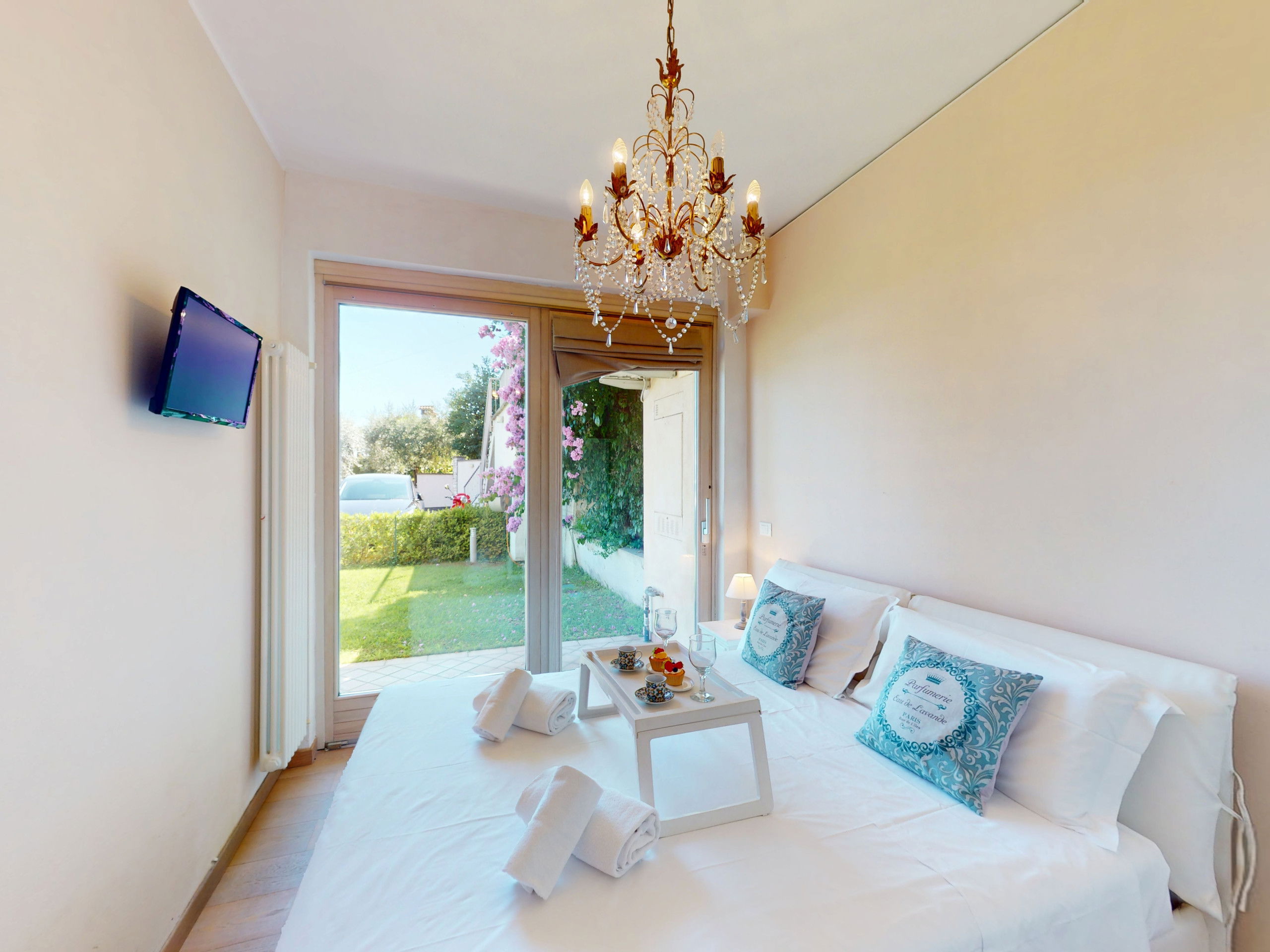Outside, you can enjoy a charming private garden equipped with outdoor furniture, perfect for moments of relaxation or outdoor lunches.