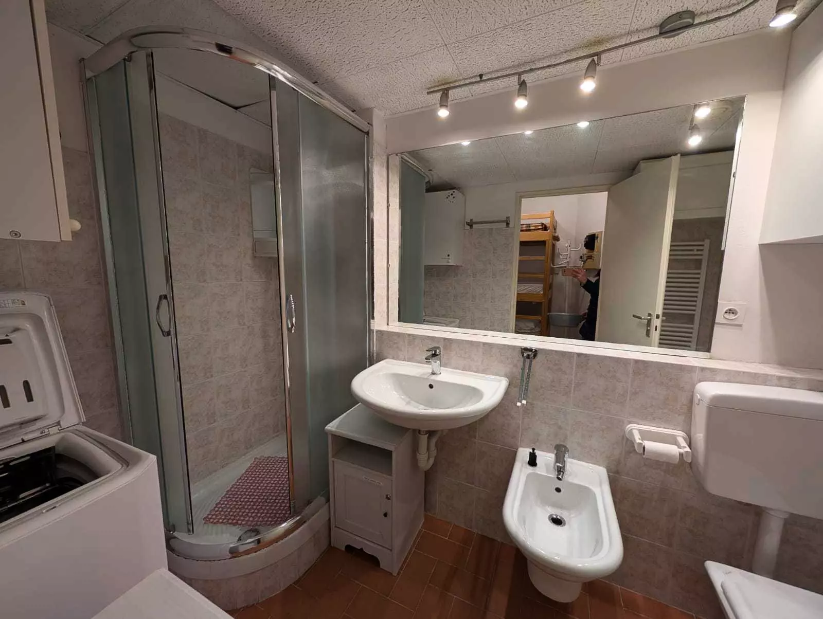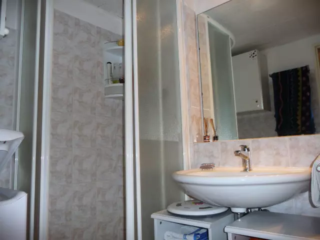 Shower room: Shower cubicle, sink, storage, WC, washing machine, 1 chest of drawers, 1 wall unit.