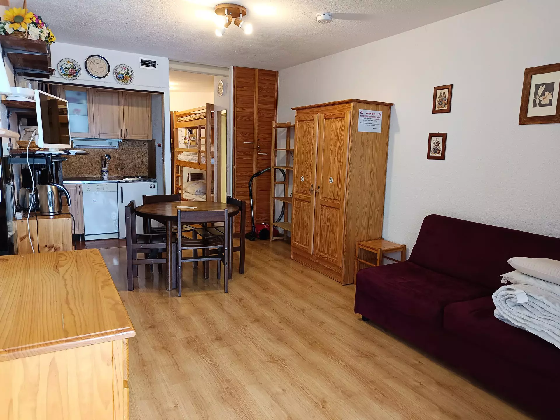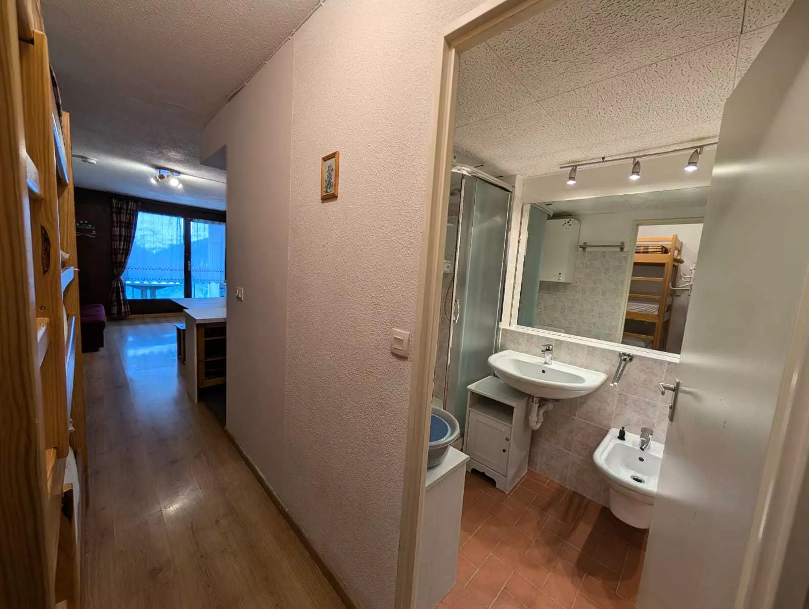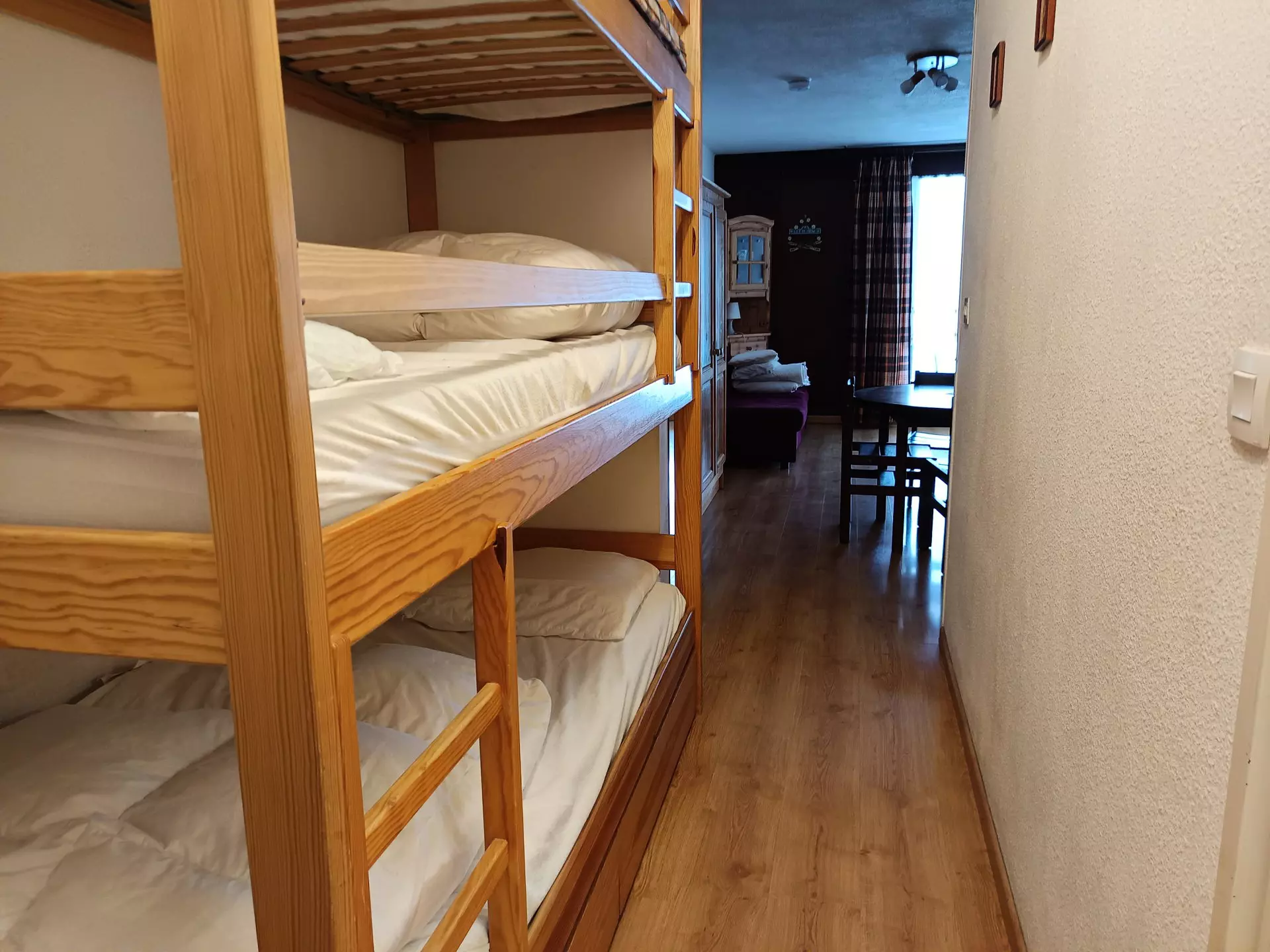 Mountain corner separated from the living room by a Venetian blind: 2 single bunk beds (80x190)