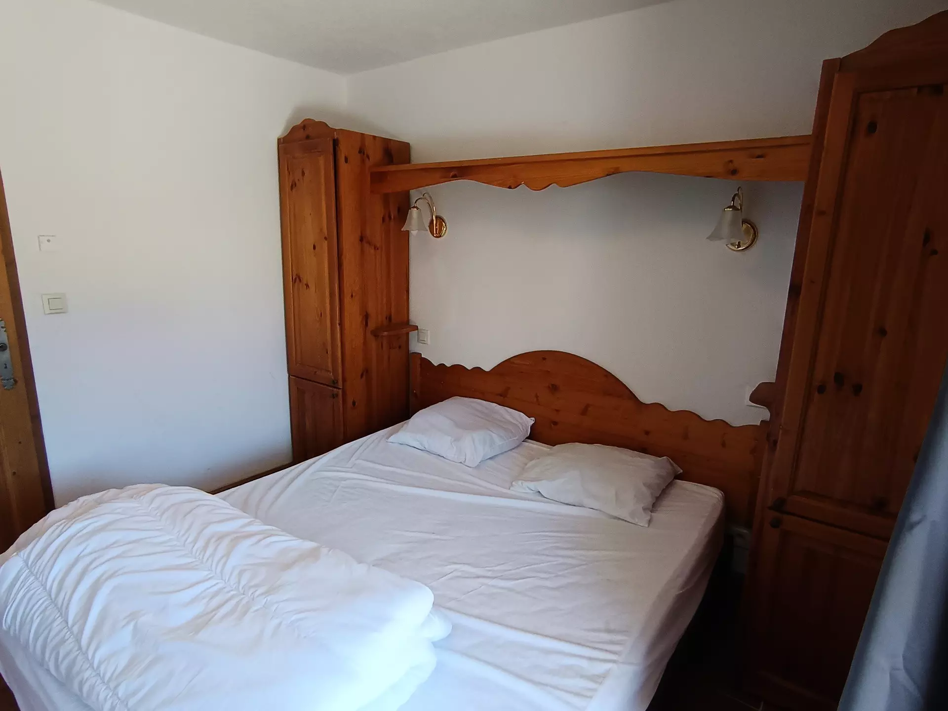 Bedroom 1: 1 double bed (160 cm) + 2 storage columns on each side of the bed – French window opening onto the terrace