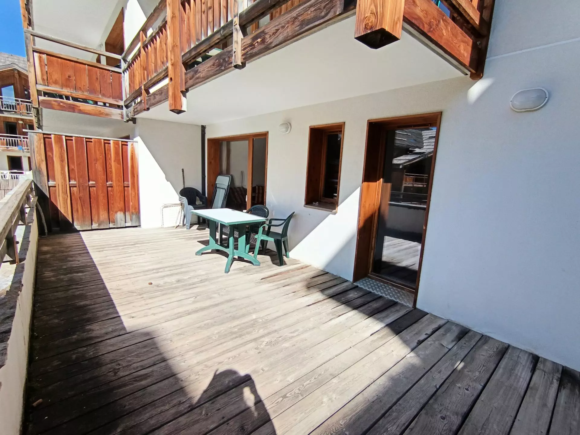 Large 21m² south-facing terrace equipped with a table and 2 garden chairs.