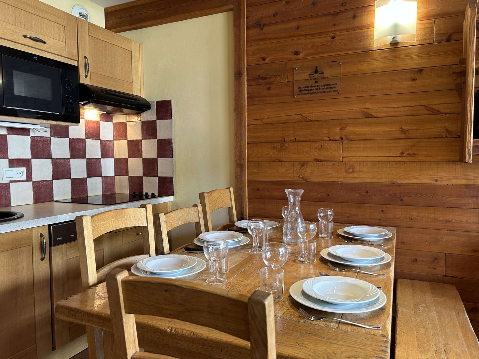 - a kitchen with ceramic hob, oven, microwave, dishwasher.