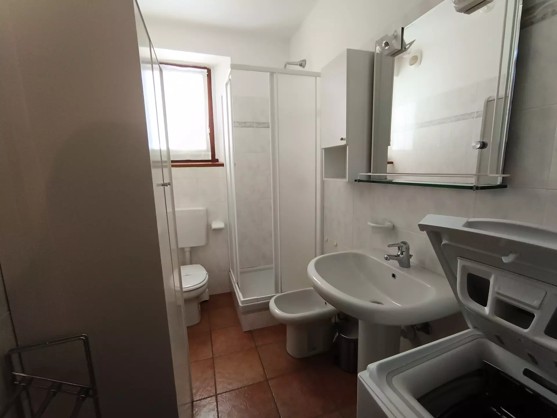Shower room: Shower cubicle, sink, bidet, WC, washing machine, towel rack.