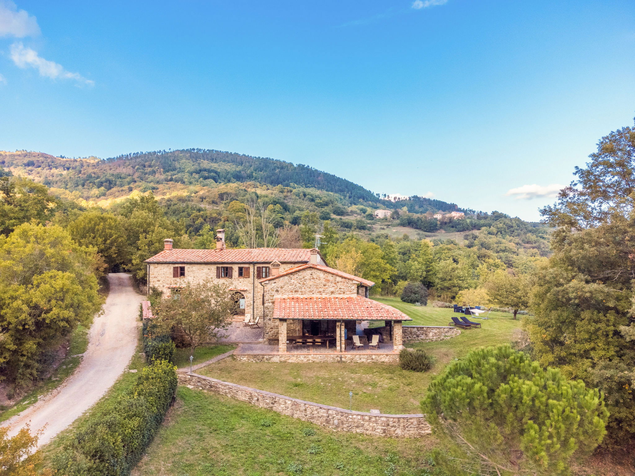 Beautiful, rustic house "Podere Salcerini", 750 m a.s.l., surrounded by trees and meadows. 3 apartments in the property. 7 km from the centre of Montieri, 1.5 km from the centre of Gerfalco, 20 km from the centre of Massa Marittima, in a secluded, elevated position, 45 km from the sea, in the countryside. For shared use: property 2 ha (fenced), terraced garden with trees, meadow. Barbecue. In the house: washing machine (for shared use), heating available only from 22.Oct. - 07.Apr.. Motor access (1.2 km via unmade road). Parking (for 3 cars) at the house. Grocery 1.5 km, supermarket 7 km, restaurant 1.5 km, bar 1.5 km, bicycle rental 7 km, bus stop 2 km, sandy beach "Follonica" 45 km, thermal baths "Terme di Sassetta" 40 km. Riding stable 7 km, walking paths from the house 10 m. Nearby attractions: San Galgano Abbey 27 km, Siena 58 km, Radicondoli 25 km, Roccatederighi 24 km, Castiglione della Pescaia 57 km. Well-known lakes can easily be reached: Accesa 29 km. Hiking paths: Riserva Naturale di Cornate e Fosini. Please note: car recommended. The house stands in the natural reserve "Riserva Naturale Cornate e Fosini".
