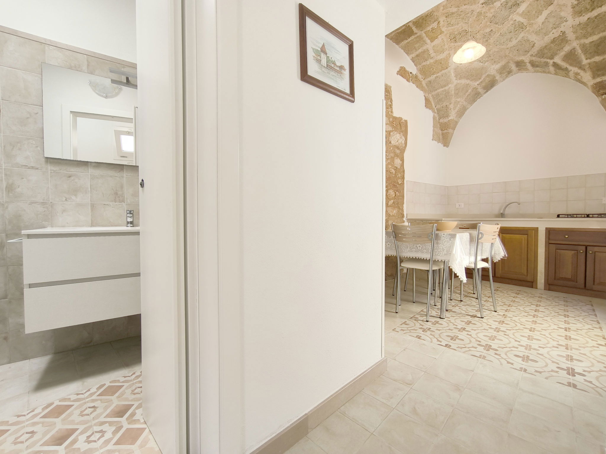 Salento: Historical 3-family house "Le Cementine", from the 19th century, renovated. 3 apartments in the property. In the resort 400 m from the centre of Morciano di Leuca, 2.5 km from the centre of Salve, 4.5 km from the centre of Torre Vado, 4.5 km from the sea, 4.5 km from the beach. For shared use: courtyard. Room cleaning on request (extra). Airport transfer (extra). Public parking on the road. Shop, grocery 250 m, restaurant 150 m, bus stop "Morciano di Leuca" 400 m, sandy beach "Marina di Pescoluse" 7 km. Nearby attractions: Santa Maria di Leuca 12 km, Gallipoli 43 km, Otranto 57 km, Lecce 79 km. On request: airport transfer to the holiday accommodation.