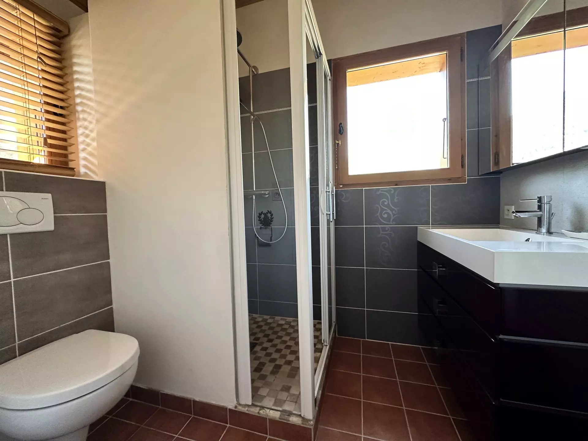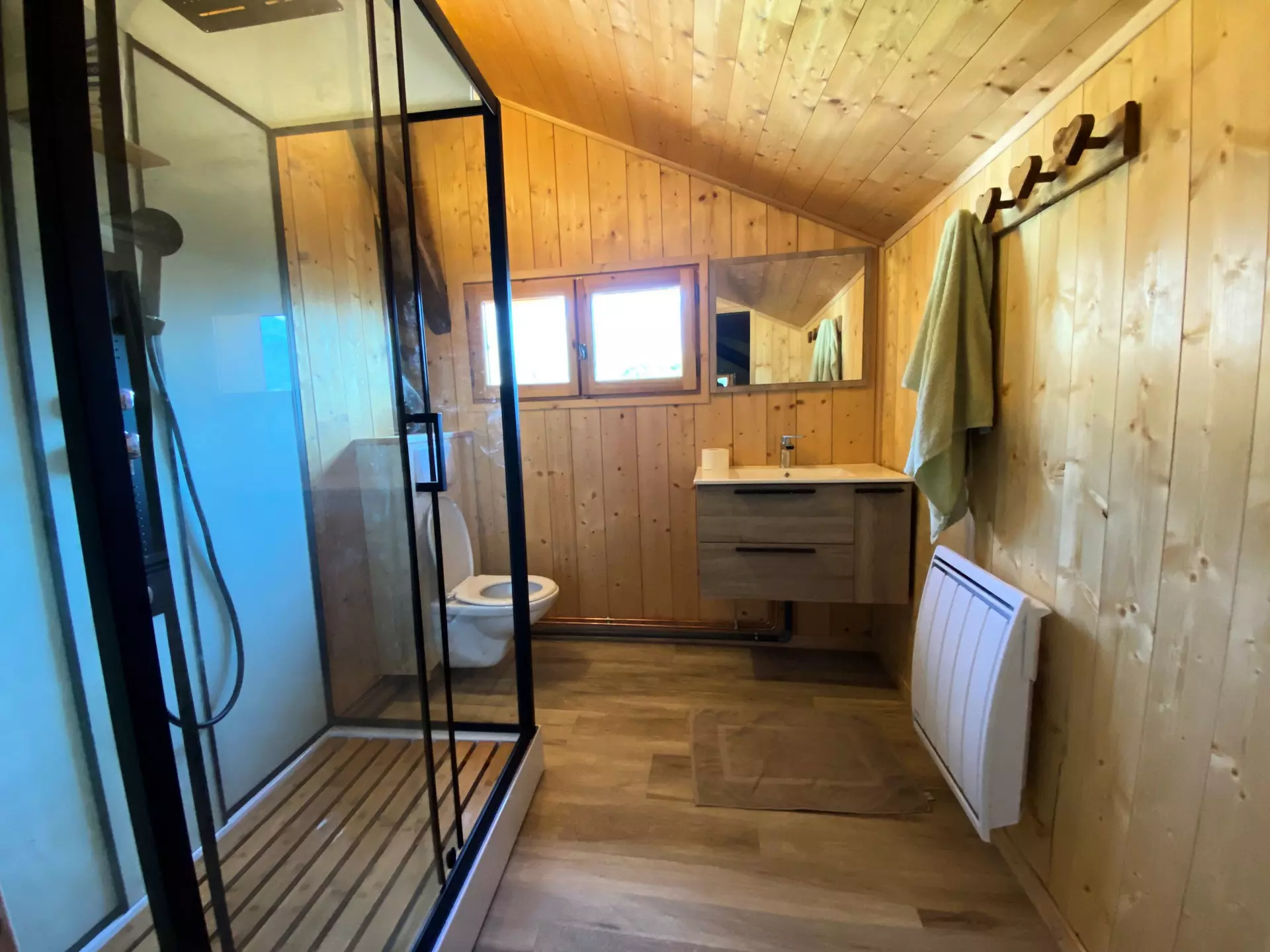 Upstairs you will find a bedroom, a shower room and a "dormitory" under the slope