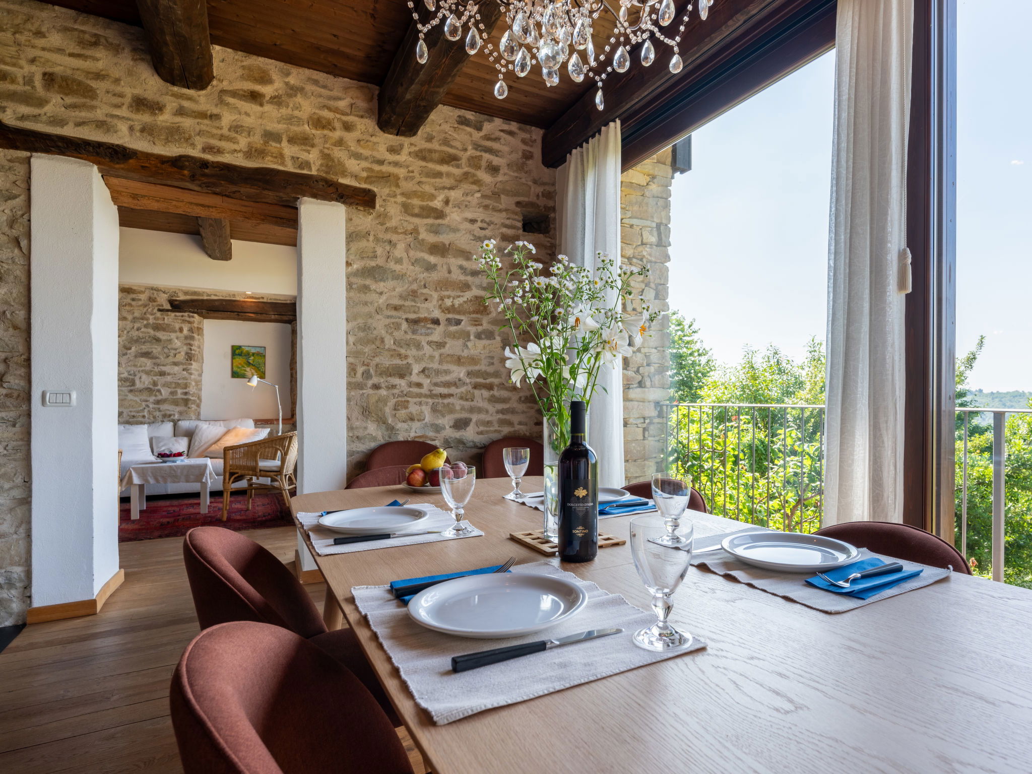 "Purin I", 5-room apartment 130 m2 on 2 levels. Renovated in 2025, beautiful and tasteful furnishings: living room with panoramic window with Scandinavian wood stove. Exit to the terrace. Dining room. 1 double bedroom. Open kitchen (oven, dishwasher, Gas stove, 4 gas rings, toaster, kettle, electric coffee machine) with wood-burning stove. Shower/WC. Upper floor: living room with panoramic window. Exit to the terrace. 1 double bedroom with shower/WC. Heating. Heating available only from 01.10. to 15.04. Wooden floors, natural stone floors. Terrace 10 m2, terrace 15 m2. Terrace furniture. Beautiful panoramic view of the mountains and the countryside. Facilities: washing machine, dryer. Internet (WiFi, free). Please note: maximum 1 pet/ dog allowed. Private entrance, smoke alarm, fire extinguisher. IT004145C26N3WQPPT