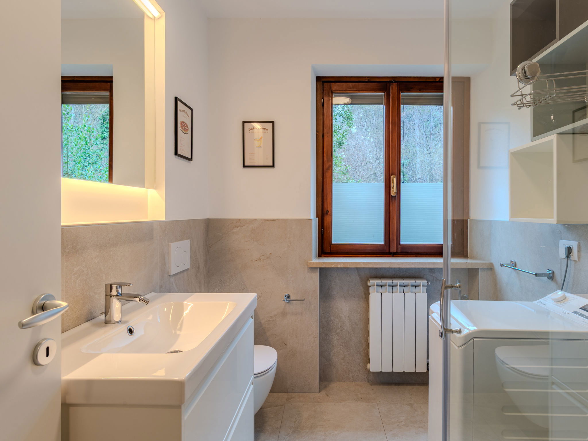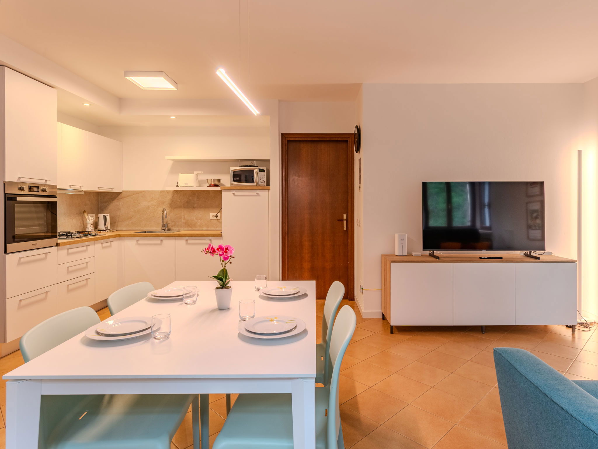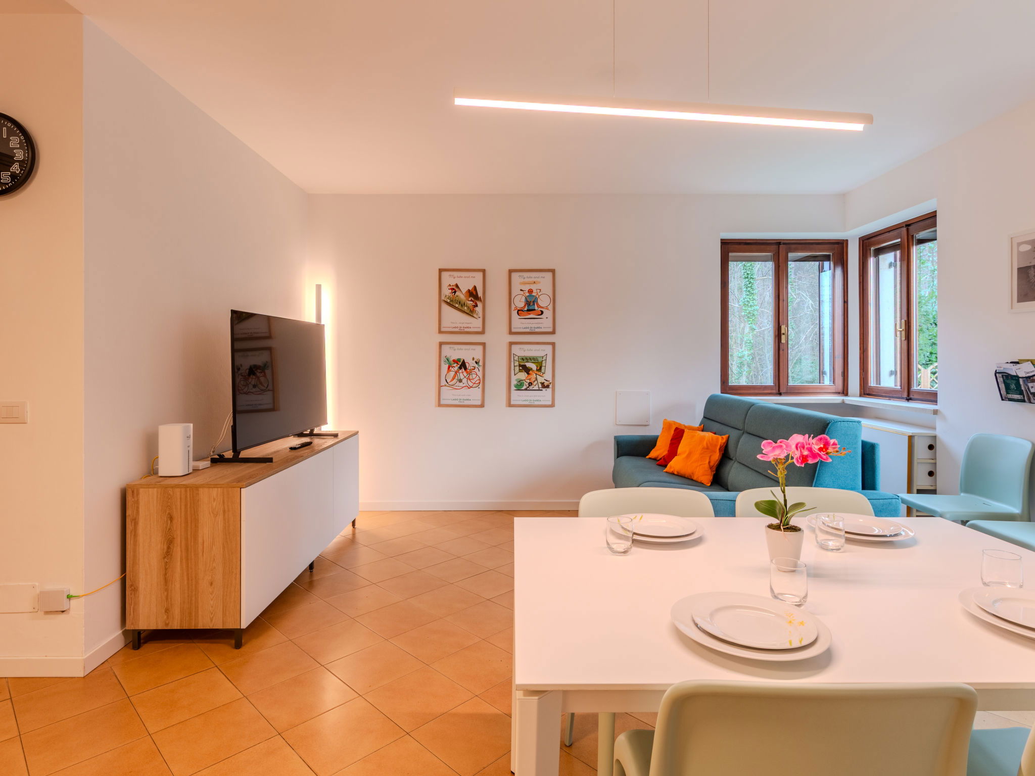 "Le Busatte", 3-room apartment 80 m2, on the ground floor. Spacious, very comfortable and modern furnishings: living/dining room with TV. 1 room with 2 beds. 1 double bedroom with 1 double bed. Exit to the balcony. Kitchen in the entrance (oven, dishwasher, Gas stove, 4 gas rings, toaster, kettle, microwave) with dining table. Shower/bidet/WC. Heating. Balcony, large garden 100 m2. Terrace furniture, barbecue, deck chairs, sitting area. Partial view of the lake and the mountains. Facilities: washing machine, iron, mosquito net, baby cot for up to 2 year olds, hair dryer. Internet (WiFi, free). Garage on the property (1 car). Please note: non-smokers only. Maximum 1 pet/ dog allowed. Private entrance, smoke alarm, fire extinguisher, no lift. IT022124C2Z6QWZYWH