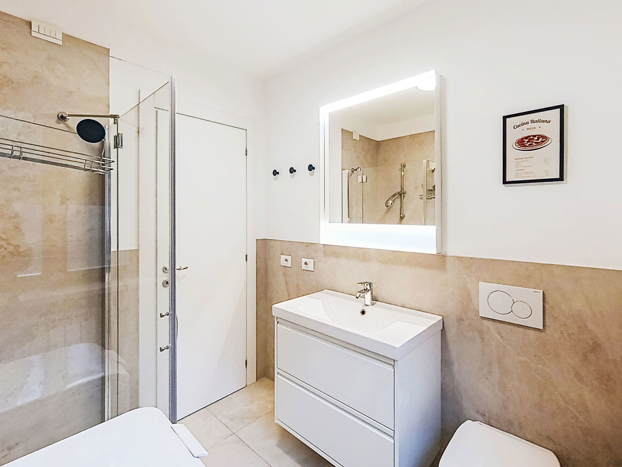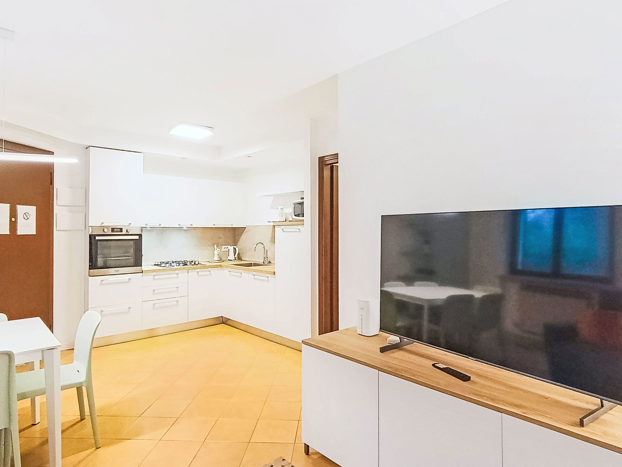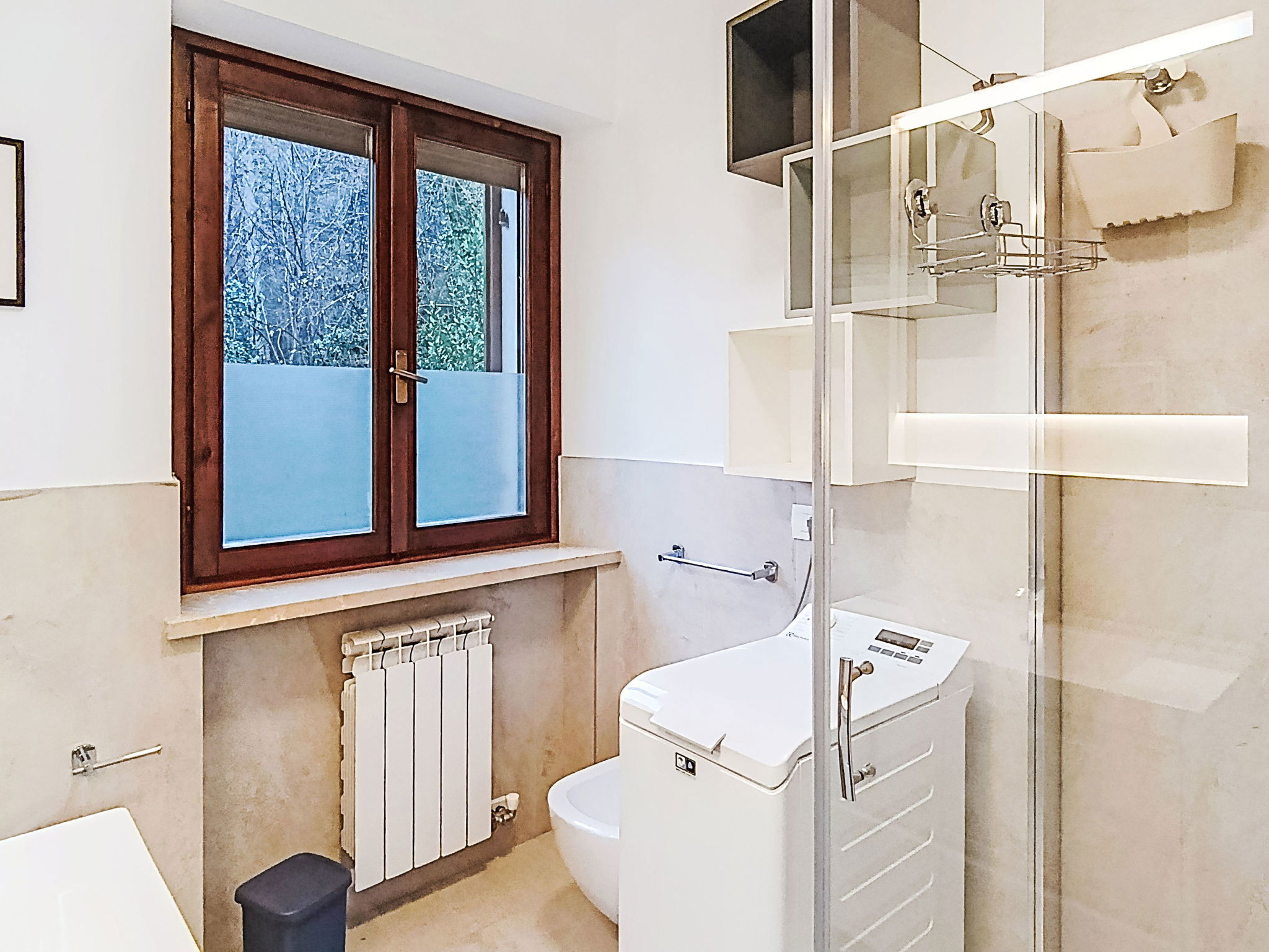 "Le Busatte", 3-room apartment 80 m2, on the ground floor. Spacious, very comfortable and modern furnishings: living/dining room with TV. 1 room with 2 beds. 1 double bedroom with 1 double bed. Exit to the balcony. Kitchen in the entrance (oven, dishwasher, Gas stove, 4 gas rings, toaster, kettle, microwave) with dining table. Shower/bidet/WC. Heating. Balcony, large garden 100 m2. Terrace furniture, barbecue, deck chairs, sitting area. Partial view of the lake and the mountains. Facilities: washing machine, iron, mosquito net, baby cot for up to 2 year olds, hair dryer. Internet (WiFi, free). Garage on the property (1 car). Please note: non-smokers only. Maximum 1 pet/ dog allowed. Private entrance, smoke alarm, fire extinguisher, no lift. IT022124C2Z6QWZYWH
