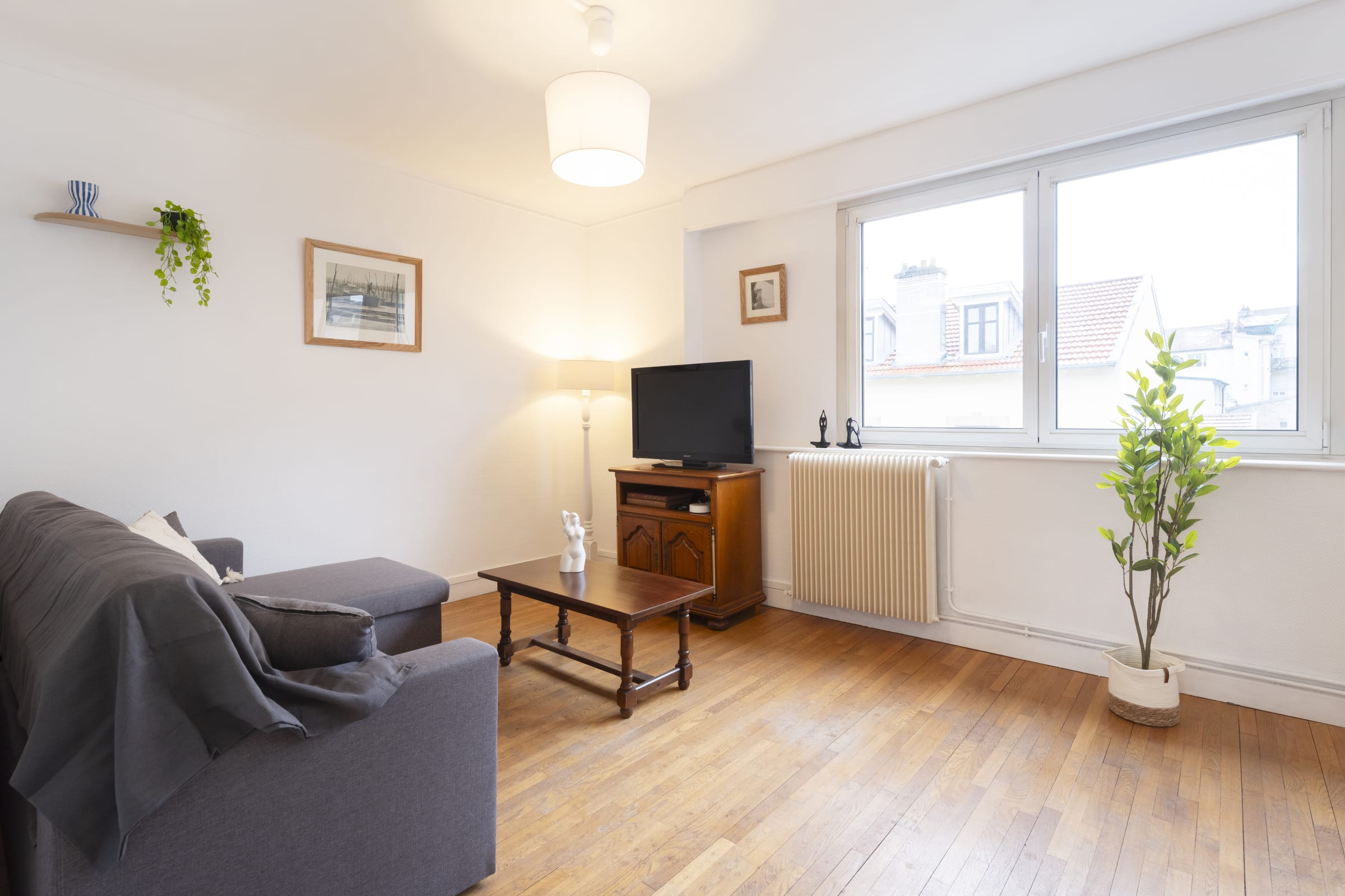 Fully renovated, this apartment has been designed to offer a warm and functional atmosphere. Located on the ground floor, it provides easy and convenient access as well as a lovely view of the garden. You will find a comfortable living area, a separate bedroom, and all the necessary amenities for a peaceful and relaxing stay. A true urban cocoon, perfect for unwinding after a day of work or sightseeing.
