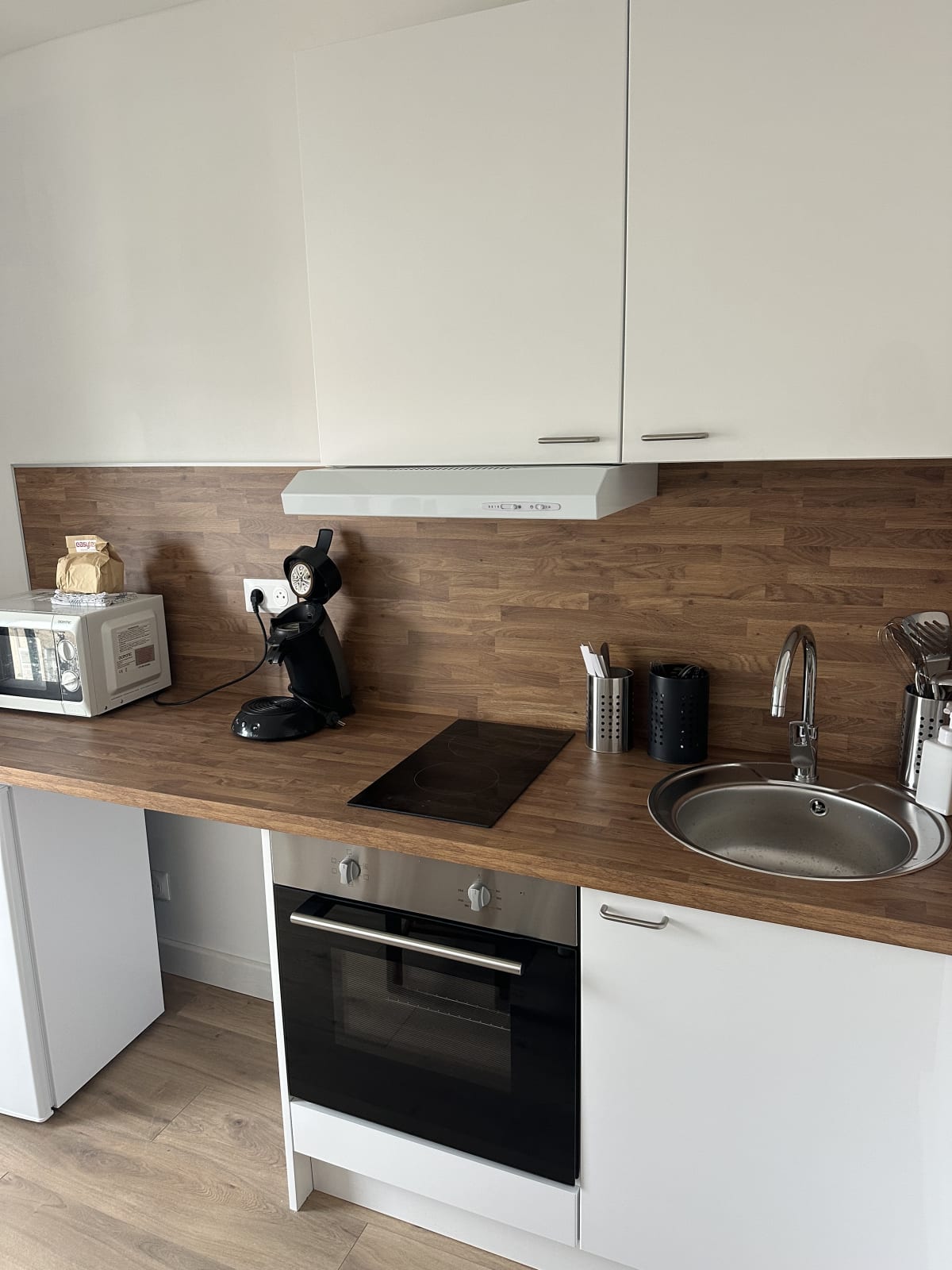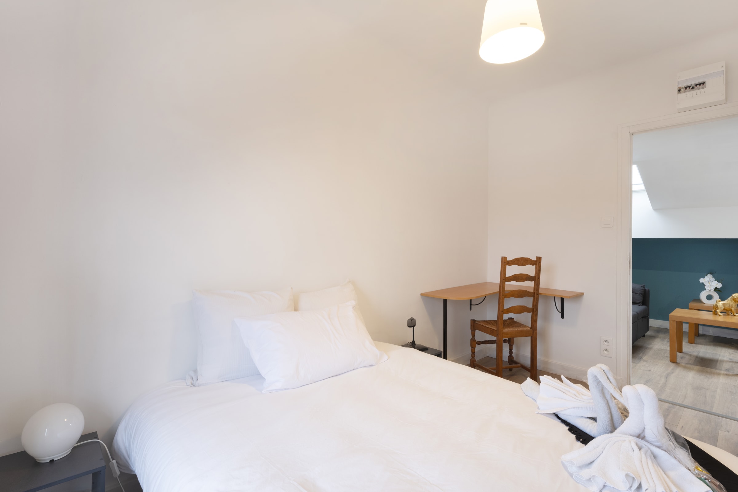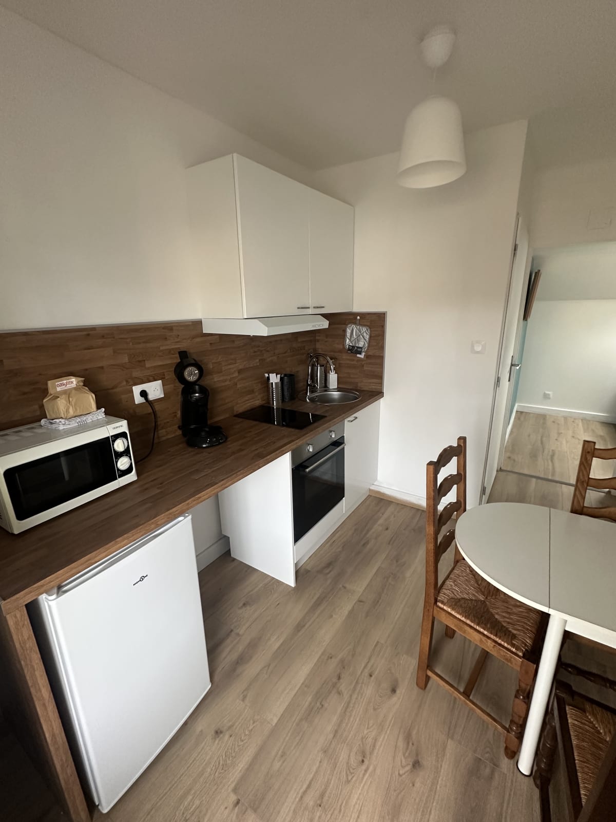 Fully renovated, this apartment has been designed to offer a warm and functional atmosphere. Located on the ground floor, it provides easy and convenient access as well as a lovely view of the garden. You will find a comfortable living area, a separate bedroom, and all the necessary amenities for a peaceful and relaxing stay. A true urban cocoon, perfect for unwinding after a day of work or sightseeing.