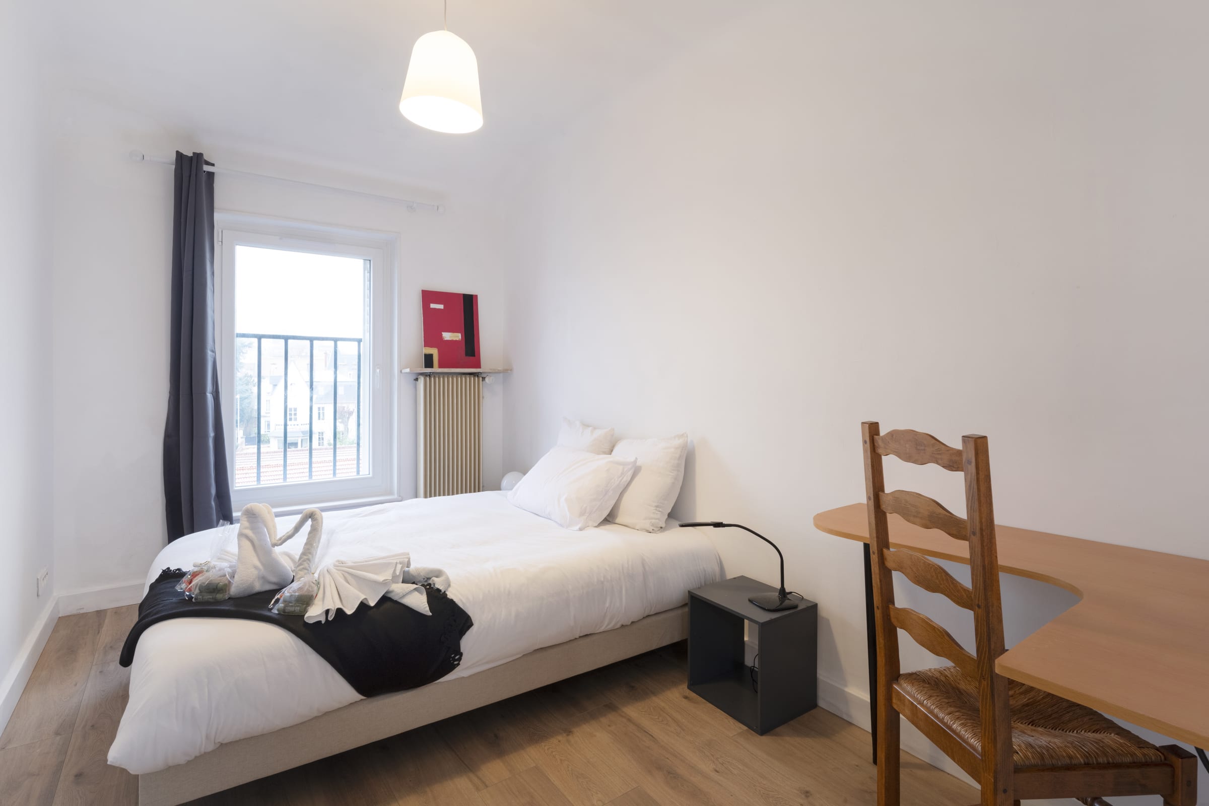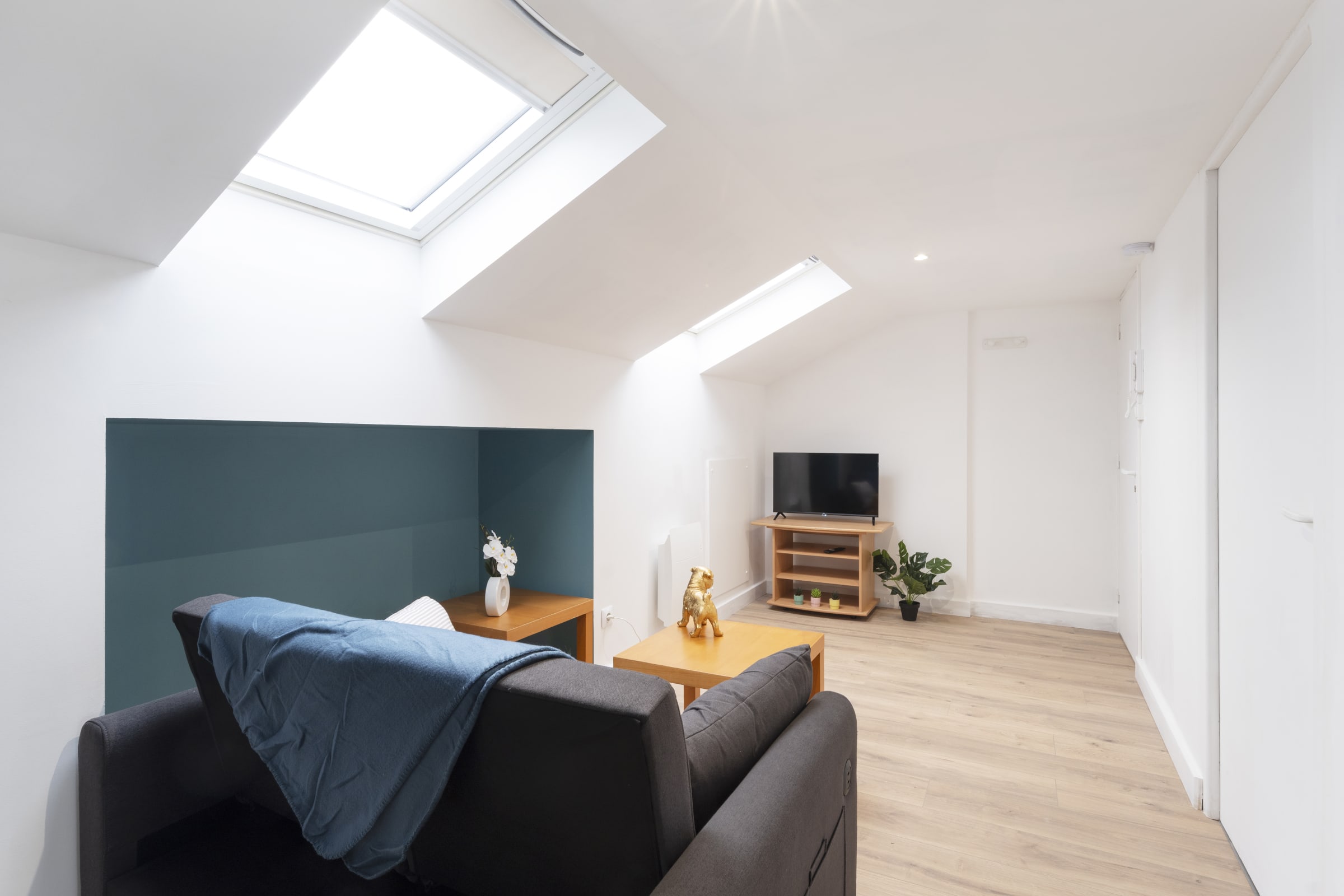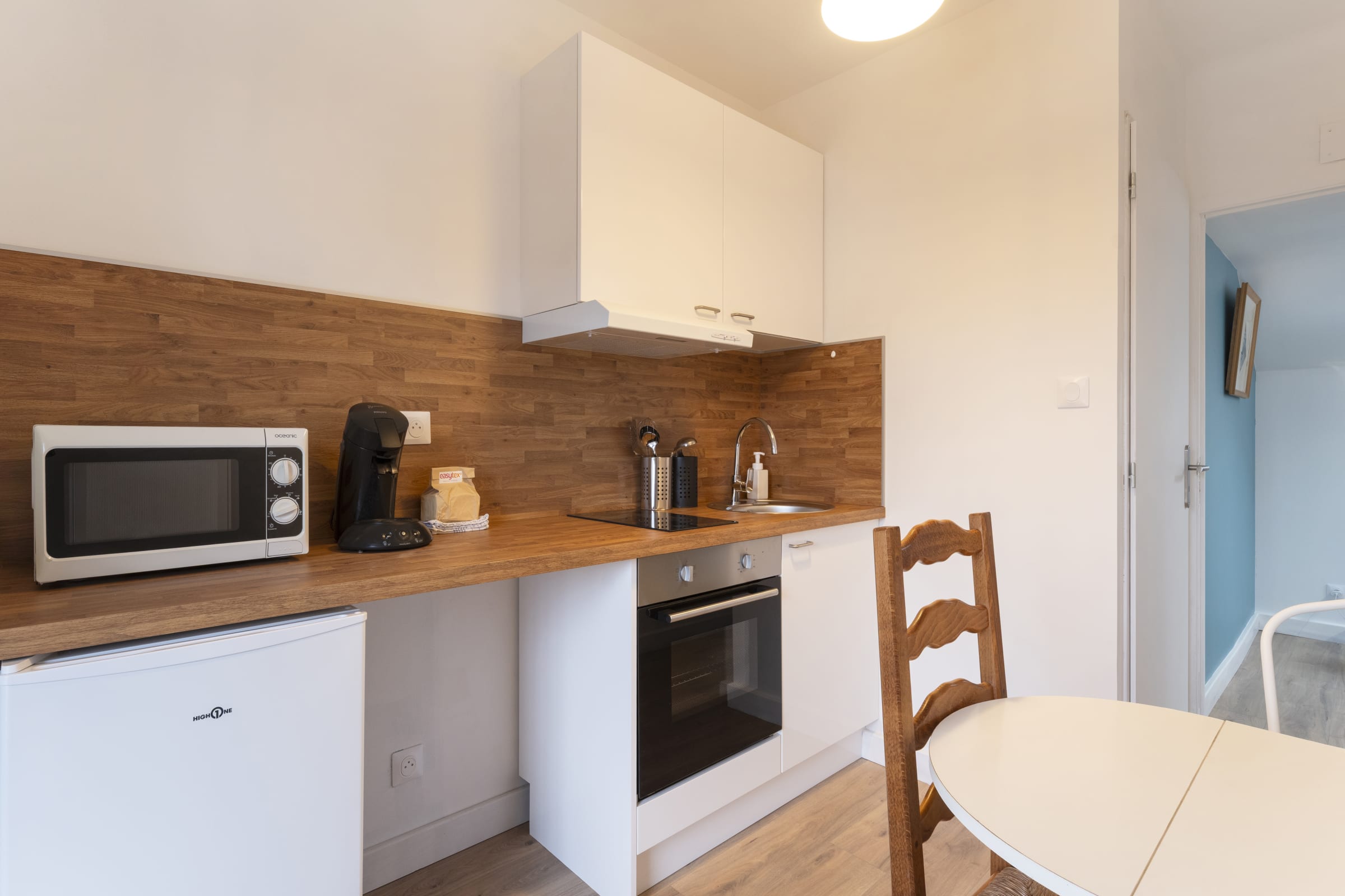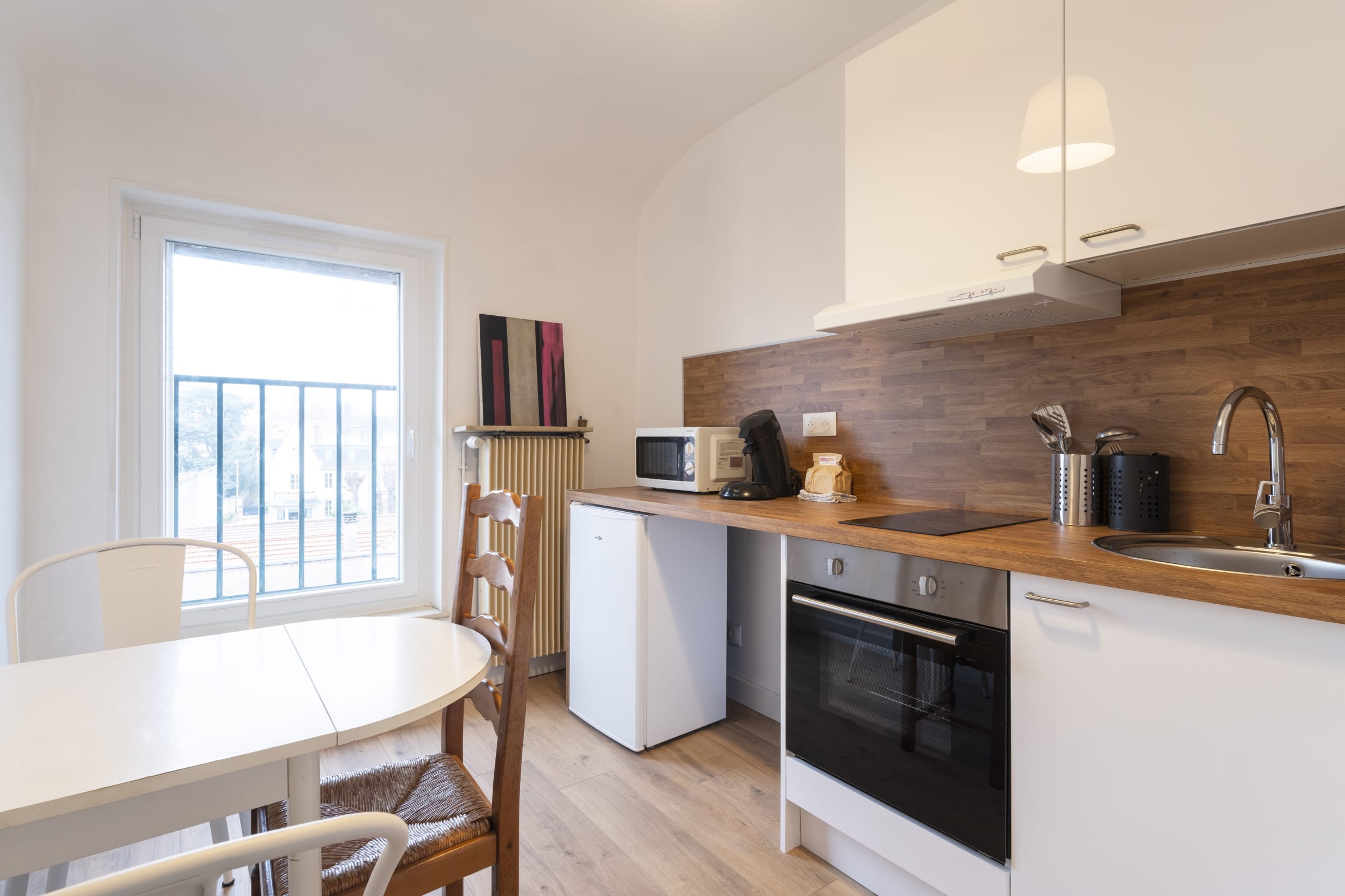 Fully renovated, this apartment has been designed to offer a warm and functional atmosphere. Located on the ground floor, it provides easy and convenient access as well as a lovely view of the garden. You will find a comfortable living area, a separate bedroom, and all the necessary amenities for a peaceful and relaxing stay. A true urban cocoon, perfect for unwinding after a day of work or sightseeing.