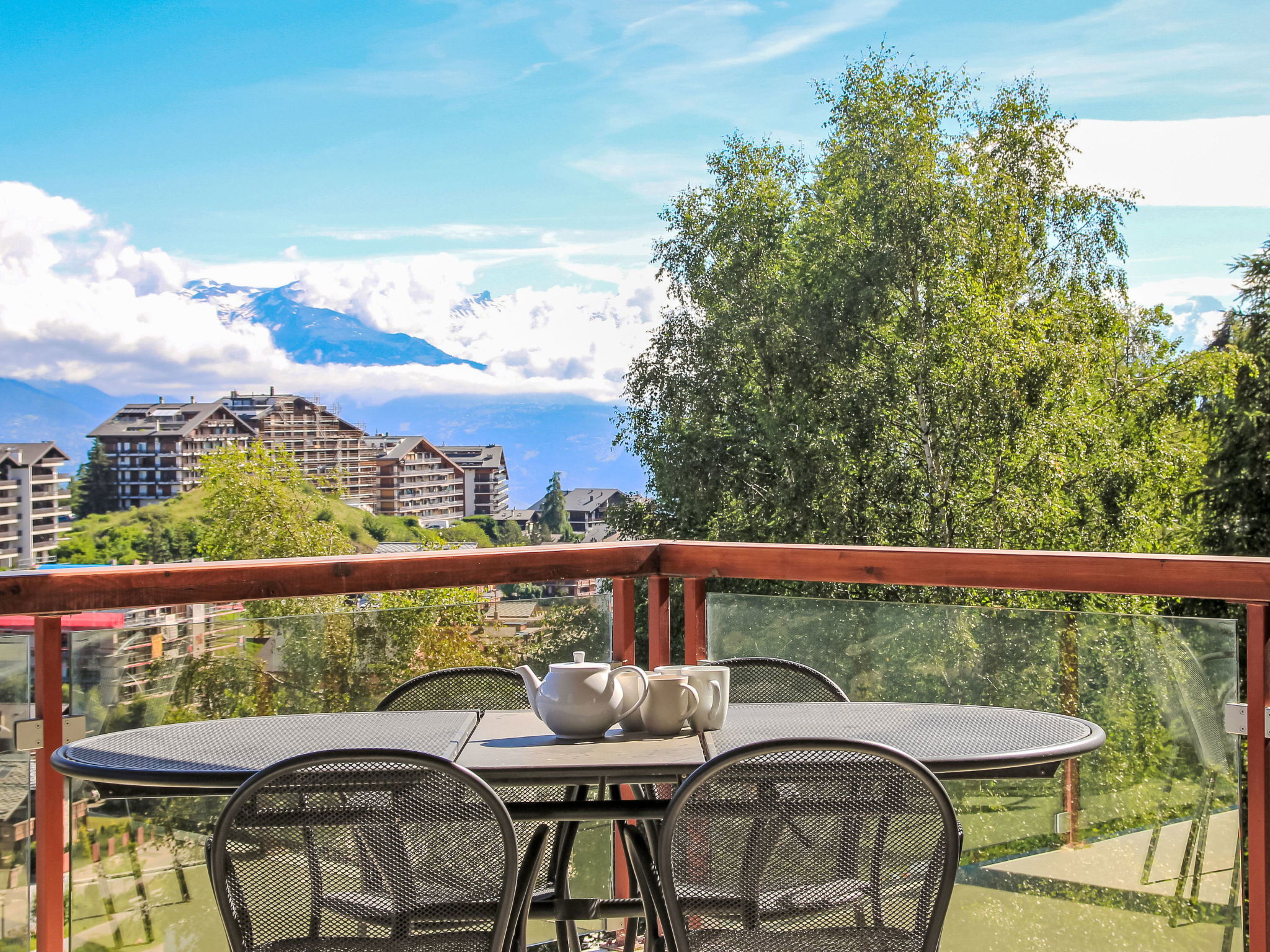 "Domaine des Reines A9", 4-room apartment 100 m2 on 4th floor. Comfortable and cosy furnishings: living/dining room with DVD. Exit to the balcony, north facing position and east facing position. 1 room with 1 french bed (140 cm, length 200 cm). Exit to the balcony, east facing position. 1 room with 2 beds (90 cm, length 200 cm). Exit to the balcony, south facing position. 1 room with 1 french bed (160 cm, length 200 cm). Open kitchen (oven, dishwasher, 4 ceramic glass hob hotplates, toaster, kettle, microwave, electric coffee machine, Capsules for coffee machine (Nespresso) extra, fondue Set (cheese)). Bath/WC, shower/WC. Balcony, north facing position and, east facing position. Balcony furniture. Beautiful view of the mountains. Facilities: Internet (WiFi, free). Parking space n A9. Please note: non-smokers only. Maximum 1 pet/ dog allowed.