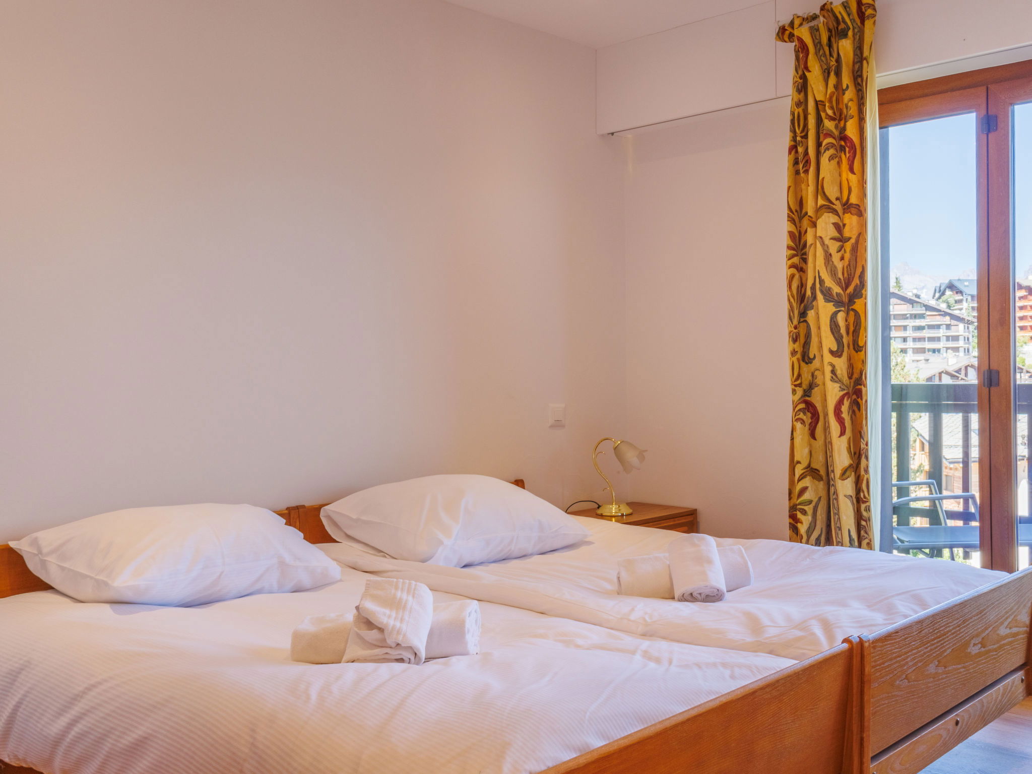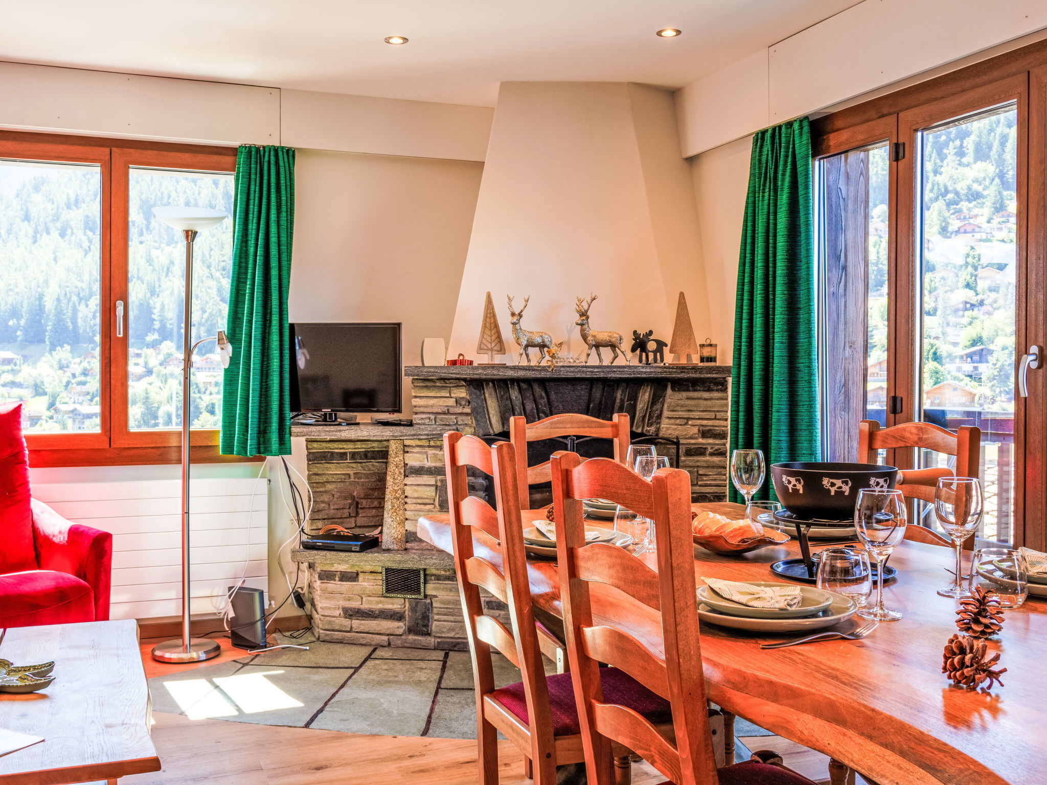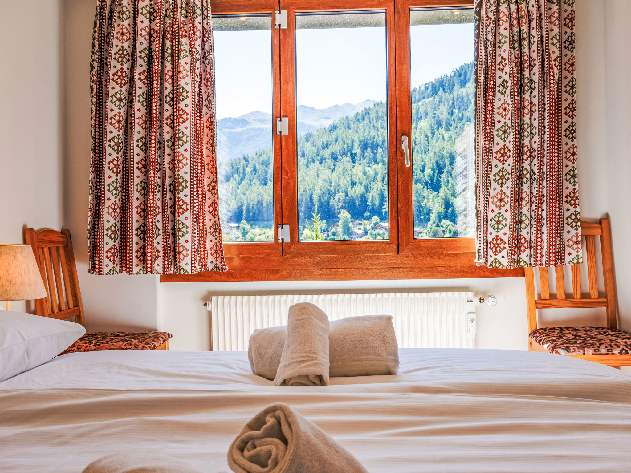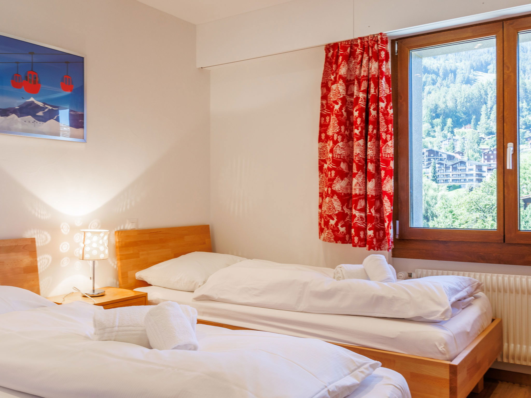 "Praplan 21-22", 6-room apartment 90 m2 on 4th floor. Bright, renovated in 2021, practical and beautiful furnishings: small entrance hall. Living/dining room with open-hearth fireplace and cable TV. Exit to the balcony, west facing position. 1 room with 1 double bed (2 x 80 cm, length 200 cm). 2 rooms, each room with 2 beds (90 cm, length 190 cm). Exit to the balcony, north facing position and west facing position. 2 children's rooms, each room with 2 beds (80 cm, length 190 cm). Large, open kitchen (oven, dishwasher, 4 induction hot plates, microwave, freezer, electric coffee machine, Capsules for coffee machine (nespresso) extra, raclette grill, fondue Set (cheese)). Bathroom, shower/WC, sep. WC. Large balcony, south facing position and west facing position balcony, north facing position and west facing position. Balcony furniture. Very beautiful view of the mountains and the resort. Facilities: children's high chair, hair dryer. Internet (WiFi, free). Parking space n 22, garage space n 21. Please note: non-smokers only. Maximum 1 pet/ dog allowed.