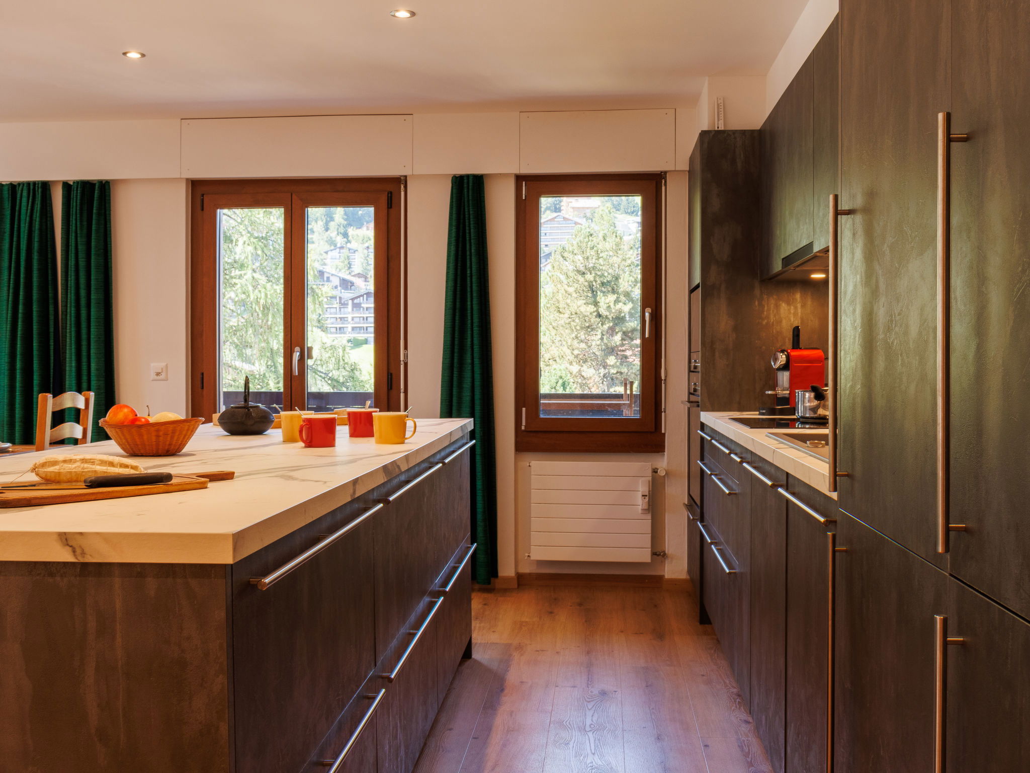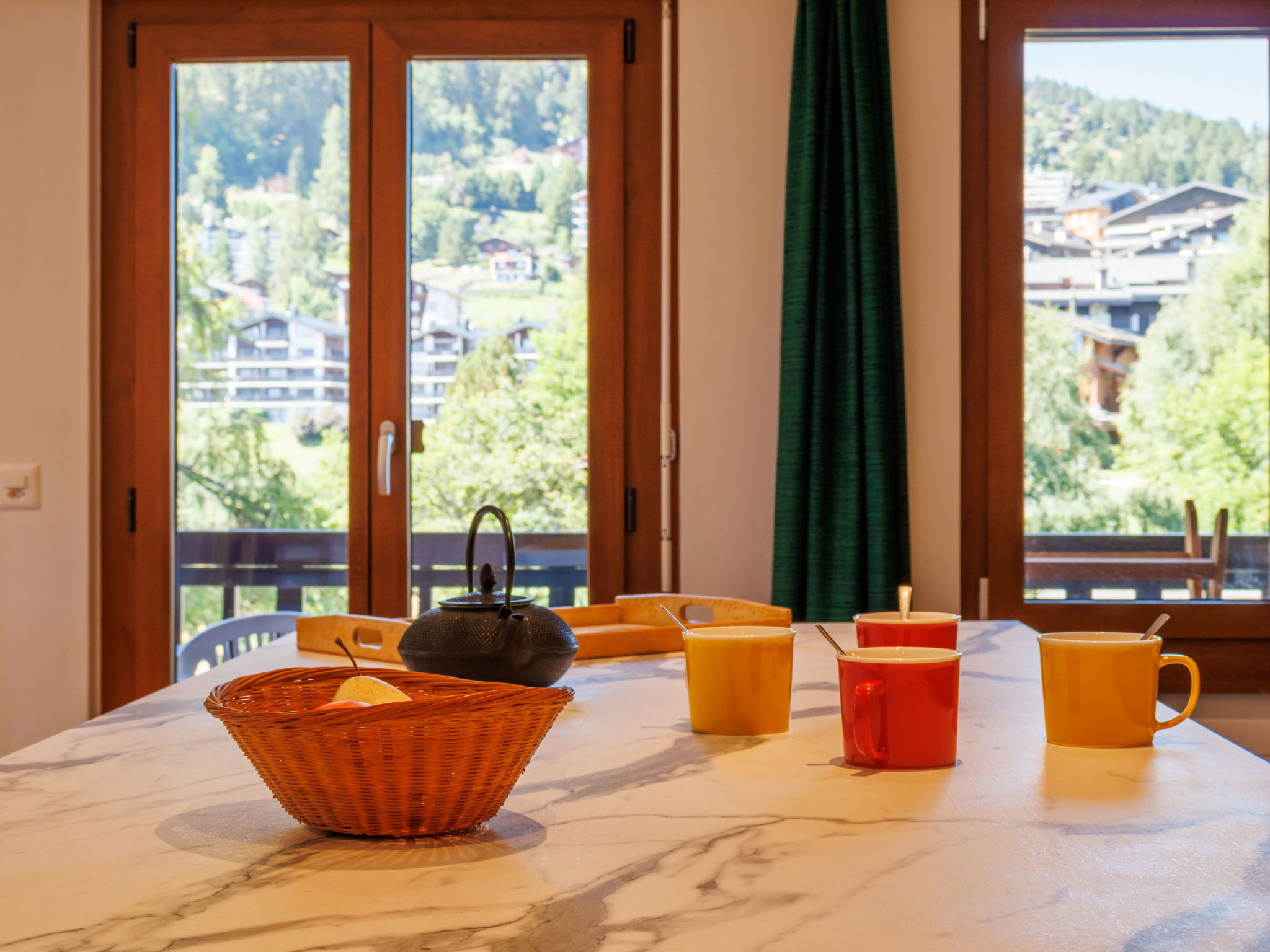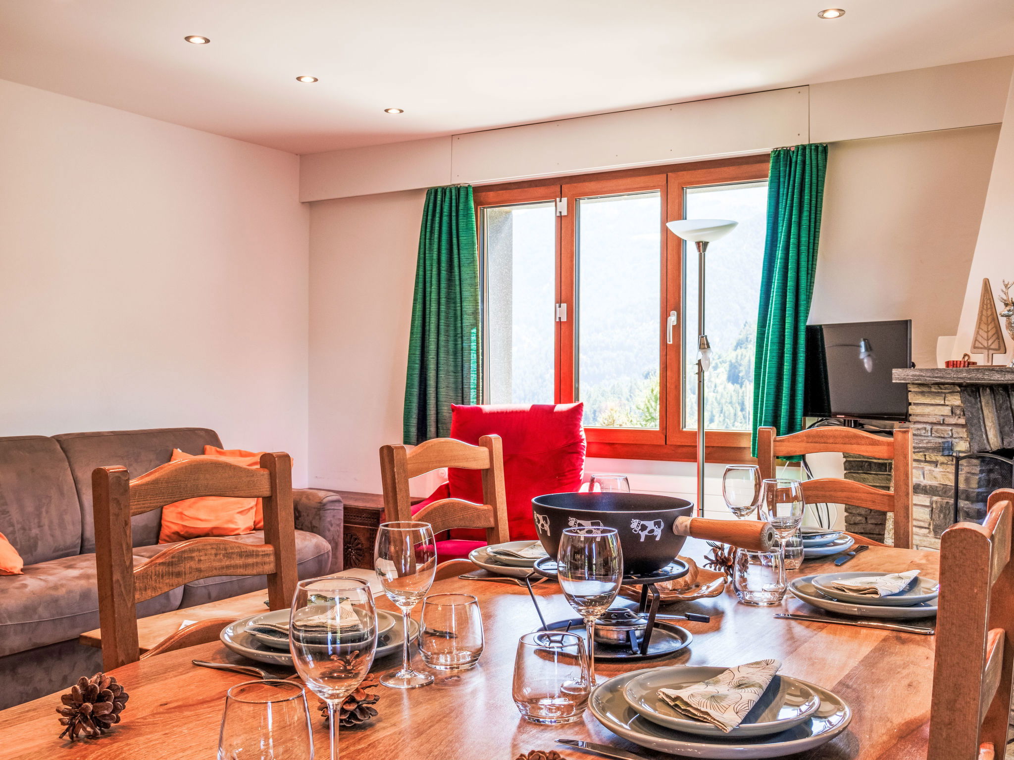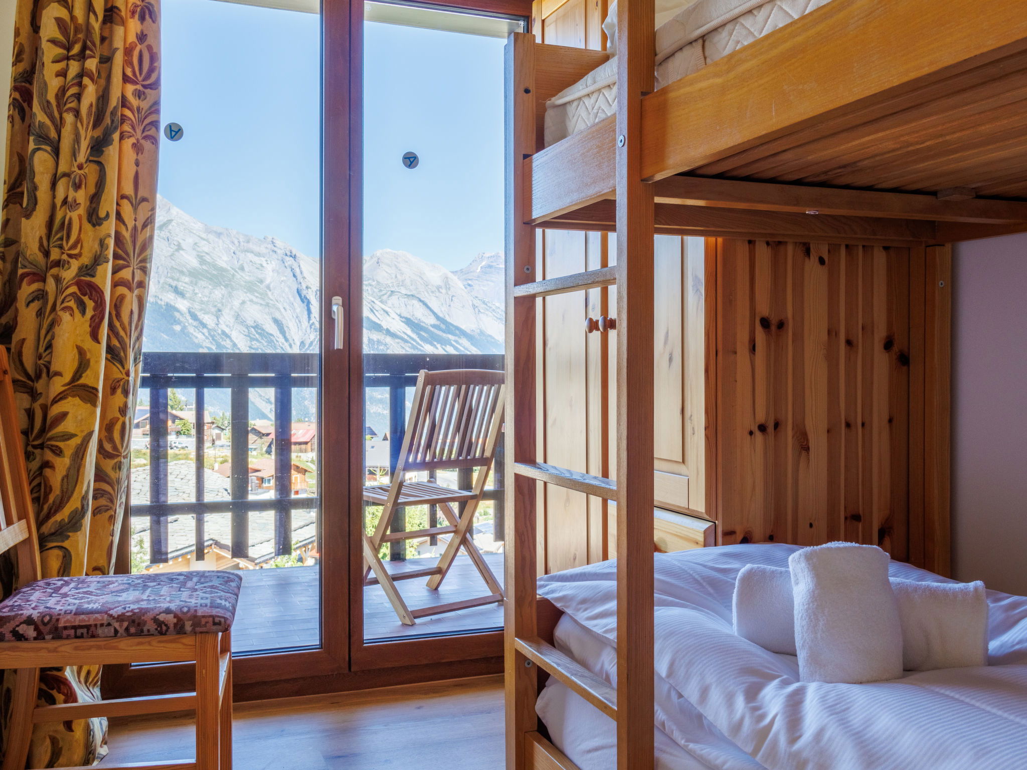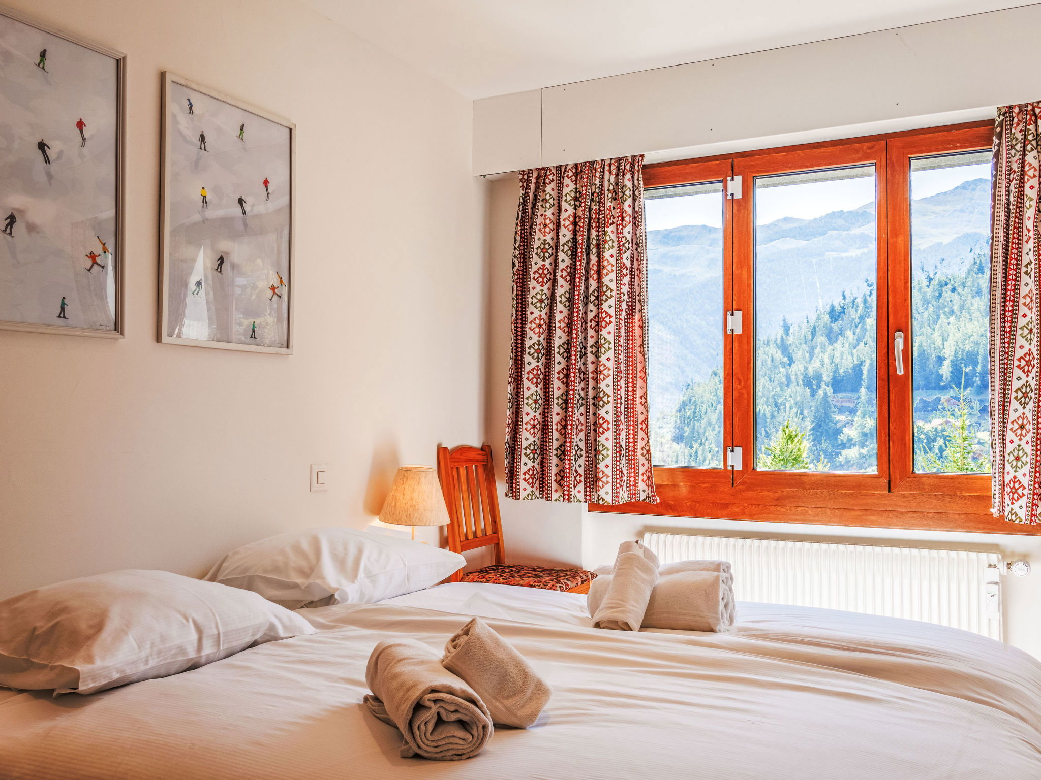 "Praplan 21-22", 6-room apartment 90 m2 on 4th floor. Bright, renovated in 2021, practical and beautiful furnishings: small entrance hall. Living/dining room with open-hearth fireplace and cable TV. Exit to the balcony, west facing position. 1 room with 1 double bed (2 x 80 cm, length 200 cm). 2 rooms, each room with 2 beds (90 cm, length 190 cm). Exit to the balcony, north facing position and west facing position. 2 children's rooms, each room with 2 beds (80 cm, length 190 cm). Large, open kitchen (oven, dishwasher, 4 induction hot plates, microwave, freezer, electric coffee machine, Capsules for coffee machine (nespresso) extra, raclette grill, fondue Set (cheese)). Bathroom, shower/WC, sep. WC. Large balcony, south facing position and west facing position balcony, north facing position and west facing position. Balcony furniture. Very beautiful view of the mountains and the resort. Facilities: children's high chair, hair dryer. Internet (WiFi, free). Parking space n 22, garage space n 21. Please note: non-smokers only. Maximum 1 pet/ dog allowed.