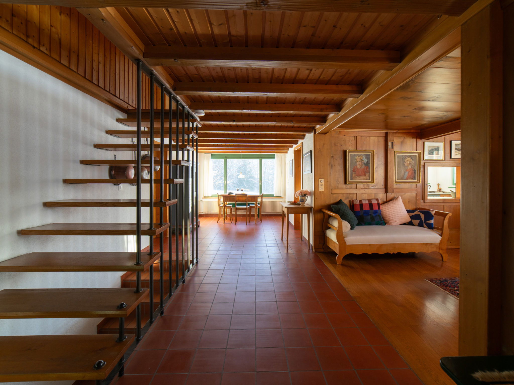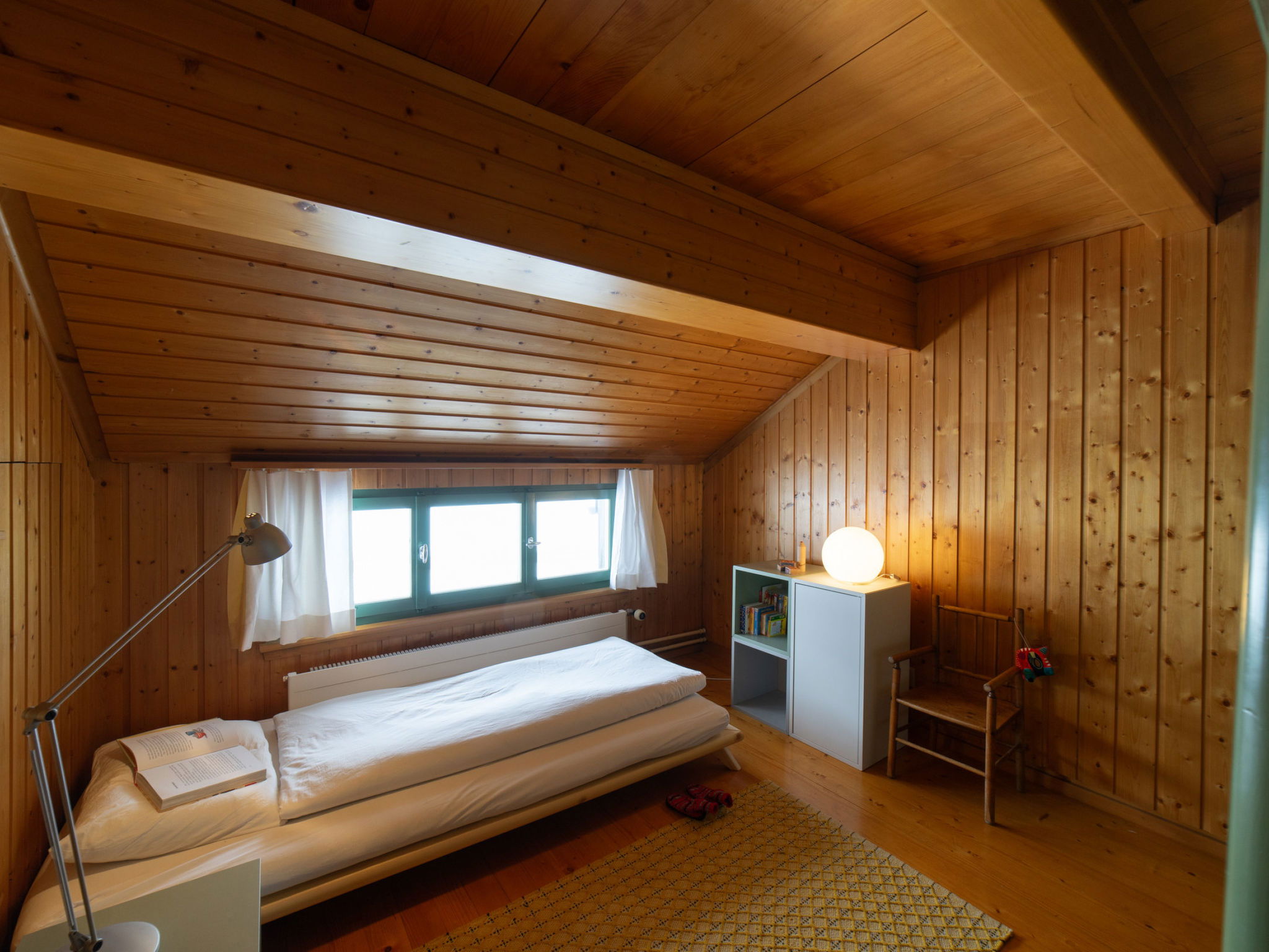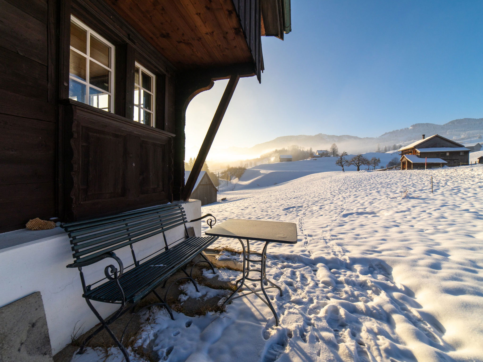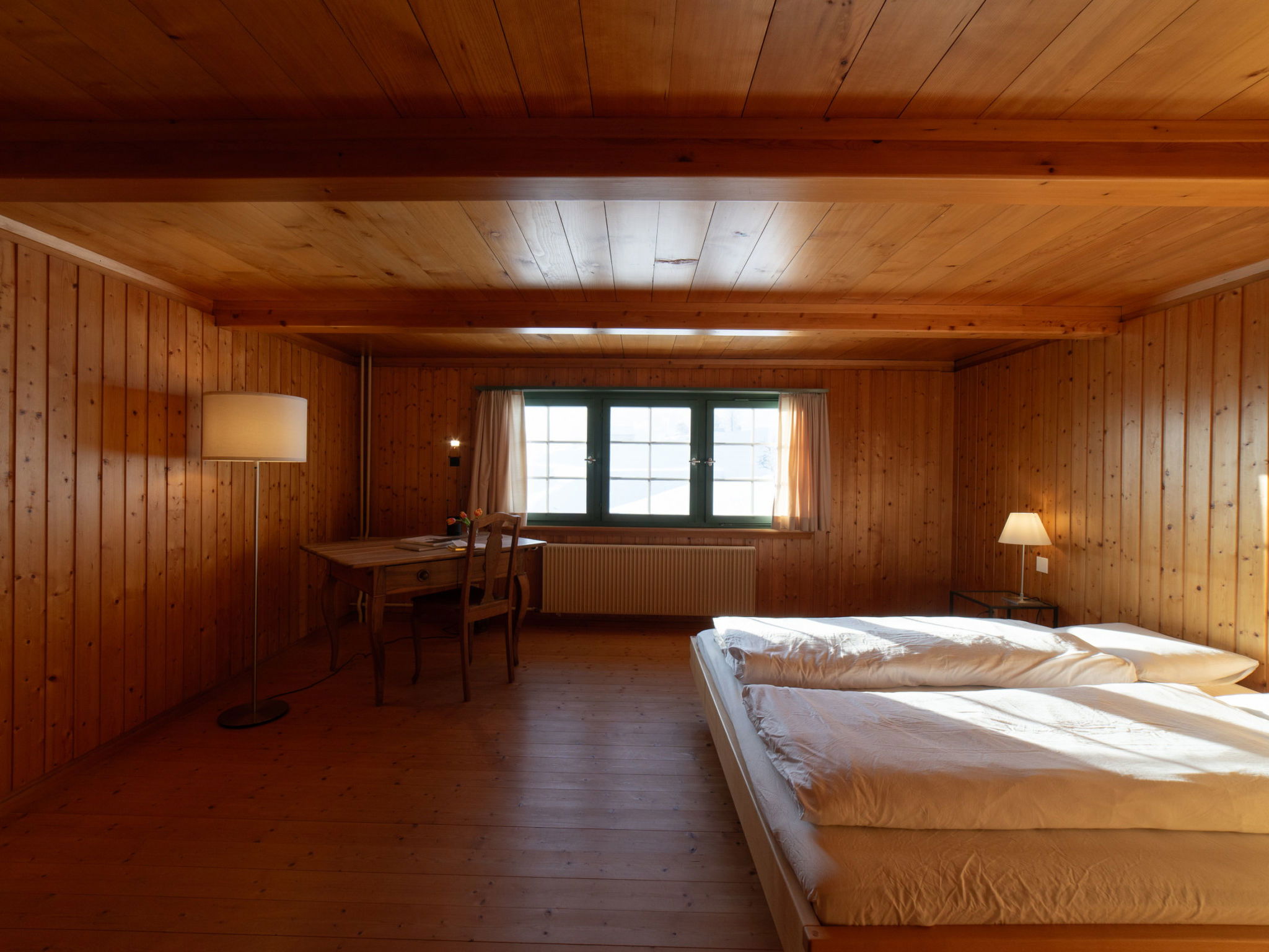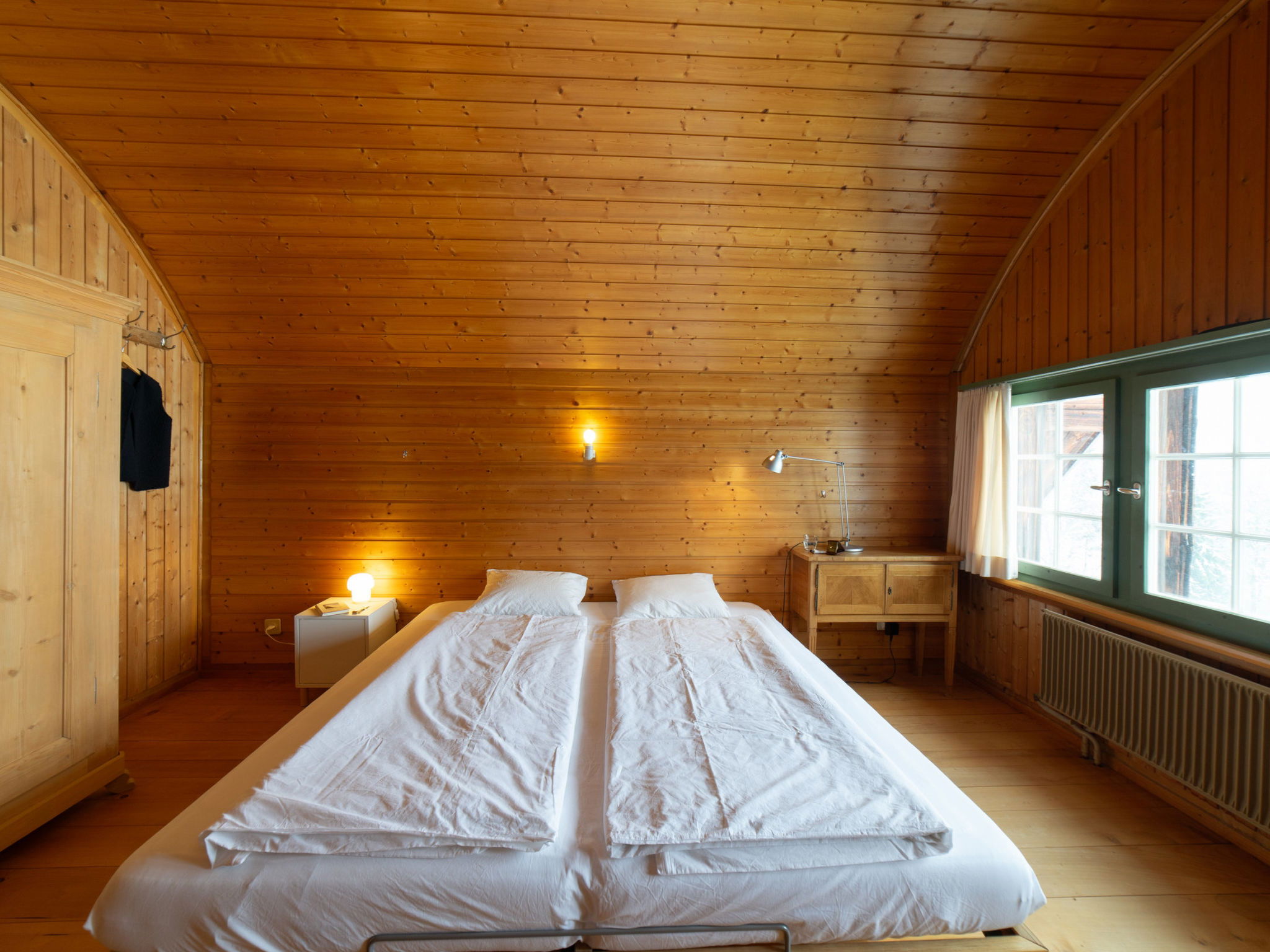 "Chammern", 4-room apartment 230 m2. Object suitable for 7 adults. 1 room with 1 double bed, open-hearth fireplace, TV and DVD. 1 room with 1 bed. 1 room with 1 french bed. 1 room with 1 double bed. Kitchen (oven, dishwasher, 4 ceramic glass hob hotplates, toaster, kettle, freezer, electric coffee machine, raclette grill). Bath/WC, sep. WC. Terrace. Barbecue. View of the mountains, the garden and the river. Facilities: washing machine, hair dryer. Internet (WiFi, free). Parking (2 cars). Please note: non-smokers only. 1 pet/ dog allowed. DescriptionThe spacious 6-room holiday house is located above Krummenau amidst meadows with fantastic views of the Churen. In both winter and summer, the nearby Wolzenalp ski area invites you to various activities such as hiking, sledding, or snowshoeing. The location serves as an ideal starting point for various activities. The Thurweg trail is right outside the door and there is plenty of space around the house for relaxation and play. Various play equipment is available and a ping-pong table can also be set up. The former farmhouse from the 18th century was renovated in the 1960s. An open entrance area with two dining areas and a kitchen provides plenty of space for cooking, dining and playing. On the upper and attic floors, there are four bedrooms and a large living room with fireplace, television and library. The house is perfect for adventurous groups and families. Only small children need to be well supervised due to the open staircase. Pets are welcome.Mandatory or included services:Baby bed : IncludedBaby high chair : IncludedBed linen : CHF 12.00 /personFinal Cleaning : CHF 210.00 /bookingHeating : IncludedInternet Access : IncludedOpen-air parking : IncludedStarter Package : CHF 25.00 /bookingTowels : CHF 8.00 /personOptional services:Pet : CHF 10.00 / dayCheck-in schedule:1.1-31.12 from 00:00 to 23:59, Monday, Tuesday, Wednesday, Thursday, Friday, Saturday, SundayCheck-out schedule: 10:00