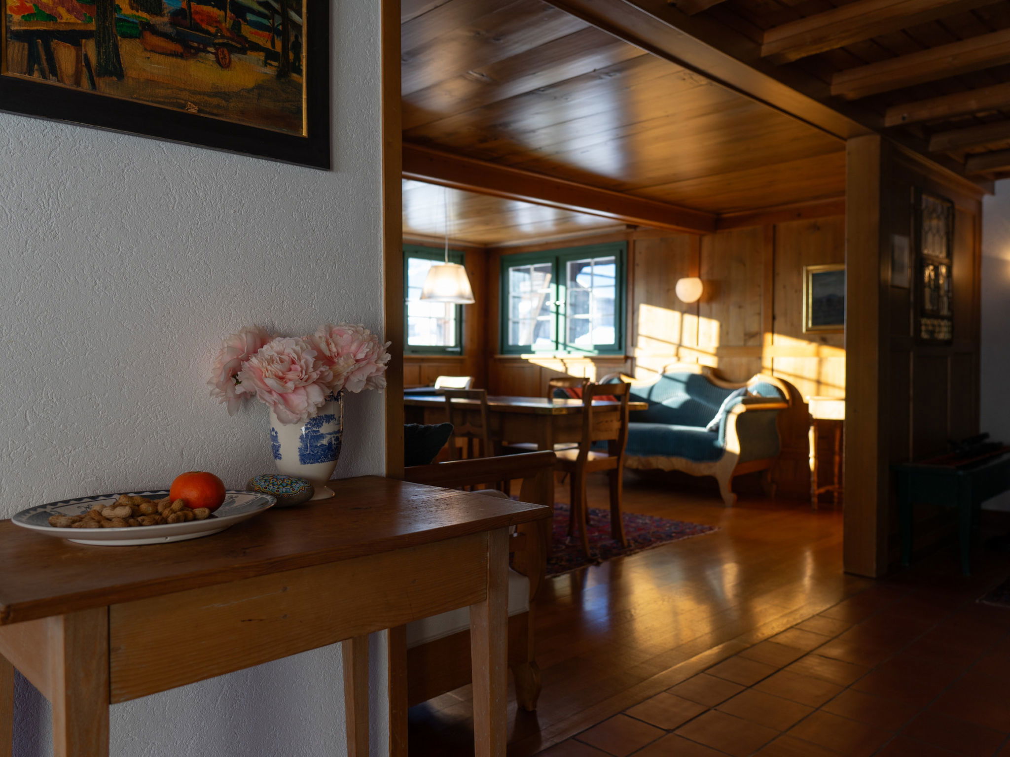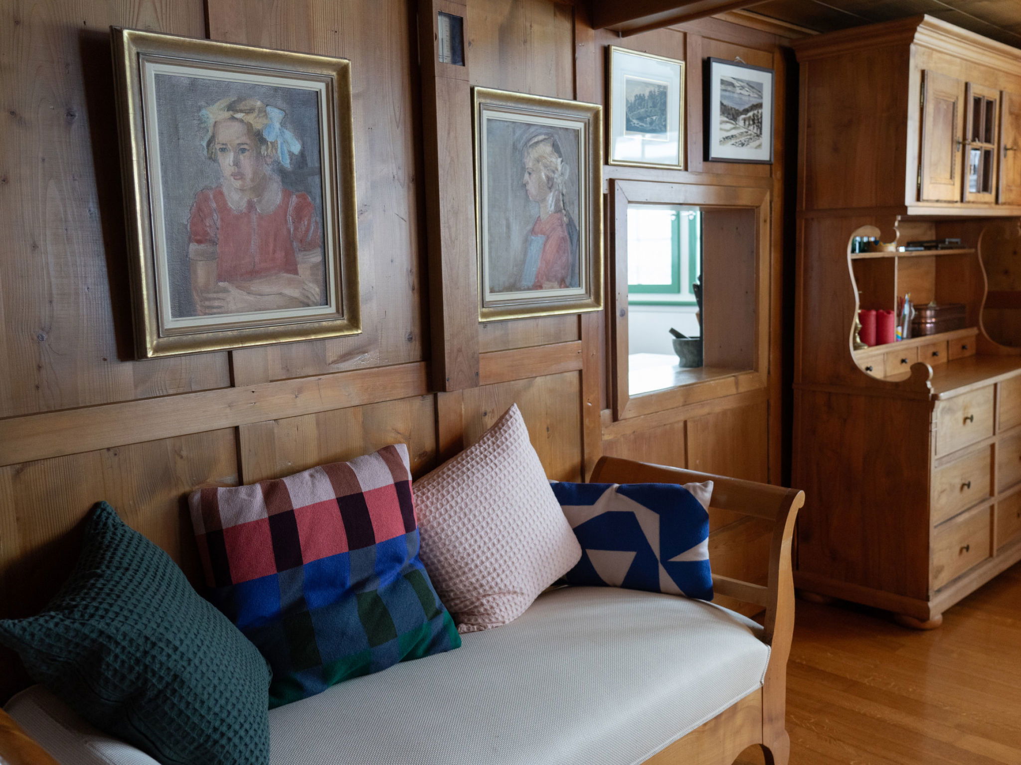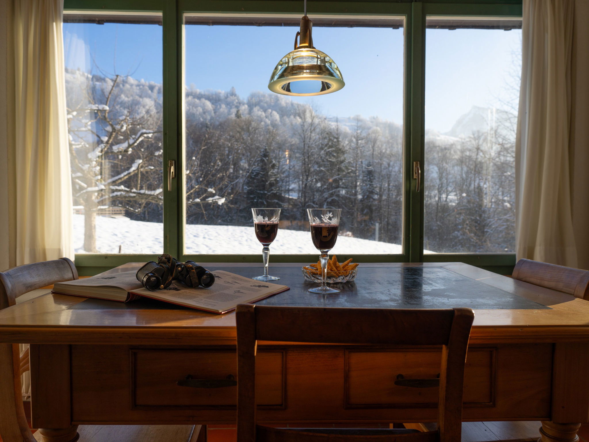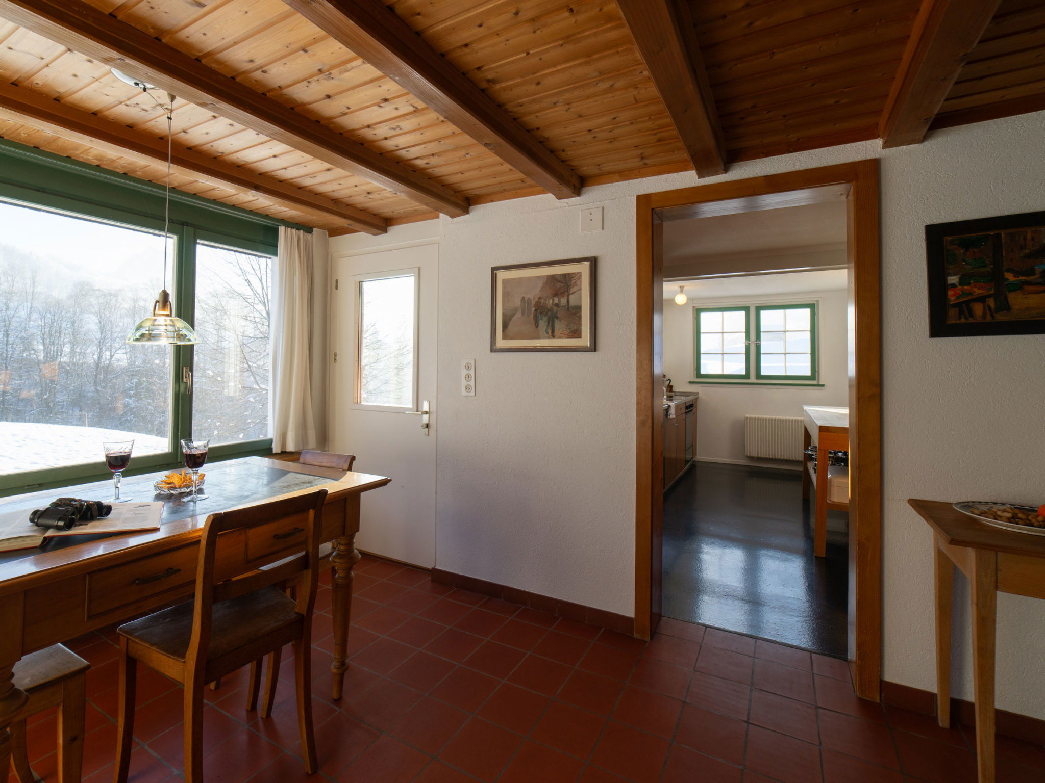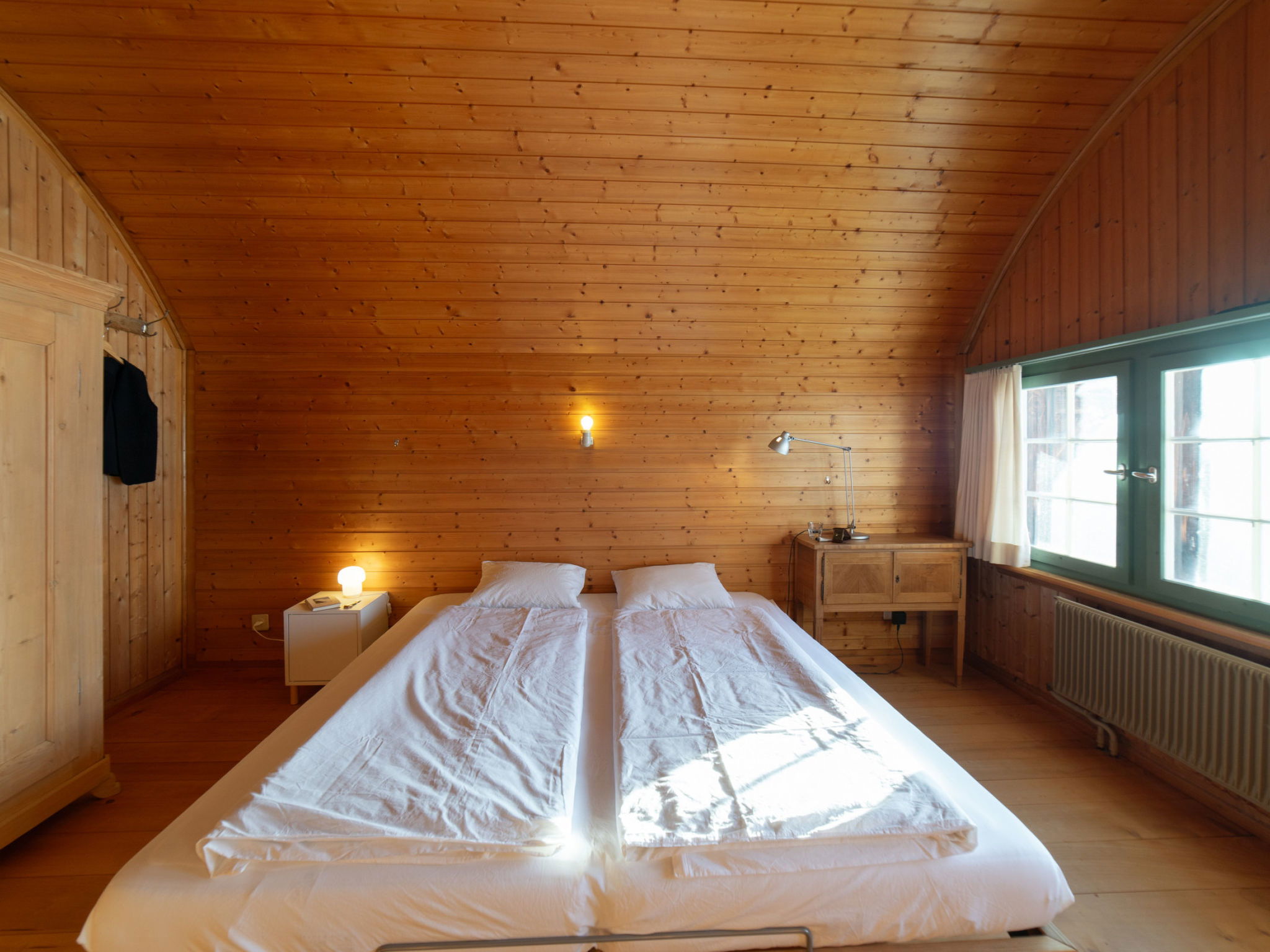 "Chammern", 4-room apartment 230 m2. Object suitable for 7 adults. 1 room with 1 double bed, open-hearth fireplace, TV and DVD. 1 room with 1 bed. 1 room with 1 french bed. 1 room with 1 double bed. Kitchen (oven, dishwasher, 4 ceramic glass hob hotplates, toaster, kettle, freezer, electric coffee machine, raclette grill). Bath/WC, sep. WC. Terrace. Barbecue. View of the mountains, the garden and the river. Facilities: washing machine, hair dryer. Internet (WiFi, free). Parking (2 cars). Please note: non-smokers only. 1 pet/ dog allowed. DescriptionThe spacious 6-room holiday house is located above Krummenau amidst meadows with fantastic views of the Churen. In both winter and summer, the nearby Wolzenalp ski area invites you to various activities such as hiking, sledding, or snowshoeing. The location serves as an ideal starting point for various activities. The Thurweg trail is right outside the door and there is plenty of space around the house for relaxation and play. Various play equipment is available and a ping-pong table can also be set up. The former farmhouse from the 18th century was renovated in the 1960s. An open entrance area with two dining areas and a kitchen provides plenty of space for cooking, dining and playing. On the upper and attic floors, there are four bedrooms and a large living room with fireplace, television and library. The house is perfect for adventurous groups and families. Only small children need to be well supervised due to the open staircase. Pets are welcome.Mandatory or included services:Baby bed : IncludedBaby high chair : IncludedBed linen : CHF 12.00 /personFinal Cleaning : CHF 210.00 /bookingHeating : IncludedInternet Access : IncludedOpen-air parking : IncludedStarter Package : CHF 25.00 /bookingTowels : CHF 8.00 /personOptional services:Pet : CHF 10.00 / dayCheck-in schedule:1.1-31.12 from 00:00 to 23:59, Monday, Tuesday, Wednesday, Thursday, Friday, Saturday, SundayCheck-out schedule: 10:00