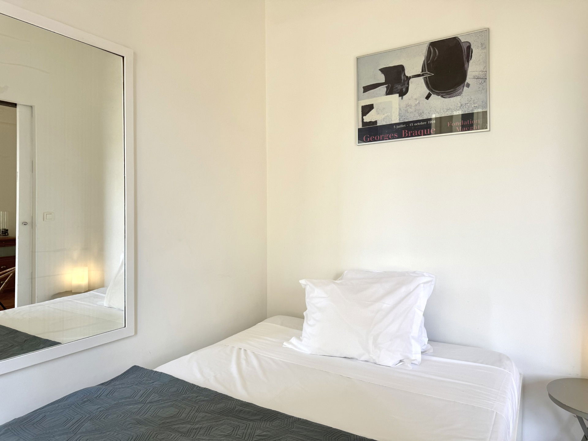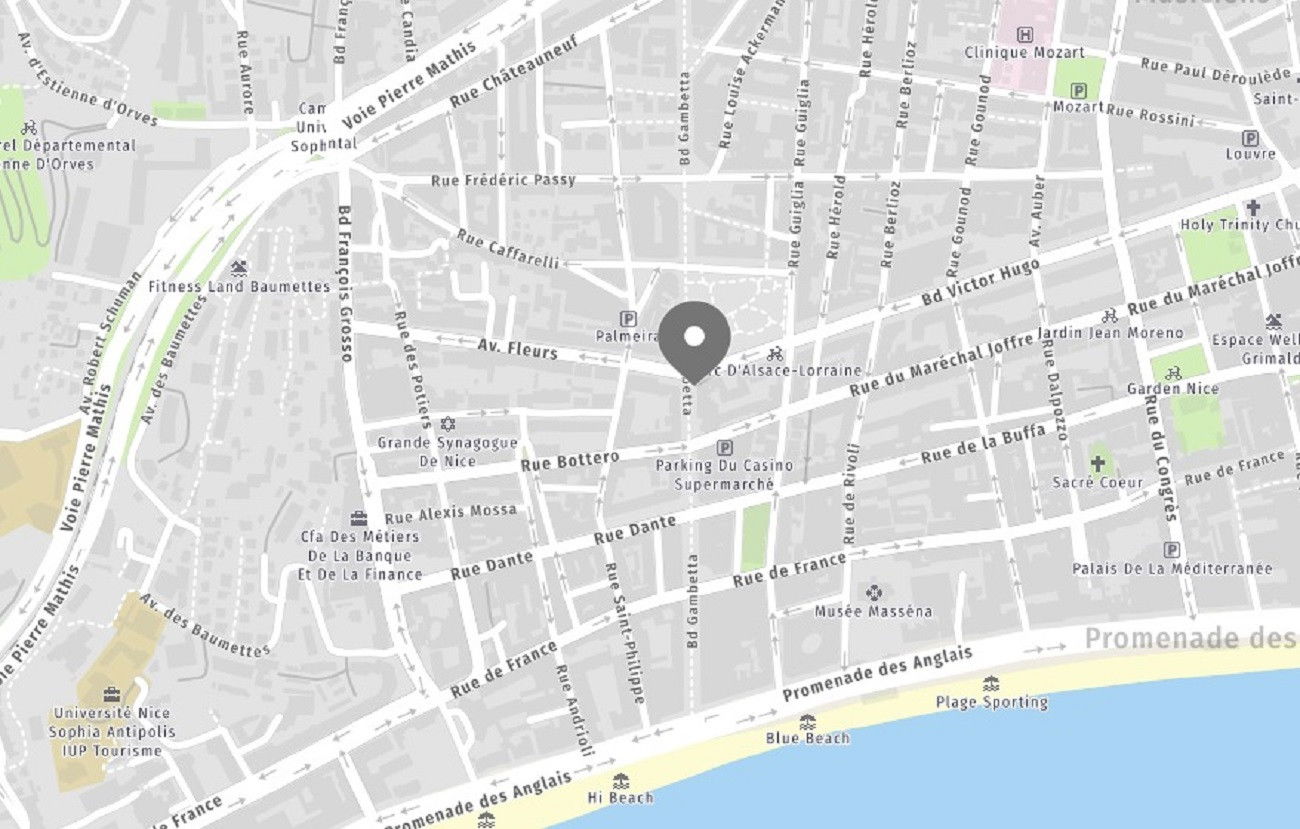 The apartment is located in the Gambetta district, a central area of Nice appreciated for its proximity to the sea, its numerous shops, restaurants, and transportation. You will be just a few minutes away from the Promenade des Anglais, beaches, and shopping areas of the city centre. The neighbourhood is lively without being noisy, and the apartment, situated back from the street, benefits from a pleasant calm thanks to its courtyard view.