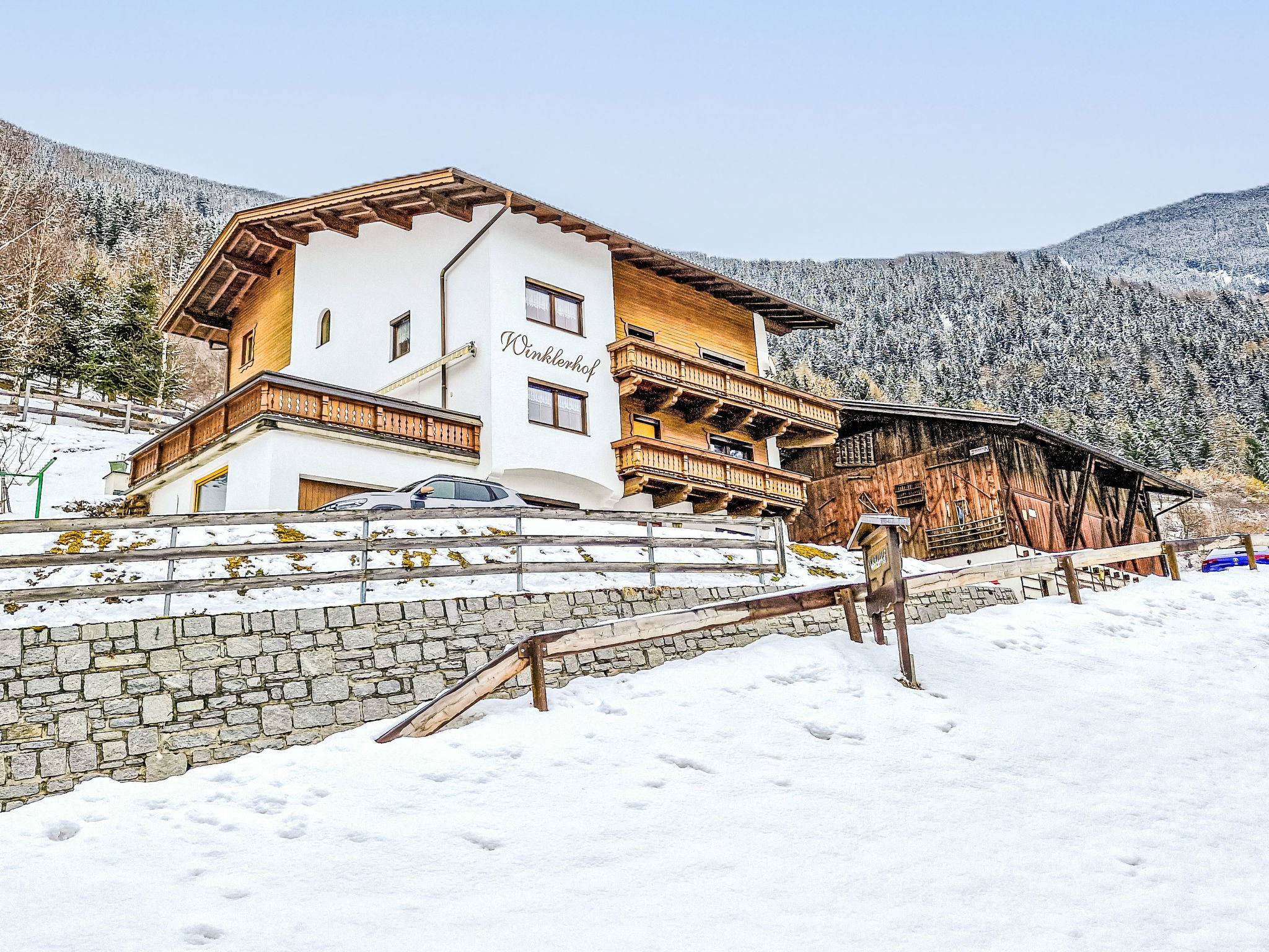 Large apartment block "Winklerhof", detached, surrounded by fields. Above Ötz, in a sunny position on a slope, 4.5 km from the lake, 1.5 km from the skiing area. For shared use: natural state property. In the house: central heating system. Parking (for 3 cars). Supermarket 1.2 km, restaurant 1.5 km, bakery 1.5 km, café 1.5 km, bus stop "Schrofen" 100 m, railway station "Ötztal Bahnhof" 8 km, outdoor swimming pool 1.5 km. Walking paths from the house 300 m, skisport facilities 1.5 km, ski rental 1.5 km, ski bus stop 100 m, ski school 1.5 km. Nearby attractions: Outdoor Park Area 47 8 km. Well-known ski regions can easily be reached: Ötz-Hochötz 1.5 km, Kühtai 15 km, Sölden 32 km. Well-known lakes can easily be reached: Piburger See 4.5 km. Please note: ski bus (free of charge). Free ski bus service to the ski region Kühtai. Owner lives in separate semi-detached house.