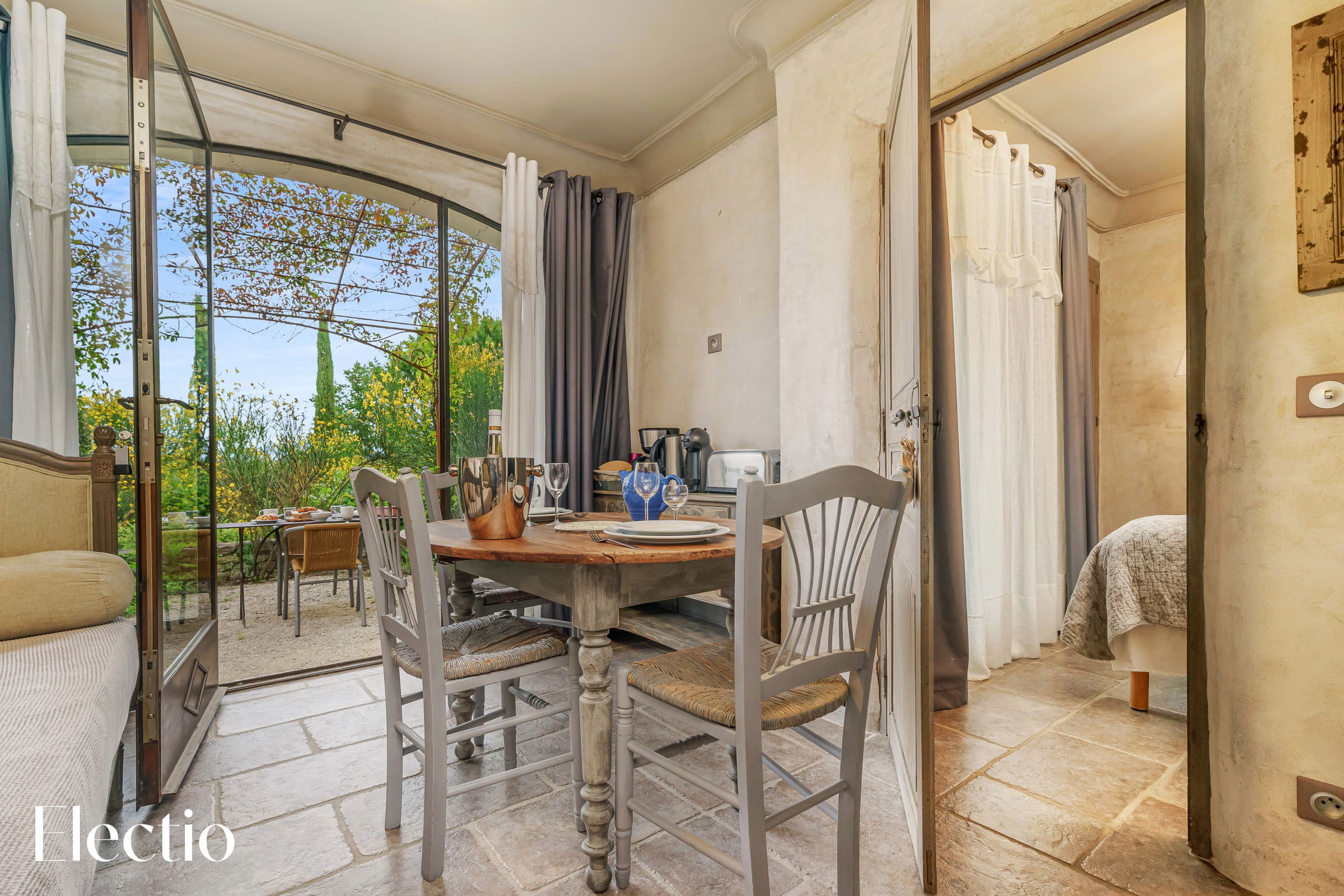The air-conditioned accommodations, each with a private terrace, beautifully combine the timeless charm of Provencal houses with modern comfort. Noble materials, such as traditional lime, patinated wood beams, and Provencal boutis, bring a warm and welcoming atmosphere to each accommodation, perfect for a memorable stay. Each accommodation is a true haven of peace, where elegance and lifestyle come together for a unique experience in Provence.
