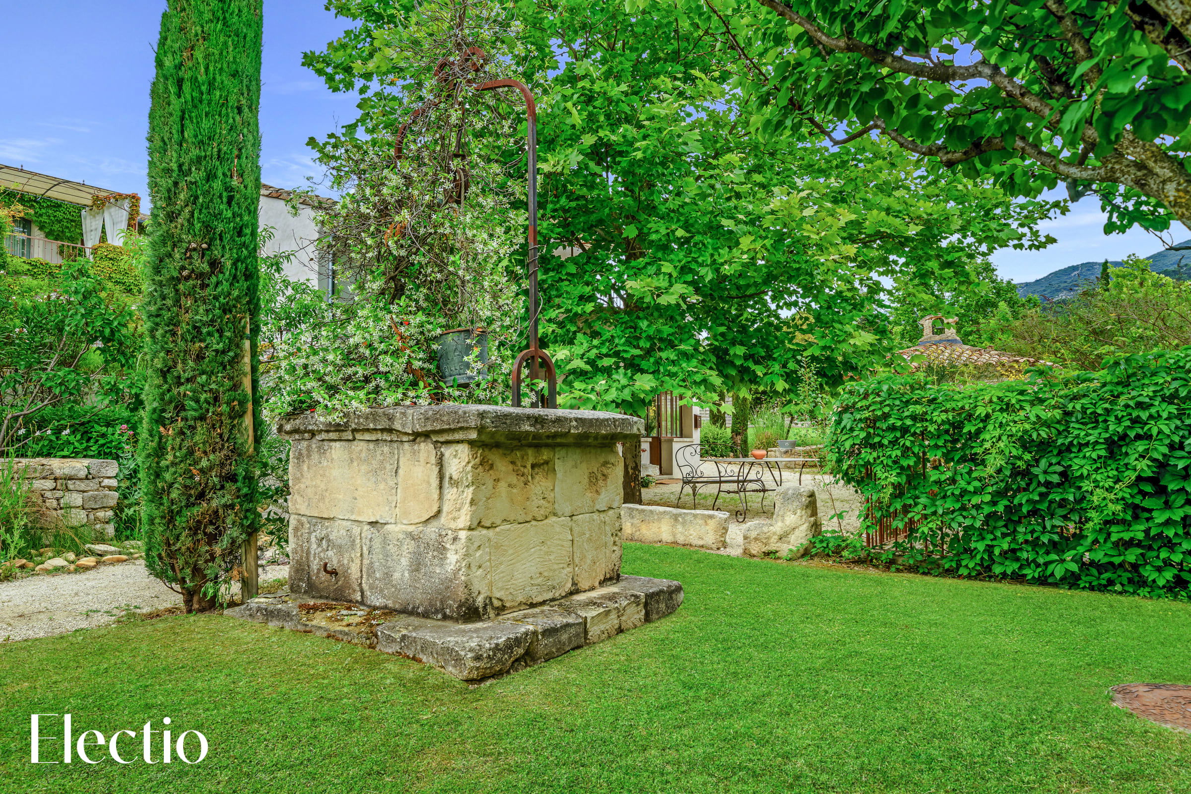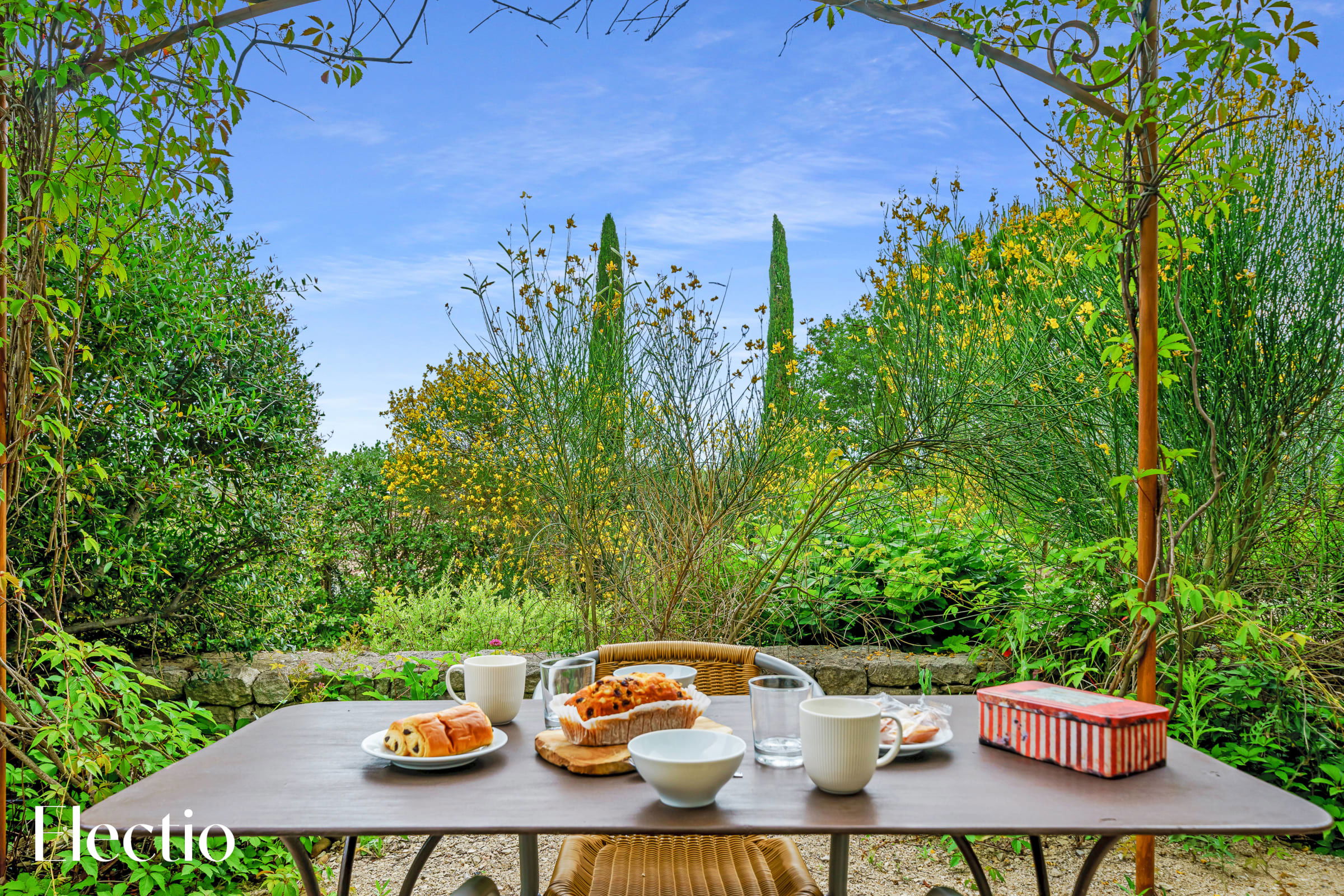 🌳 The Mediterranean garden, enhanced by fragrant lavender and century-old olive trees, offers breathtaking views of the Luberon hills and, on clear days, up to the majestic Mont Ventoux. This green setting, lulled by the sound of cicadas, is an invitation to relaxation and une conciergerie. The heated seasonal pool, nestled in this enchanting setting, is surrounded by sun loungers and relaxation areas to fully enjoy the mild Provencal climate.