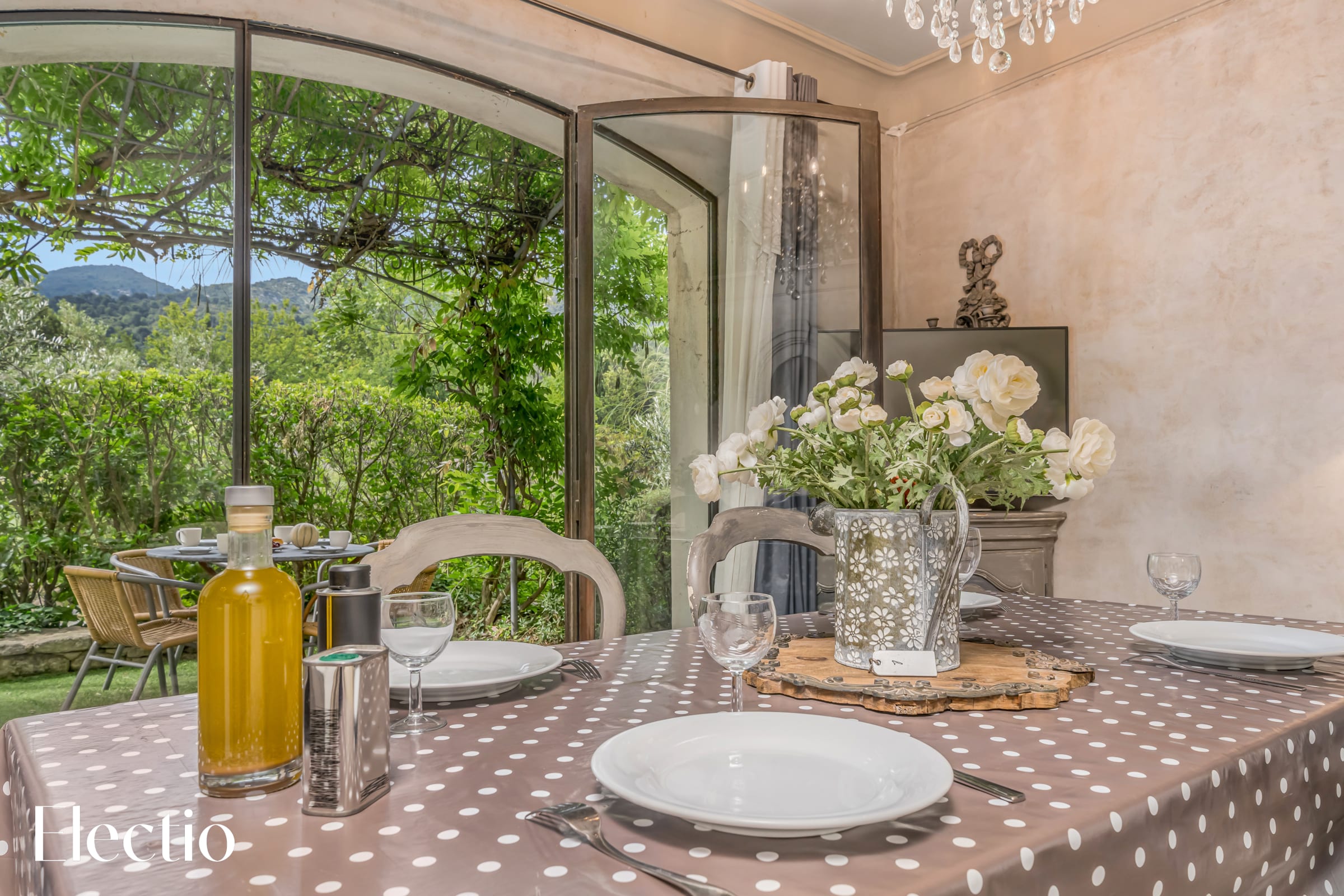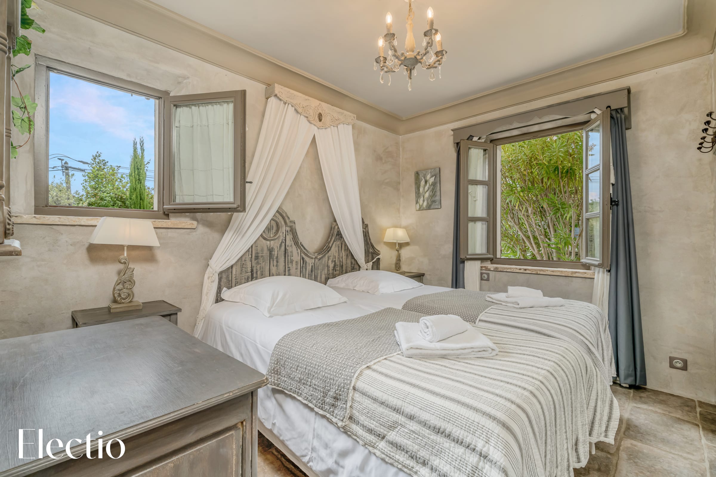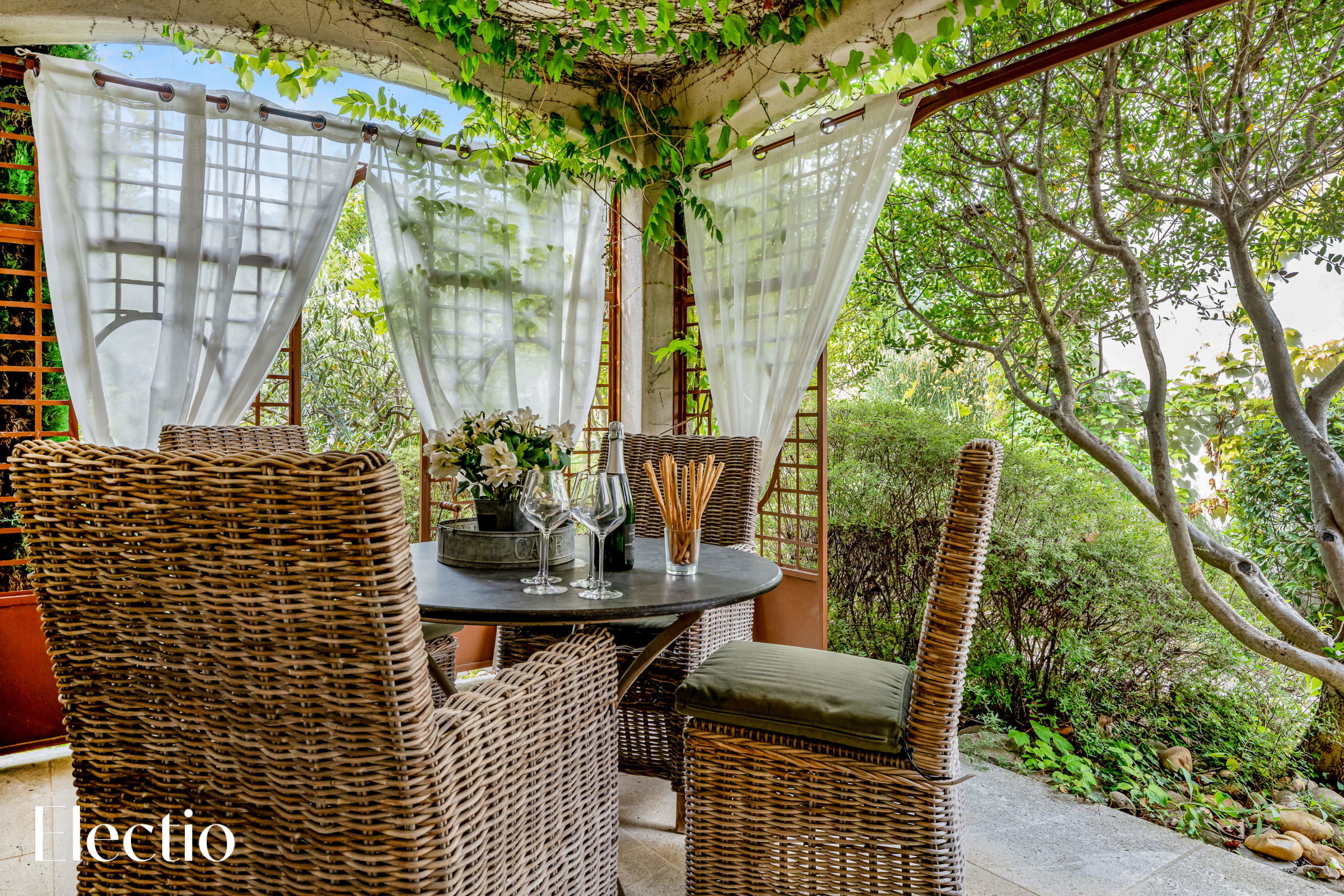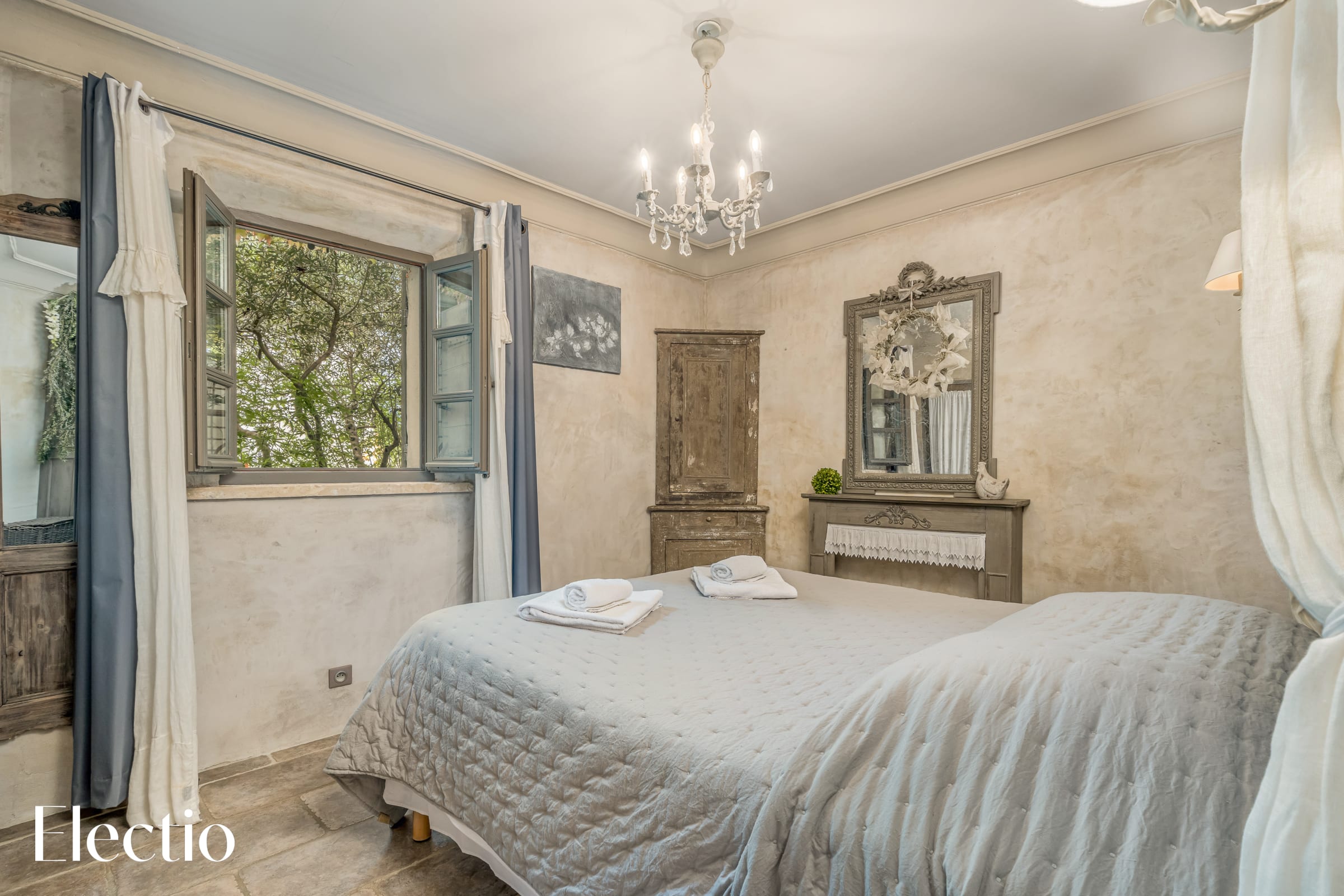 The residence's outdoor spaces are beautifully landscaped to offer you an authentic Provençal experience. You’ll find shaded areas with pergolas, white curtains, plane trees, and stone benches for relaxing. A charcoal barbecue is available for your use, with charcoal easily found in a nearby supermarket. The typical Provençal vegetation – century-old olive trees, broom, oleanders, and lavender – creates an enchanting atmosphere. A fountain and a bell tower add even more charm to the setting.