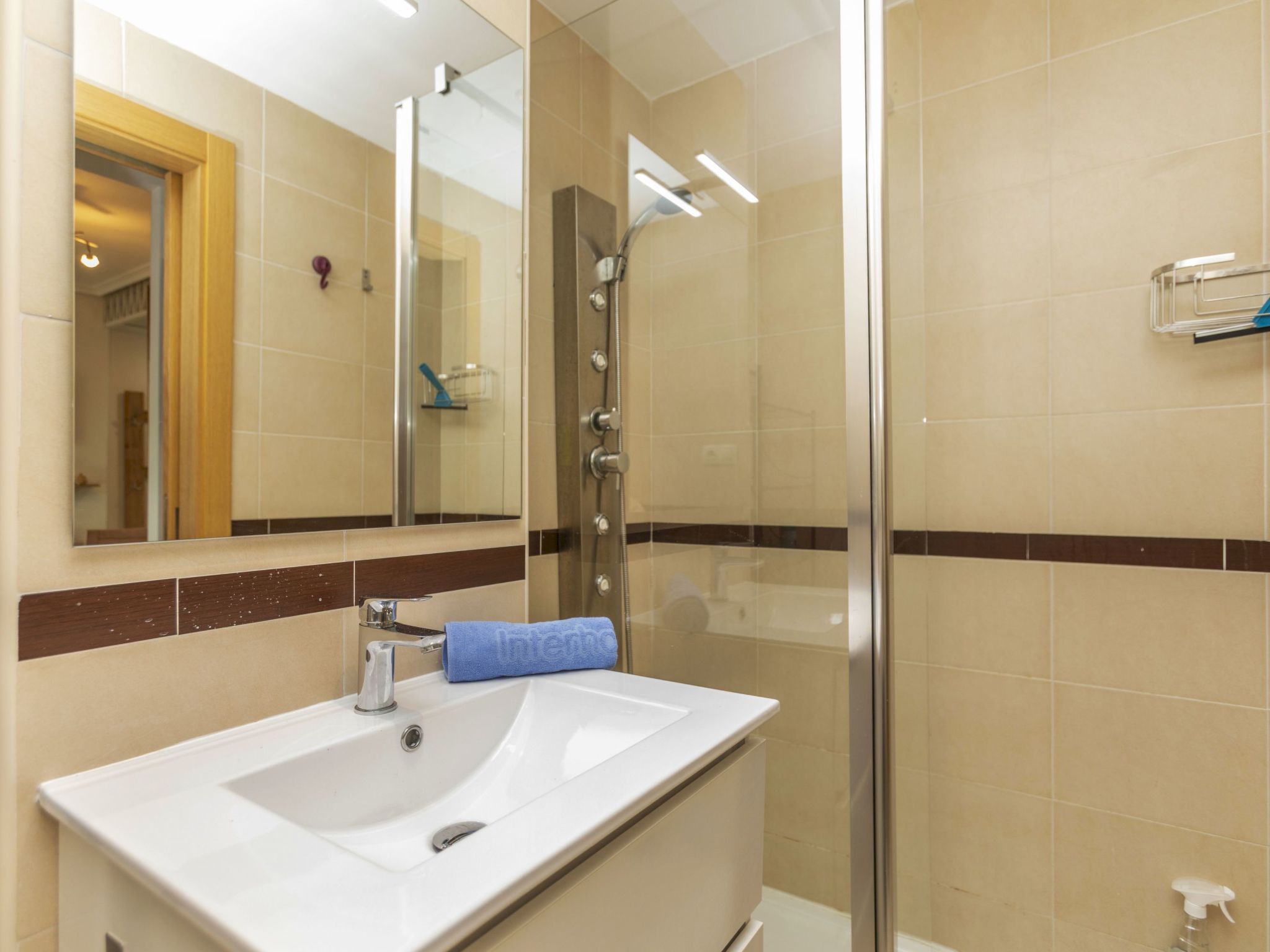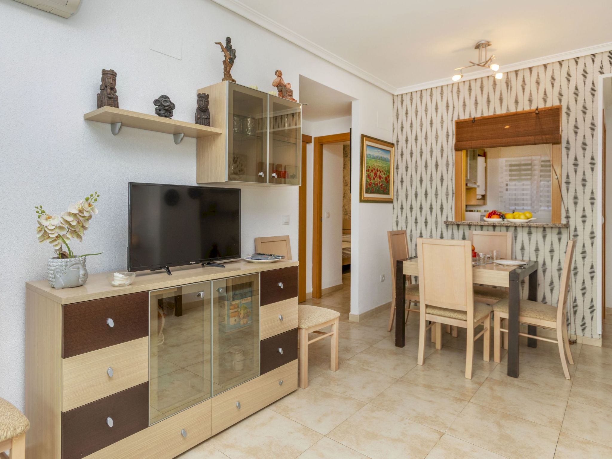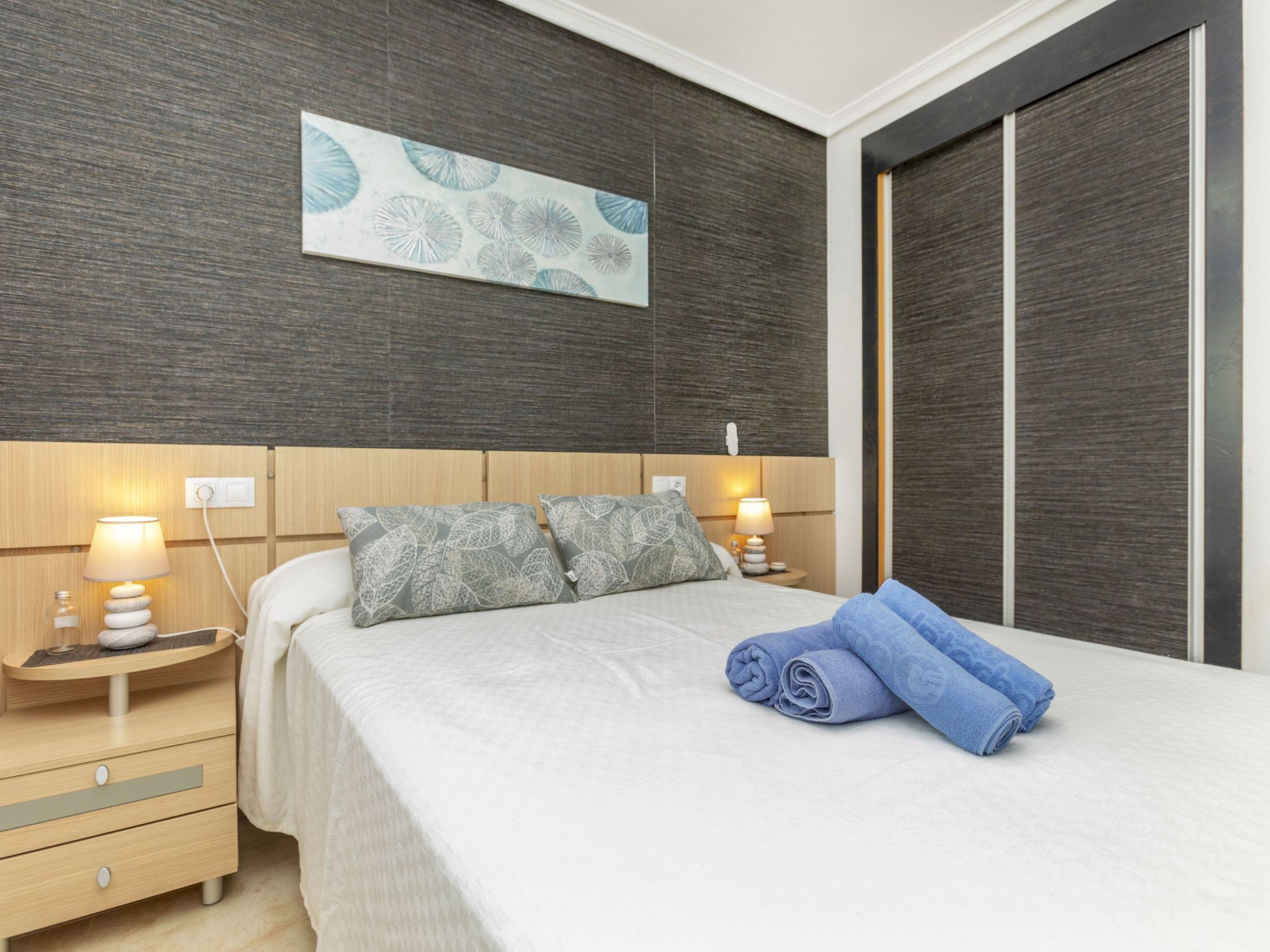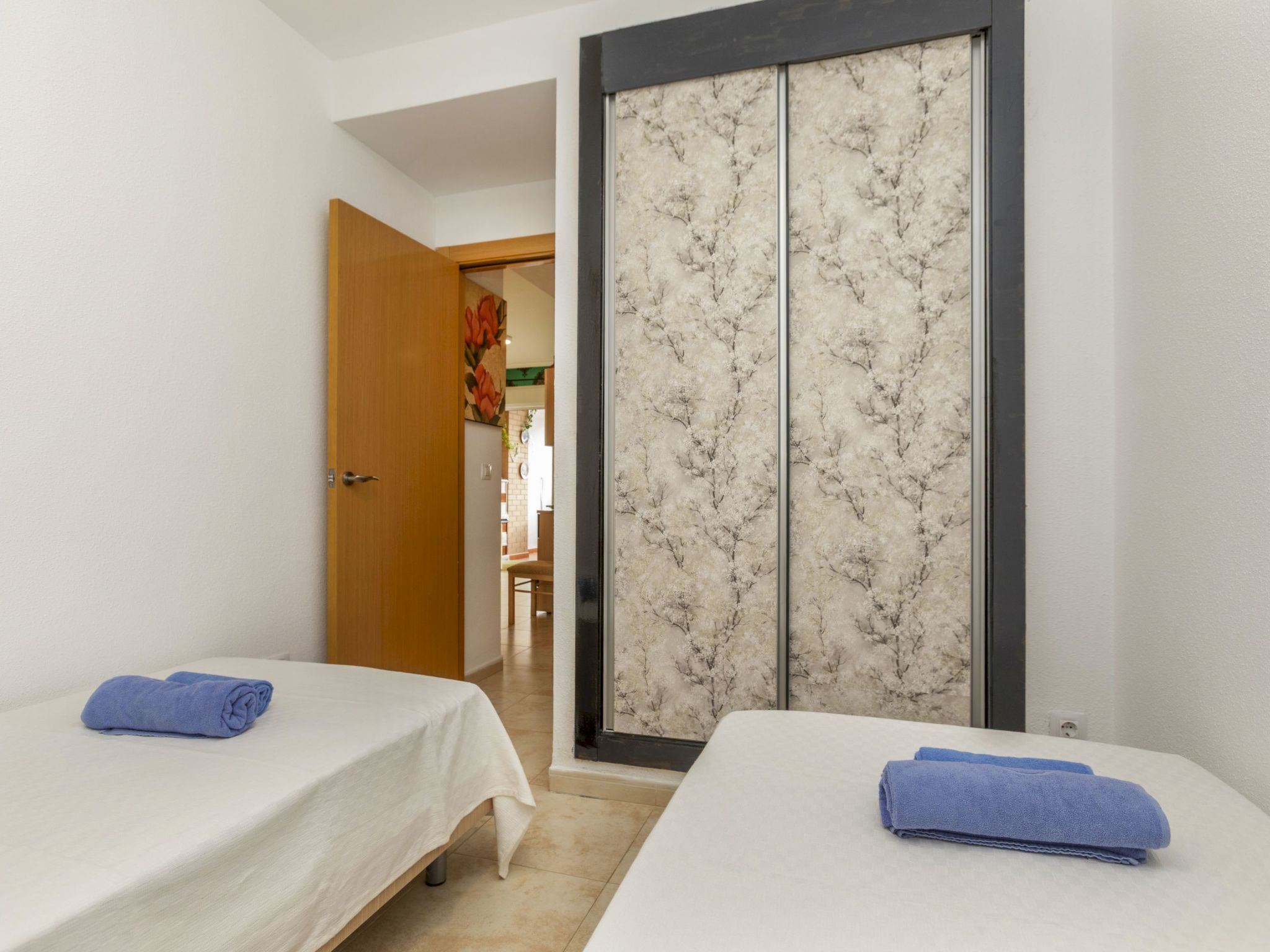 "Jardines Del Mar 3", 3-room apartment 60 m2 on 7th floor. Object suitable for 4 adults + 1 child. Comfortable furnishings: living/dining room with 1 sofabed, dining table, digital TV and air conditioning. Exit to the terrace. 1 room with 1 french bed (135 cm, length 190 cm). 1 room with 2 beds (90 cm, length 190 cm). Small kitchen (oven, 4 ceramic glass hob hotplates, toaster, kettle, microwave, electric coffee machine). Shower/bidet/WC. Boiler (80 litres). Small terrace. Terrace furniture. Side distant view of the sea and the mountains. Facilities: washing machine, iron, hair dryer. Internet (WiFi, free). Parking space n 246. Please note: non-smokers only. Maximum 1 small pet/ dog allowed. TV only ES. VT-30666-CS