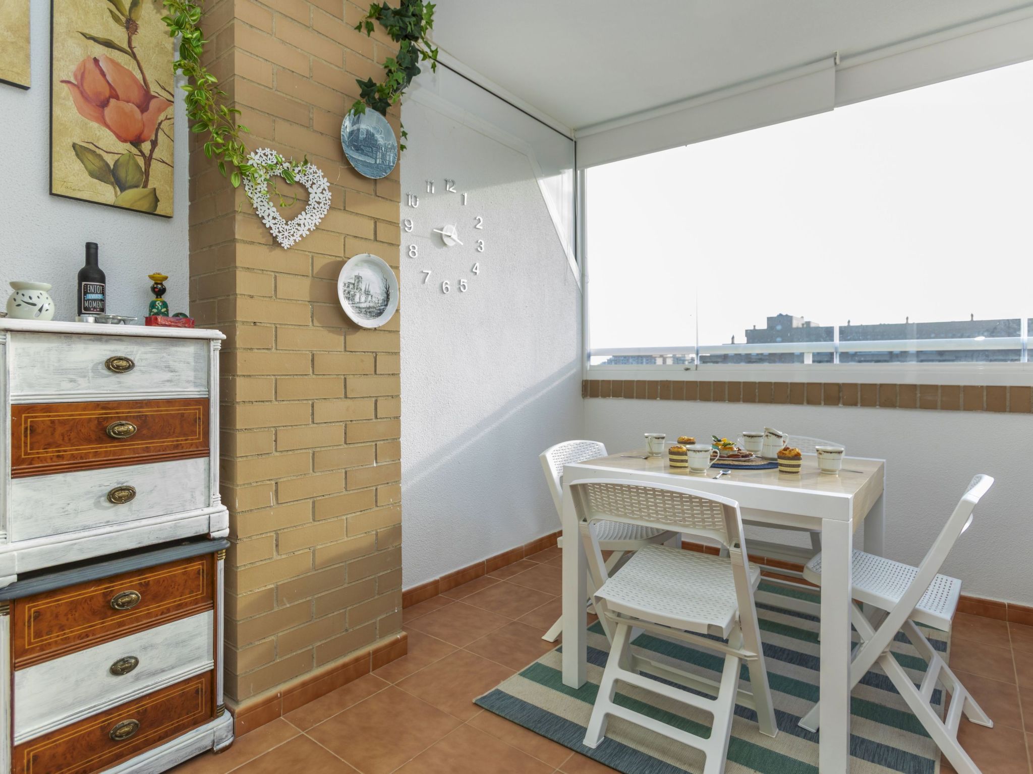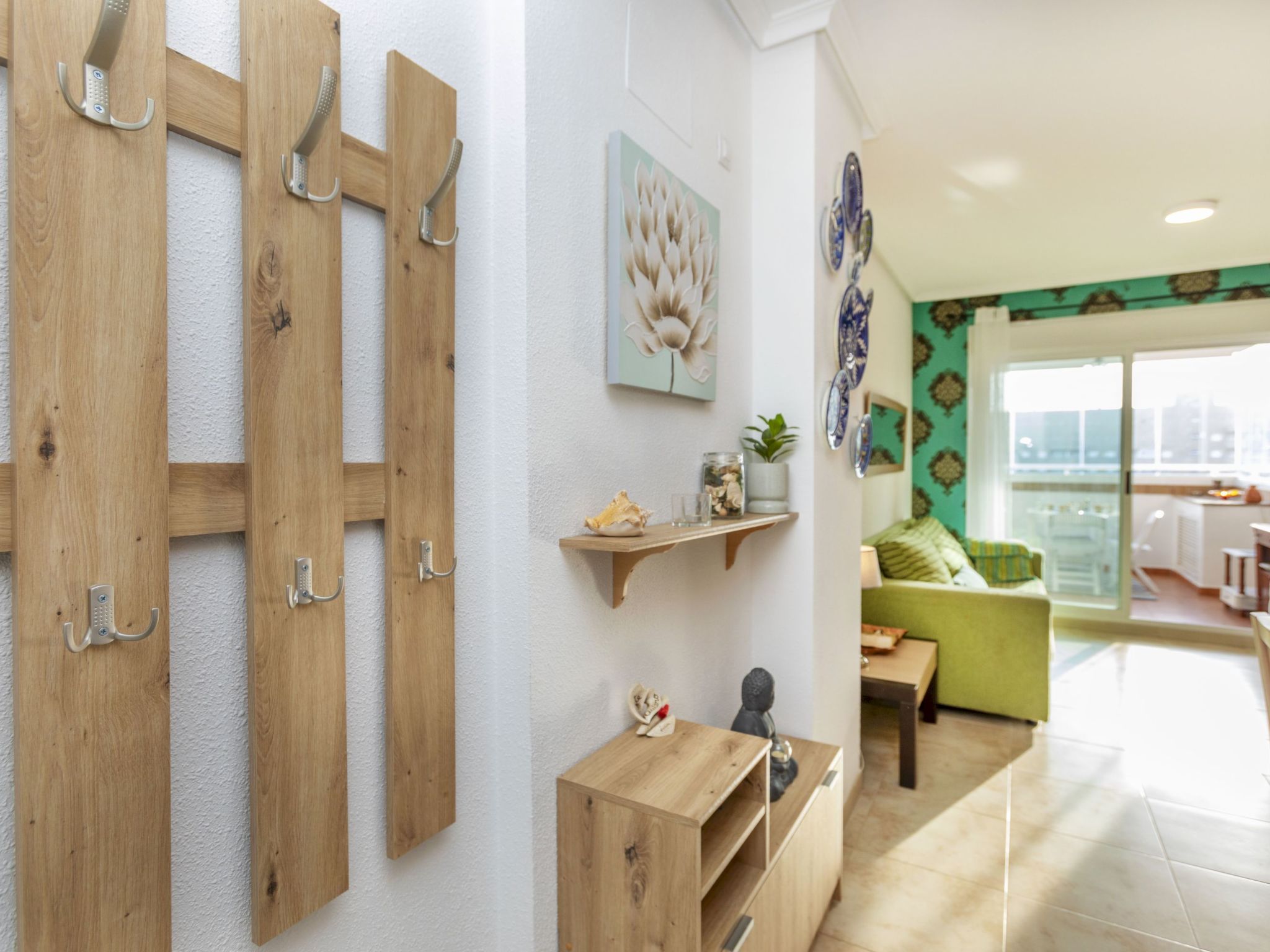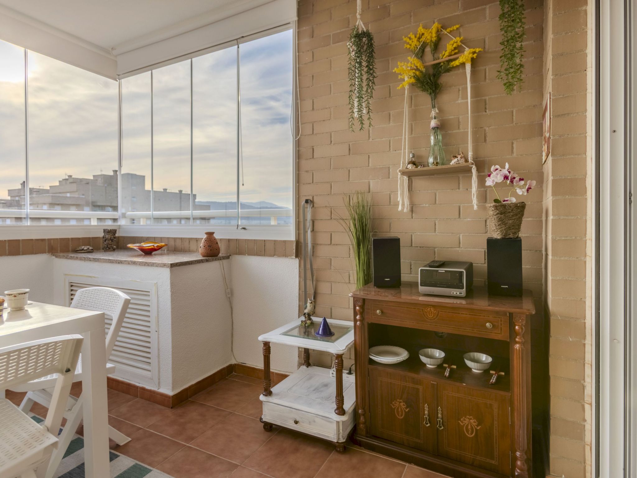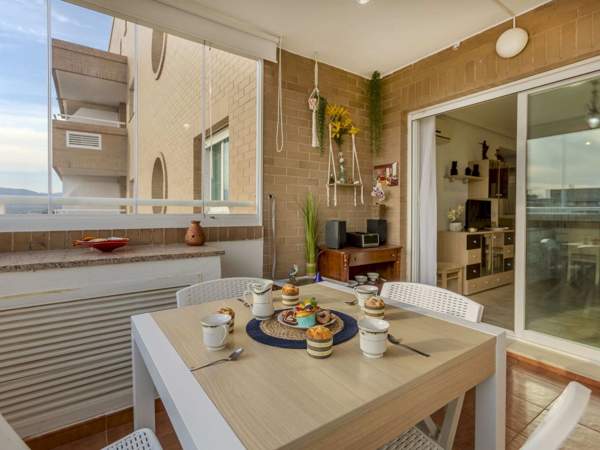 "Jardines Del Mar 3", 3-room apartment 60 m2 on 7th floor. Object suitable for 4 adults + 1 child. Comfortable furnishings: living/dining room with 1 sofabed, dining table, digital TV and air conditioning. Exit to the terrace. 1 room with 1 french bed (135 cm, length 190 cm). 1 room with 2 beds (90 cm, length 190 cm). Small kitchen (oven, 4 ceramic glass hob hotplates, toaster, kettle, microwave, electric coffee machine). Shower/bidet/WC. Boiler (80 litres). Small terrace. Terrace furniture. Side distant view of the sea and the mountains. Facilities: washing machine, iron, hair dryer. Internet (WiFi, free). Parking space n 246. Please note: non-smokers only. Maximum 1 small pet/ dog allowed. TV only ES. VT-30666-CS
