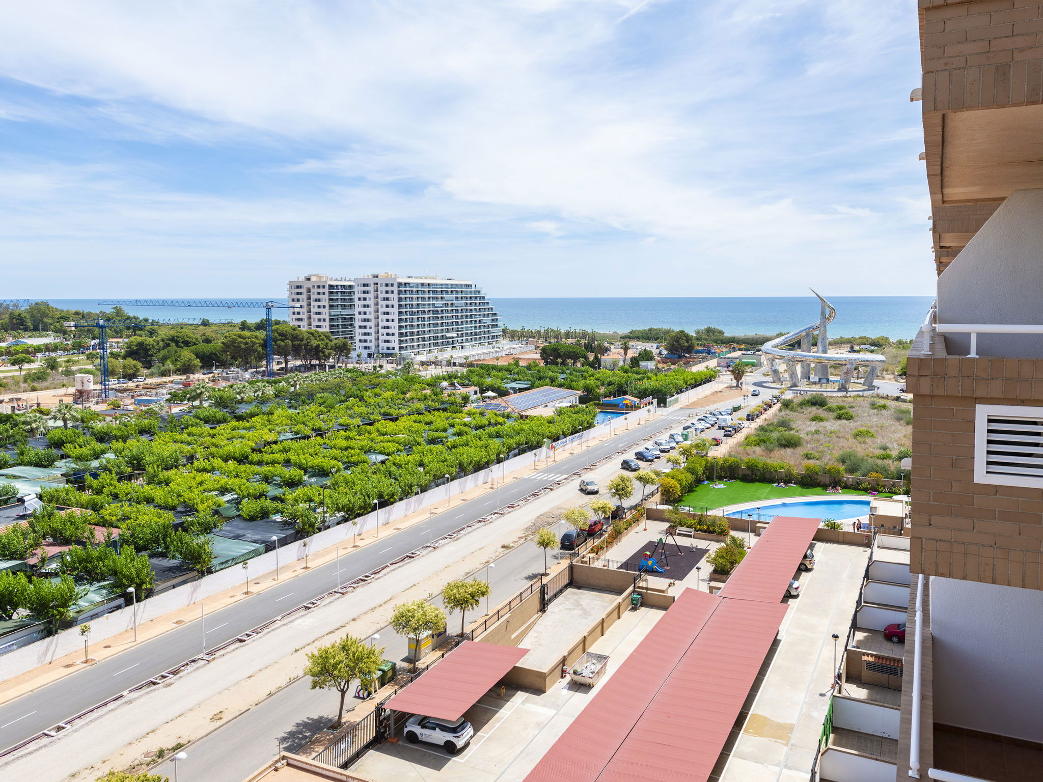 Marina D'or: Comfortable apartment block "Jardines del Mar III". In the resort 3.5 km from the centre of Oropesa del Mar, in the district Marina D´or, in a sunny position, 300 m from the sea, 300 m from the beach, located by a road, on a main road. For shared use: property, garden, swimming pool round (20 x 10 m, depth 70 - 270 cm, seasonal availability: 01.Jun. - 15.Sep. pool opening hours: 10:00-14:00 and 16:00-20:00). Children's pool, outdoor shower, children's playground. In the house: lift. Communal covered parking. Supermarket, restaurant, bar, café 200 m, bus stop 1.2 km, railway station "Oropesa de Mar" 3 km, sandy beach 300 m. Sports harbour 6 km, golf course 22 km. Nearby attractions: Parque Acuatico 1 km. Groups of teenagers on request only. Please note: motorway 900 m from the property. Additional accommodations can be booked. Property ref. ES9653.8 is situated on the same property. Neighbourhood highly sensitive to noise. Quietness and good behaviour expected.