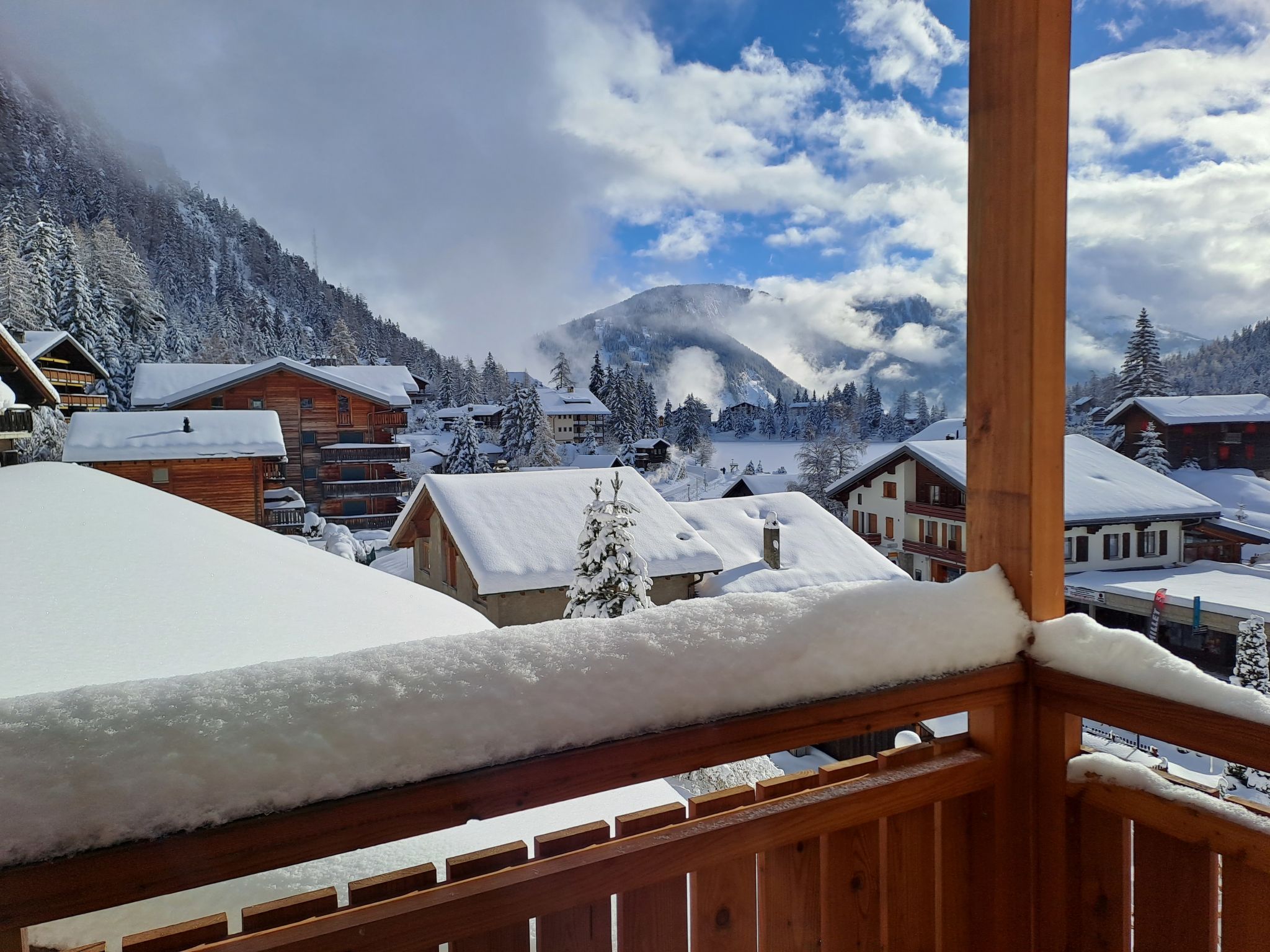 "Résidence 25", 3-room apartment 100 m2 on 1st floor. Comfortable and beautiful furnishings: living/dining room with open-hearth fireplace and satellite TV. Exit to the balcony. 2 rooms, each room with 1 french bed (180 cm, length 200 cm). Exit to the balcony. Open kitchen (oven, dishwasher, toaster, kettle, electric coffee machine, Capsules for coffee machine (Nespresso) extra, raclette grill, fondue Set (cheese)). Bathroom. Large balcony. View of the lake and the mountains. Facilities: Internet (WiFi). Parking space n 25 (roofed, 1 car). Please note: non-smokers only. Maximum 1 pet/ dog allowed. No lift.