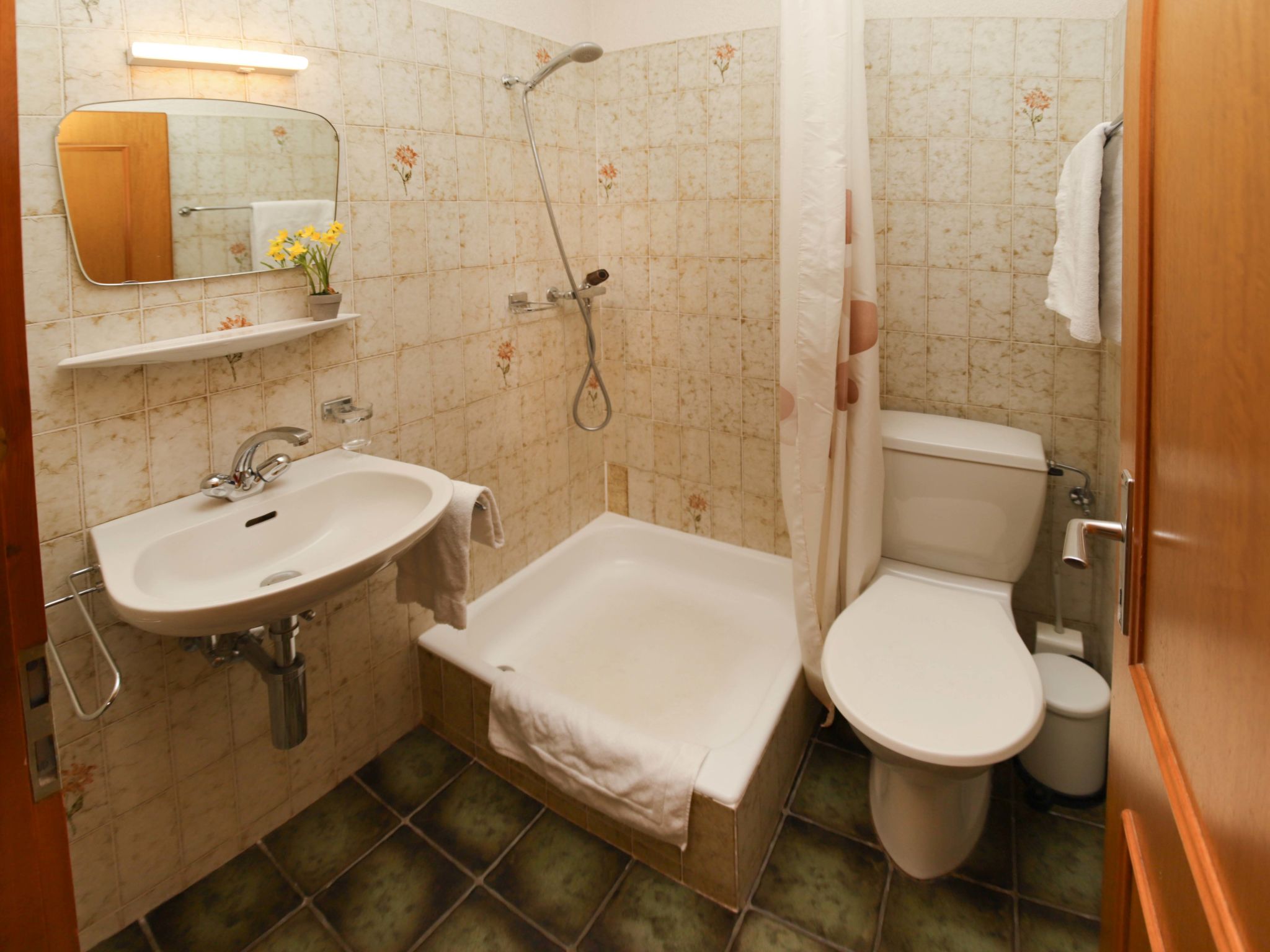 "Le Sporting 213", 3-room apartment 80 m2 on 2nd floor. Spacious and bright, comfortable and wooden furniture furnishings: large living/dining room with open-hearth fireplace, dining table, cable TV and flat screen. 1 large room with 1 bed (180 cm, length 200 cm). Exit to the terrace. 1 room with 1 bed (90 cm, length 190 cm), 1 x 2 bunk beds (90 cm, length 200 cm). Open kitchen (oven, dishwasher, 4 ceramic glass hob hotplates, toaster, kettle, microwave, electric coffee machine, Capsules for coffee machine (Nespresso) extra, fondue Set (cheese)). Bath/WC, shower/WC. Heating, electric heating. Large terrace. Terrace furniture. Very beautiful view of the lake and the mountains. Facilities: children's high chair, baby cot, hair dryer. Internet (WiFi). Please note: suitable for families. Non-smokers only. Maximum 1 pet/ dog allowed.