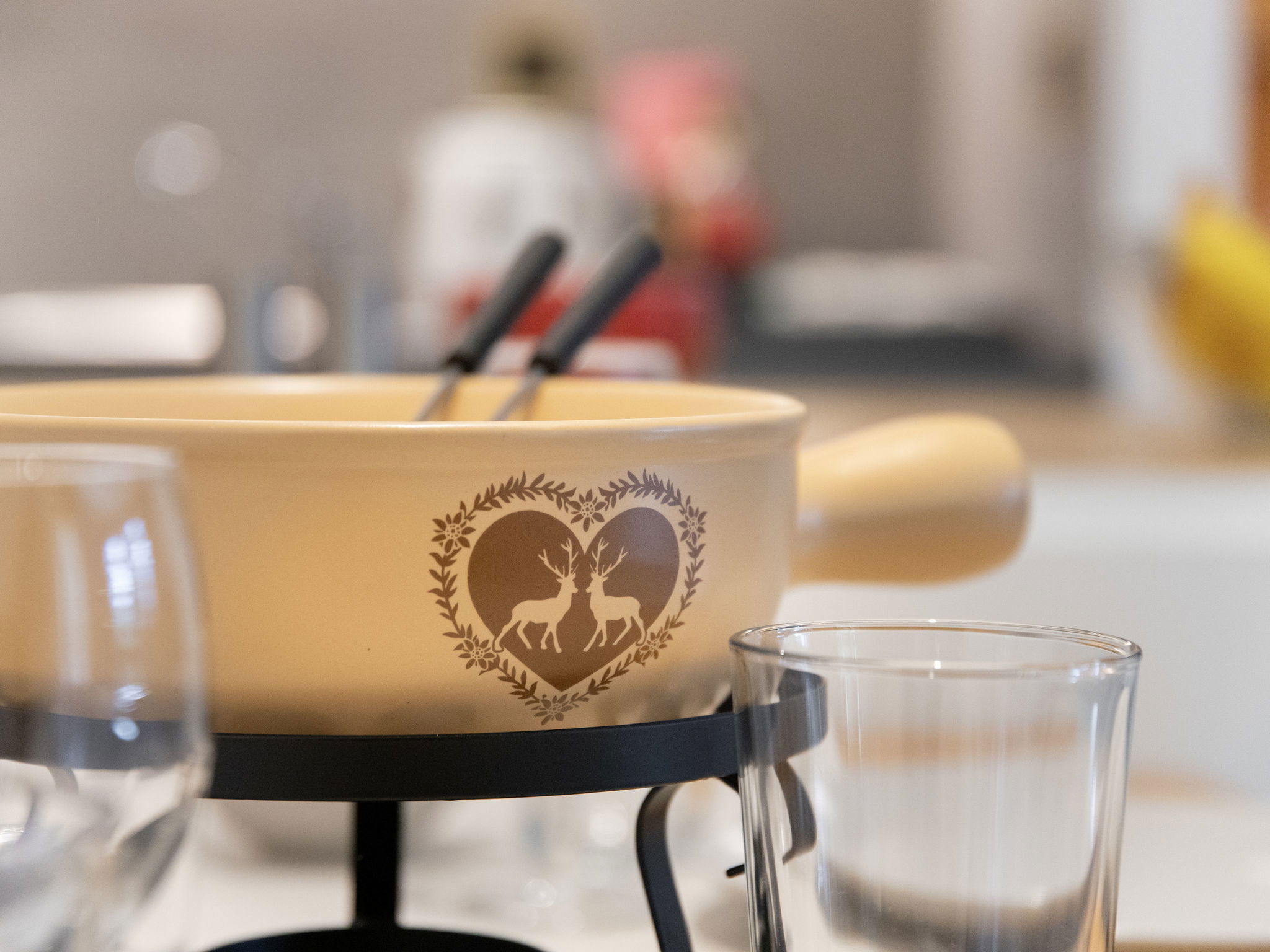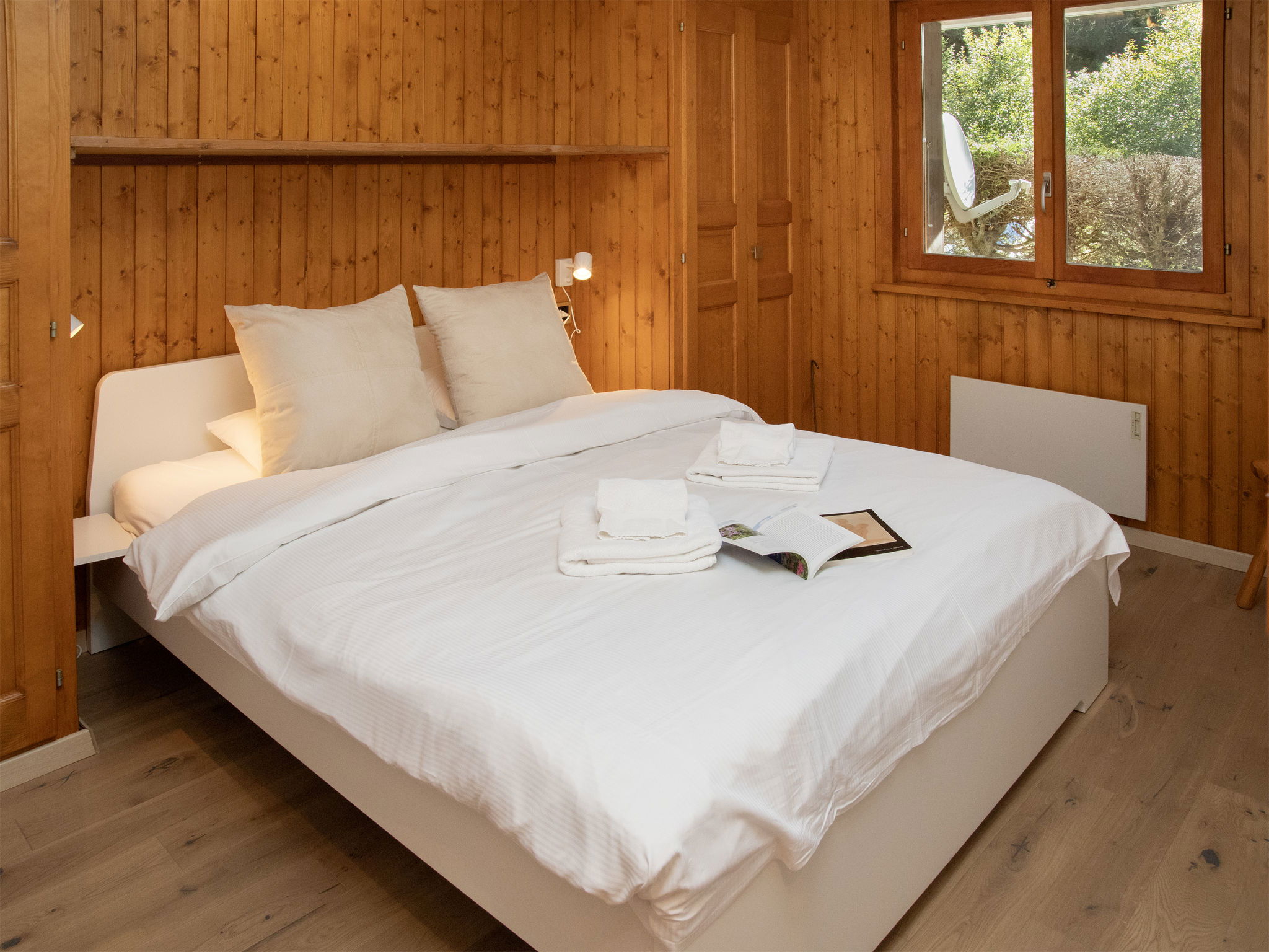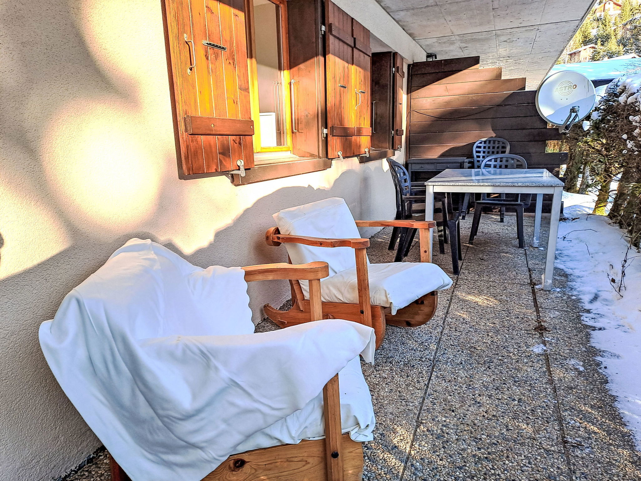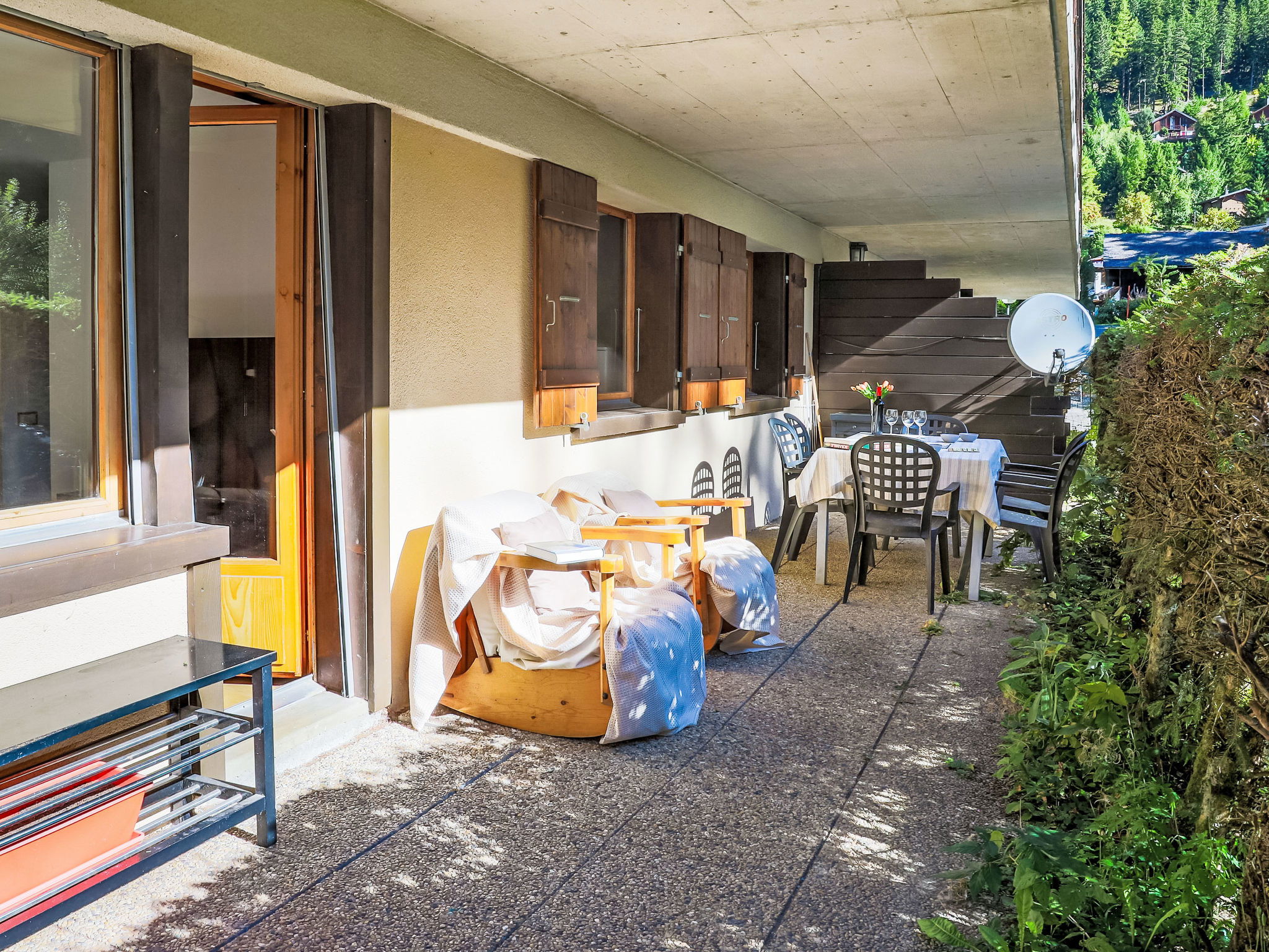 "Arolla R01", 3-room apartment 60 m2, on the ground floor. Bright, renovated, comfortable and beautiful furnishings: living/dining room with kitchen corner and cable TV. Exit to the balcony. 1 room with 1 double bed (1 x 160 cm, length 200 cm). 1 room with 1 x 2 bunk beds (90 cm, length 200 cm). Open kitchen (4 hot plates, dishwasher, toaster, kettle, electric coffee machine, fondue Set (cheese)). Bath/WC, sep. WC. Electric heating. Parquet floors. Large balcony. View of the forest. Facilities: hair dryer. Internet (WiFi). Parking. Please note: suitable for families. Non-smokers only. Maximum 1 pet/ dog allowed.