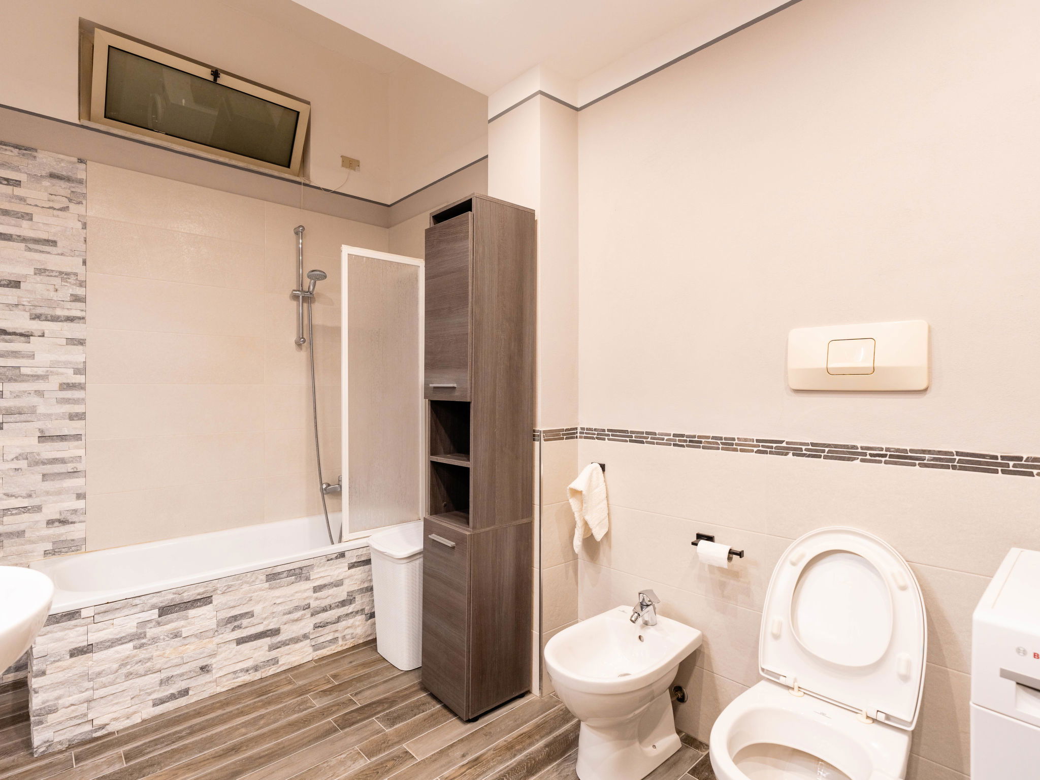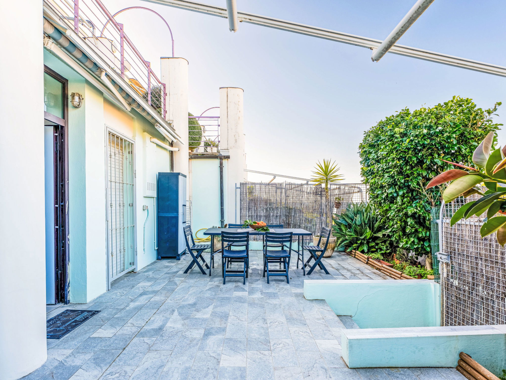 Very cosy residence "Bouganville", 4 storeys, renovated in 2024. 1 km from the centre of Ospedaletti, 5 km from the centre of Sanremo, 12 km from the centre of Ventimiglia, in an elevated position on a slope, 1.5 km from the sea. Stepped path (30 steps) to the house. Public parking 100 m on the road. Grocery 700 m, supermarket 1.2 km, restaurant 600 m, bar 500 m, bicycle rental 1.2 km, bus stop 300 m, railway station 1200 km, sandy beach 1.2 km. Cycle lane 1 km. Please note: car recommended, no lift.