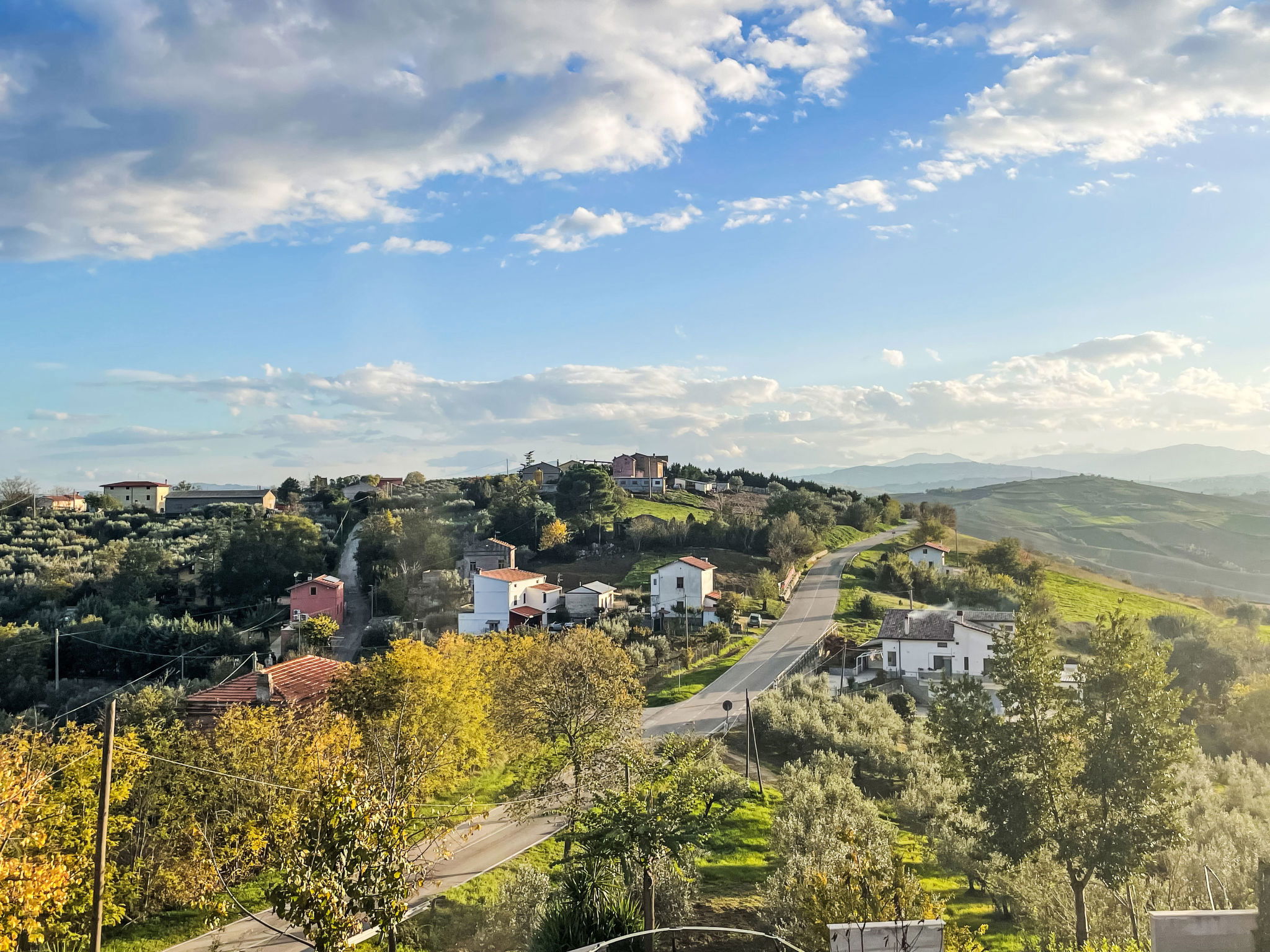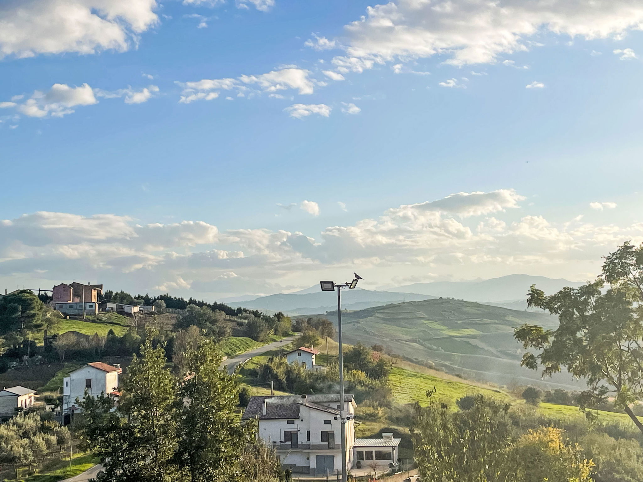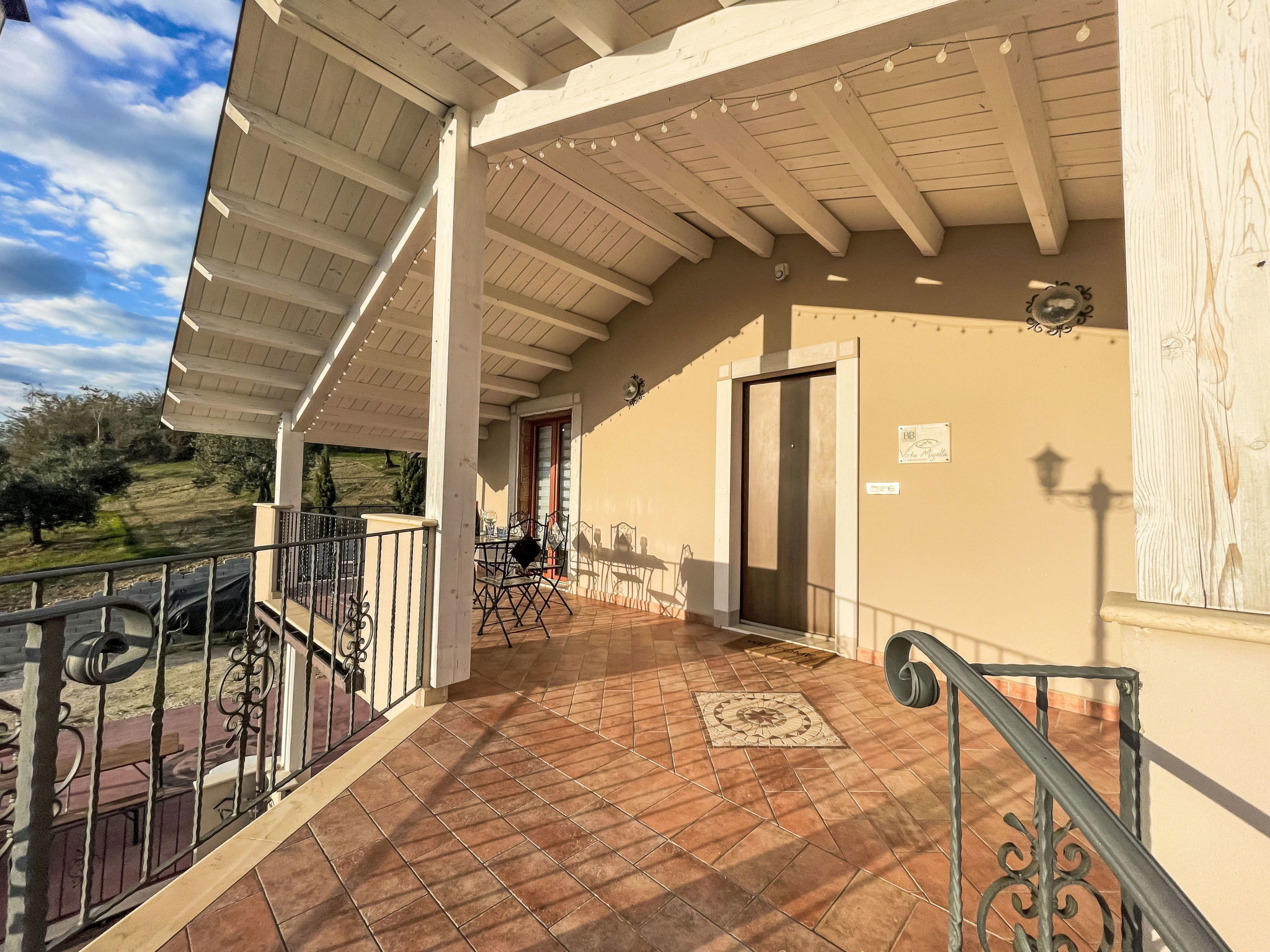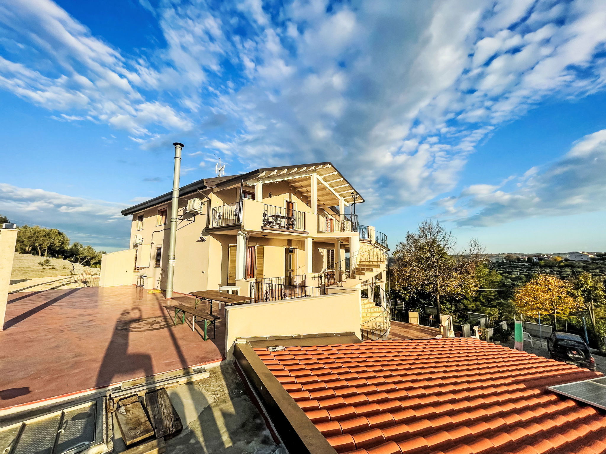 Modern, beautiful 2-family house 250 m a.s.l., surrounded by meadows and fields. On the outskirts, 1 km from the centre of Paglieta, in a sunny, elevated position on top of a hill, 10 km from the sea, 10 km from the beach. For shared use: natural state property 3'000 m2. In the house: air conditioning, washing machine. Breakfast. Pre-arrival grocery service. Parking at the house on the premises. Grocery 1 km, supermarket 9 km, restaurant 1 km, bus stop "Paglieta" 1.4 km, railway station "Fossacesia" 12 km, sandy beach "Le Morge" 14 km pebble beach "Marina di Fossacesia" 9 km. Nearby attractions: Pescara 60 km, Ortona 30 km, Termoli 70 km, Vasto 30 km, Castel di Sangro 45 km, Zoo d'Abruzzo 15 km. Well-known lakes can easily be reached: Lago di Bomba 25 km. Hiking paths: Riserva di Punta Aderci 20 km, Riserva naturale della Lecceta 7 km. Please note: car recommended. The owner lives in the same residence. The owner has a dog.