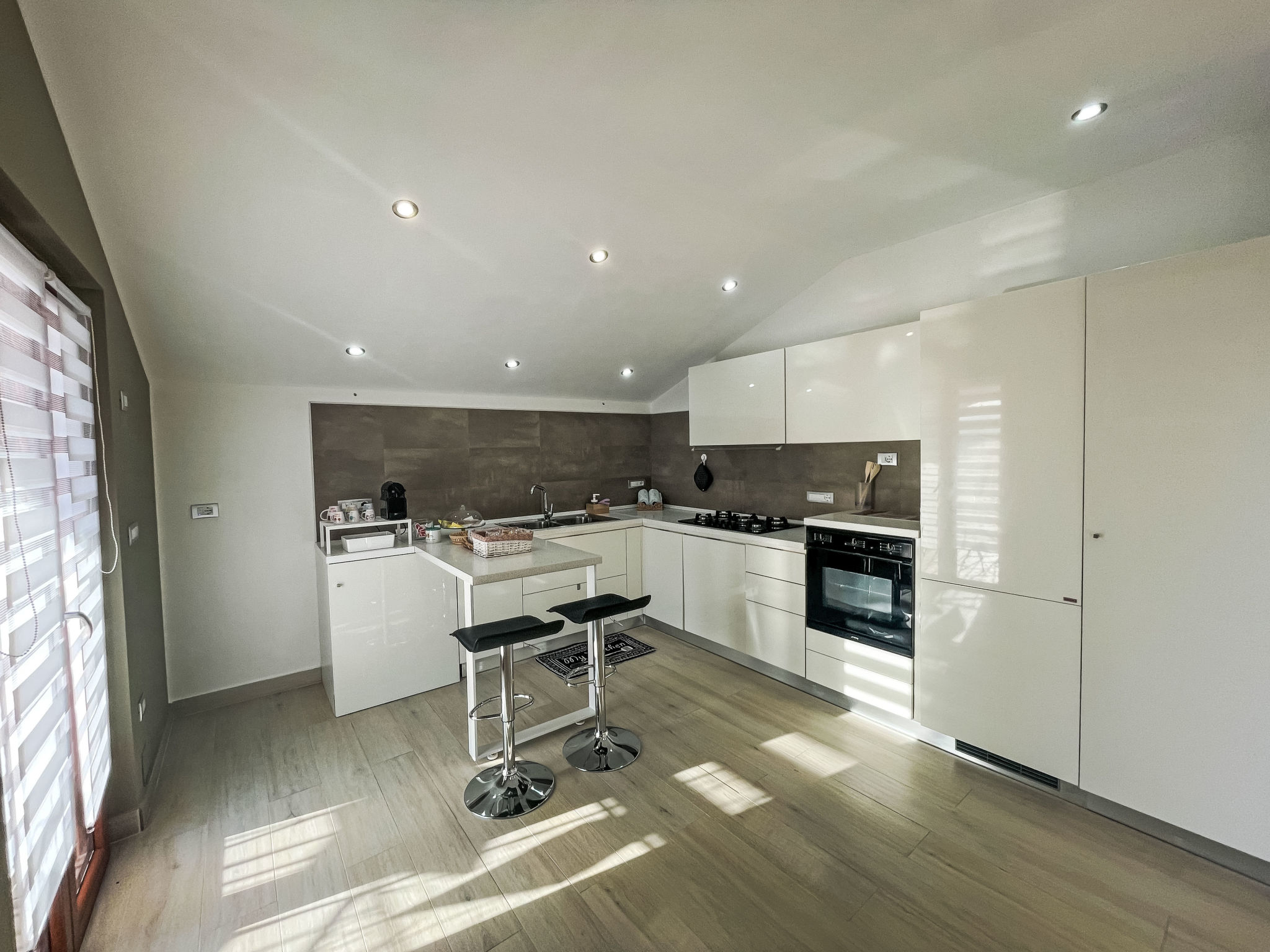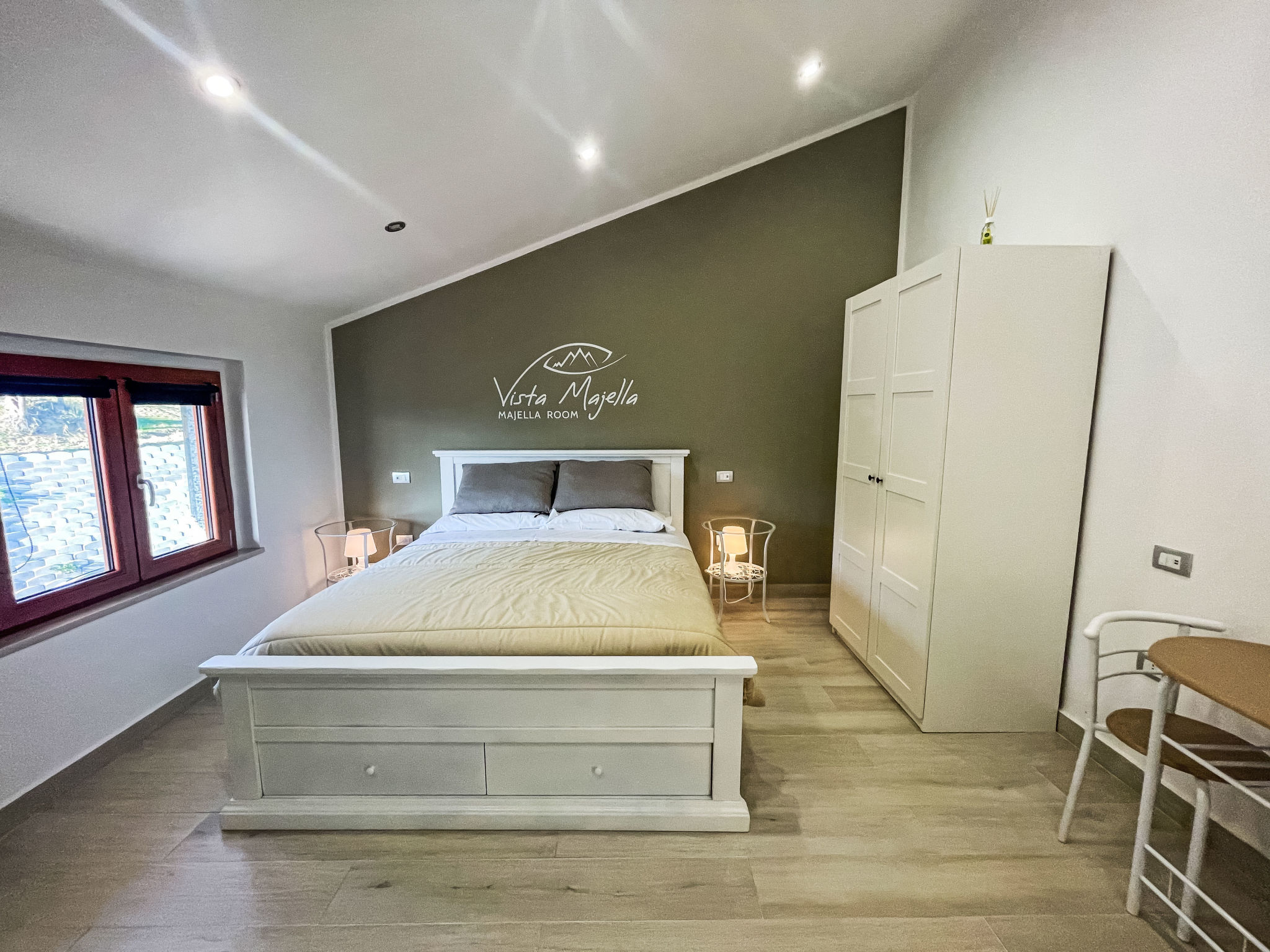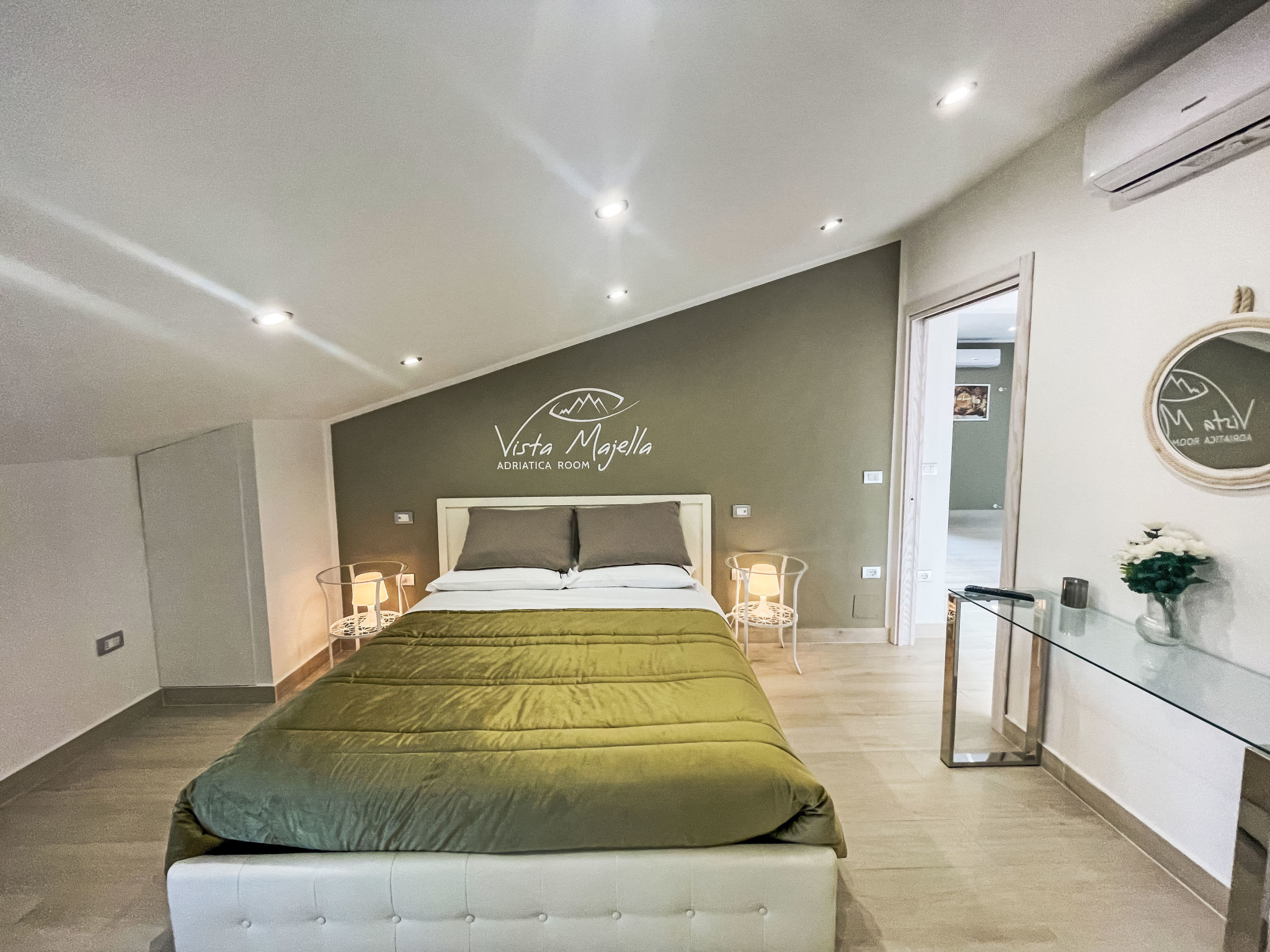 "Vista Majella", 3-room apartment 110 m2, on the top floor. Modern and stylish furnishings: top floor: (exterior staircase) living/dining room with 1 double sofabed and TV. Exit to the terrace. 2 rooms, each room with 1 double bed and TV. Open kitchen (oven, dishwasher, Gas stove, 5 gas rings, toaster, kettle, freezer, electric coffee machine, Capsules for coffee machine (20) free). Exit to the terrace. 2 showers/bidet/WC. Heating, air-conditioning. Heating available only from 15.10. to 15.04. Natural stone floors. Large terrace 30 m2, south facing position and west facing position. Terrace furniture, deck chairs (2). Very beautiful panoramic view of the mountains and the countryside. Facilities: washing machine, baby cot for up to 2 year olds. Internet (WiFi, free). Please note: suitable for families. Maximum 1 pet/ dog allowed. Private entrance, smoke alarm, fire extinguisher. IT069059C20X533W8G