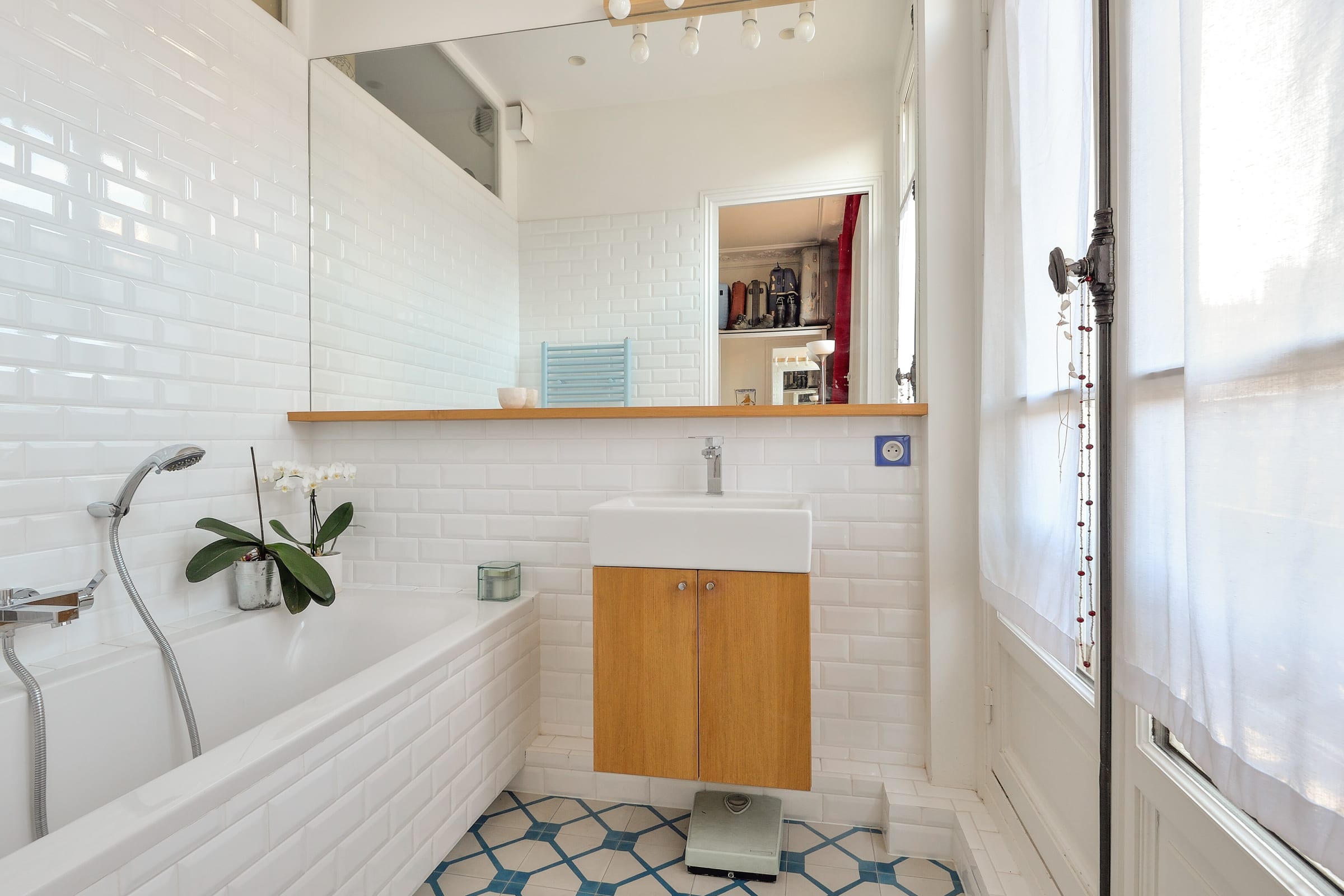 Nestled on the 5ᵉ floor of a Haussmann building with elevator, the apartment features: