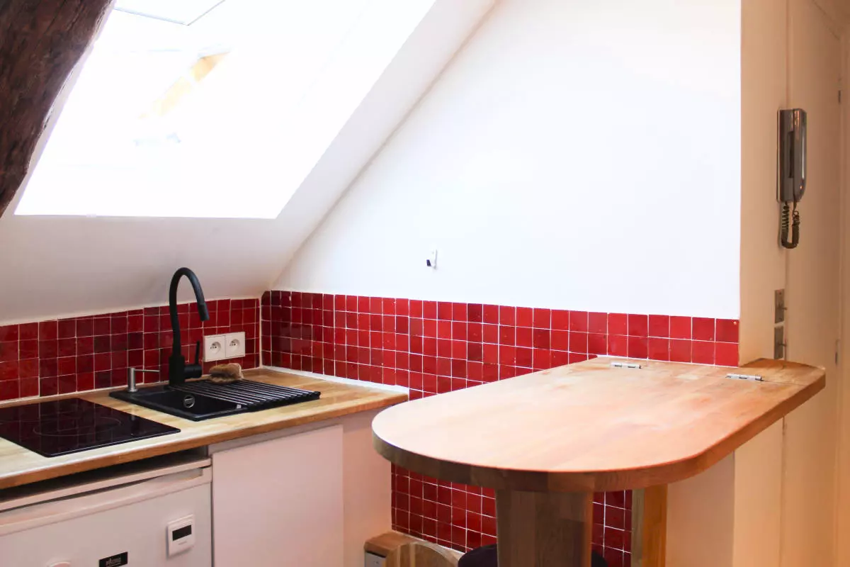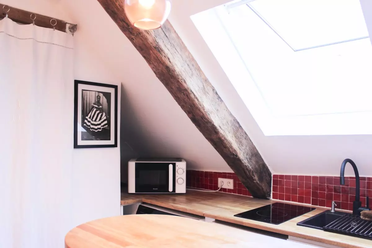 One of the major advantages of this apartment is its practicality, thanks to the presence of a macerating toilet. It is also highly valued for its location. You will have a breathtaking view of the rooftops of Paris and the Sacré-Cœur Basilica.