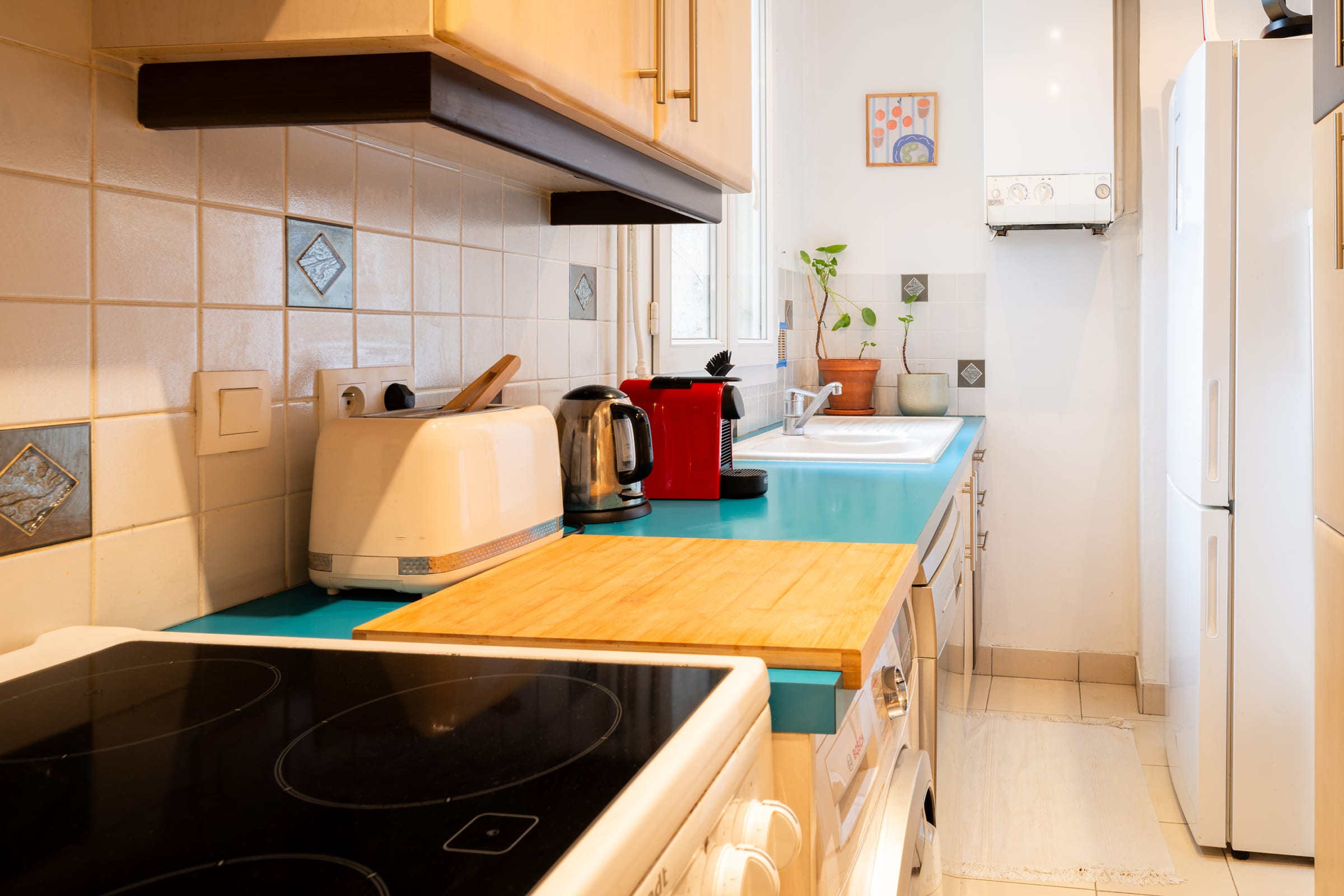 - a fully-equipped kitchen (coffee machine, toaster, blender, kettle, oven, hob, dishwasher, fridge, freezer),