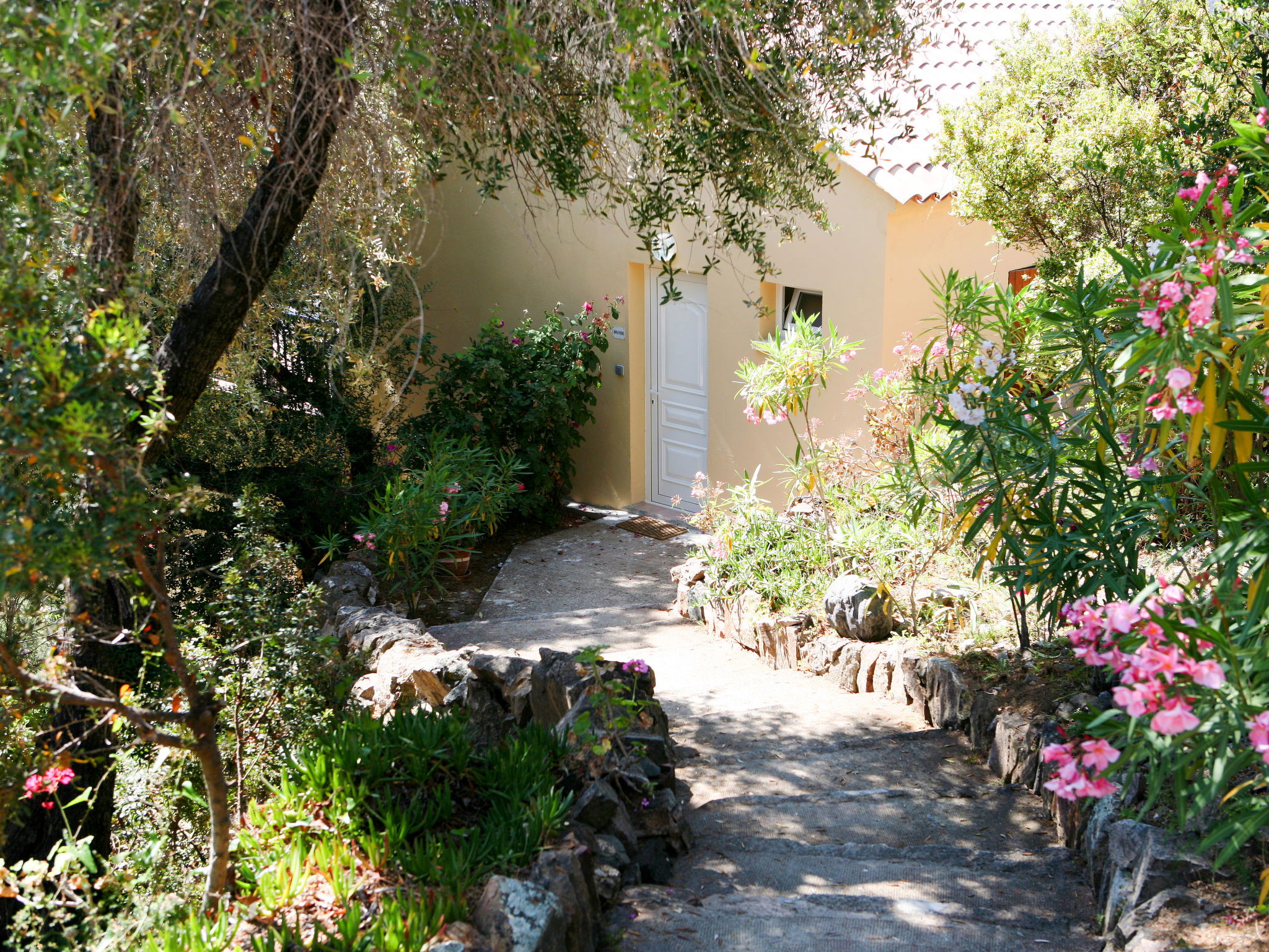 Small, cosy residence "Les Asphodeles", surrounded by trees. 6 houses in the residence. 18 apartments in the residence. 700 m from the centre of Partinello, 14 km from the centre of Porto, 150 km from the centre of Bastia, in a sunny, elevated position on a slope, 4 km from the sea, in the countryside. For shared use: terraced garden (fenced) with 2'000 m2, plants and trees, natural garden. Arbour, garden furniture. In the complex: internet access. Parking on the premises. Supermarket 14 km, bus stop 1 km, pebble beach "Caspiu" 4 km. Please note: car recommended. Residence with electric gates. The photograph shows a typical example.