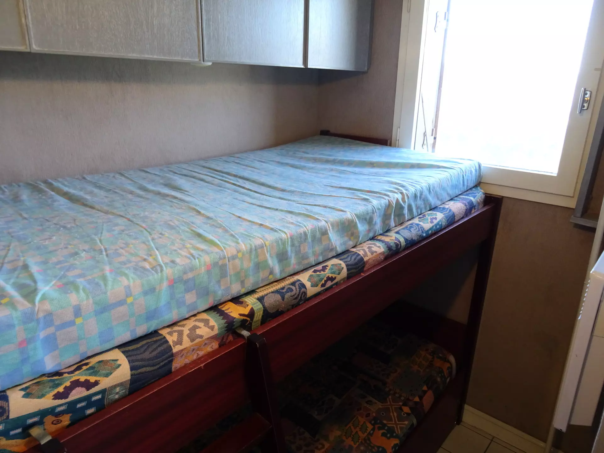 The cabin has a set of bunk beds. Please note that the top bunk is not suitable for children under 6 years old.