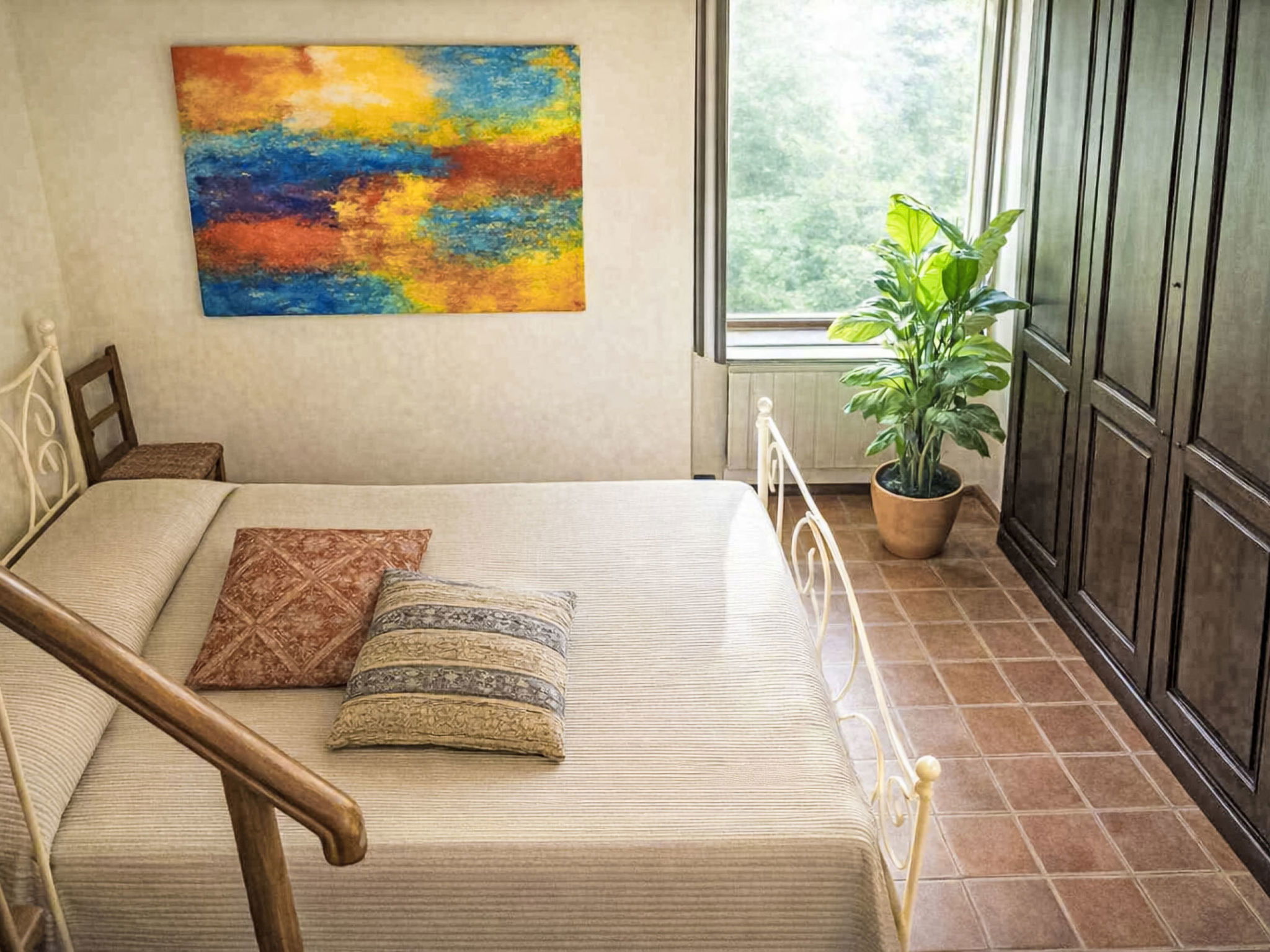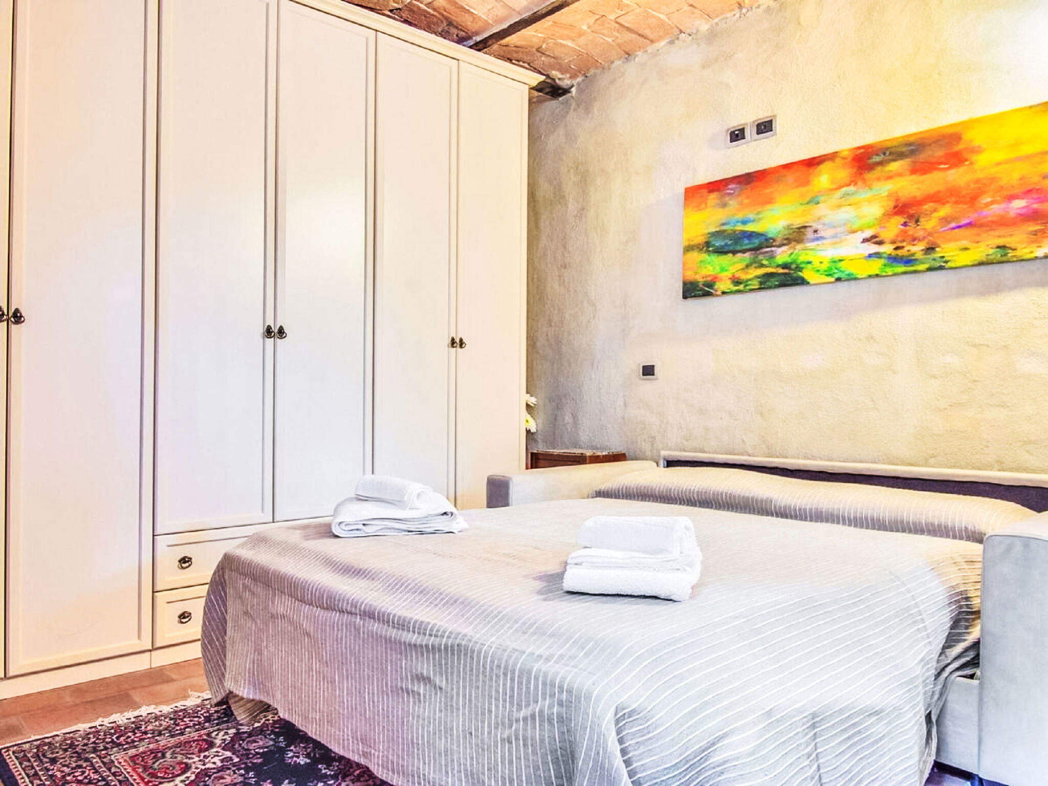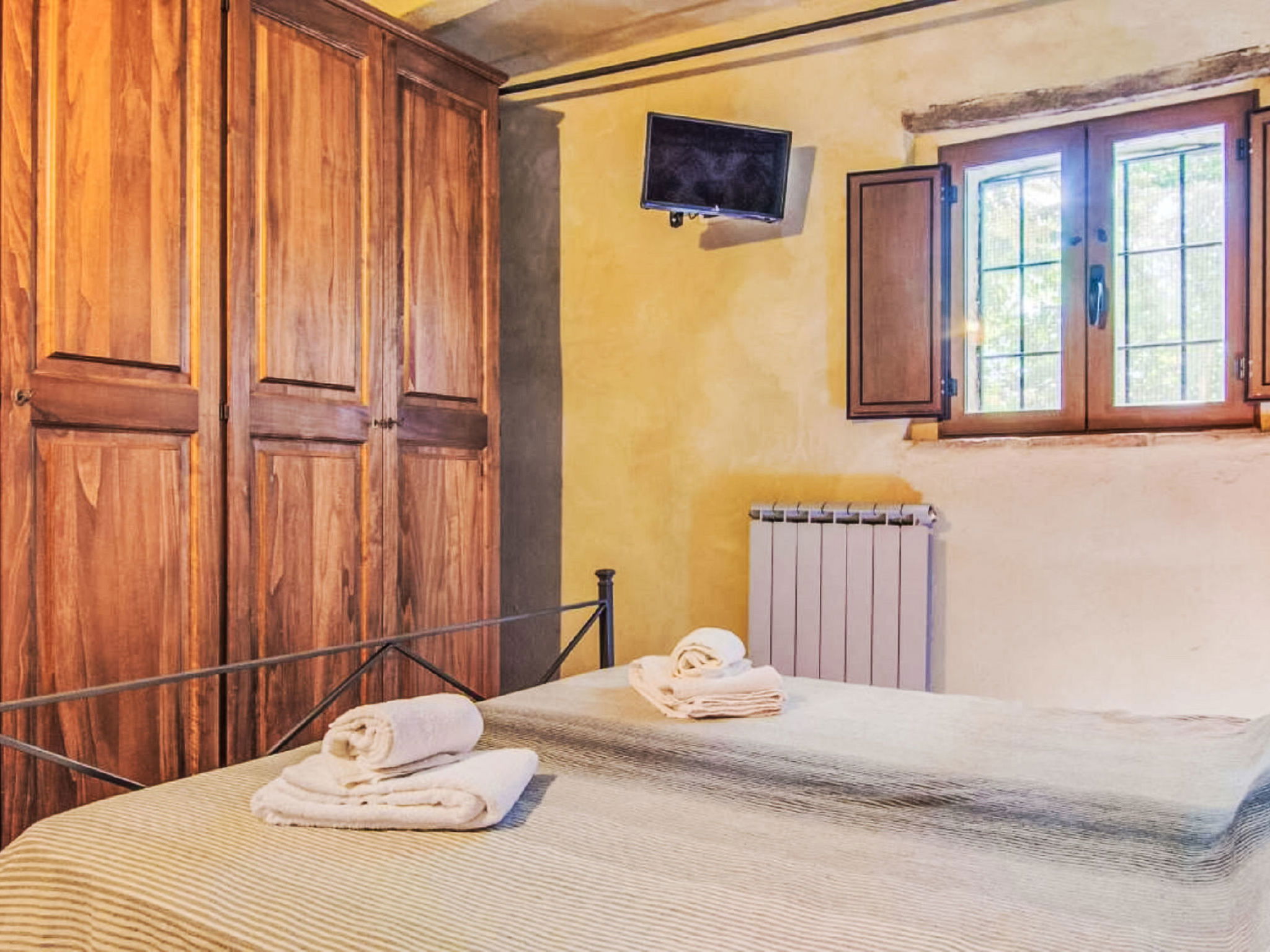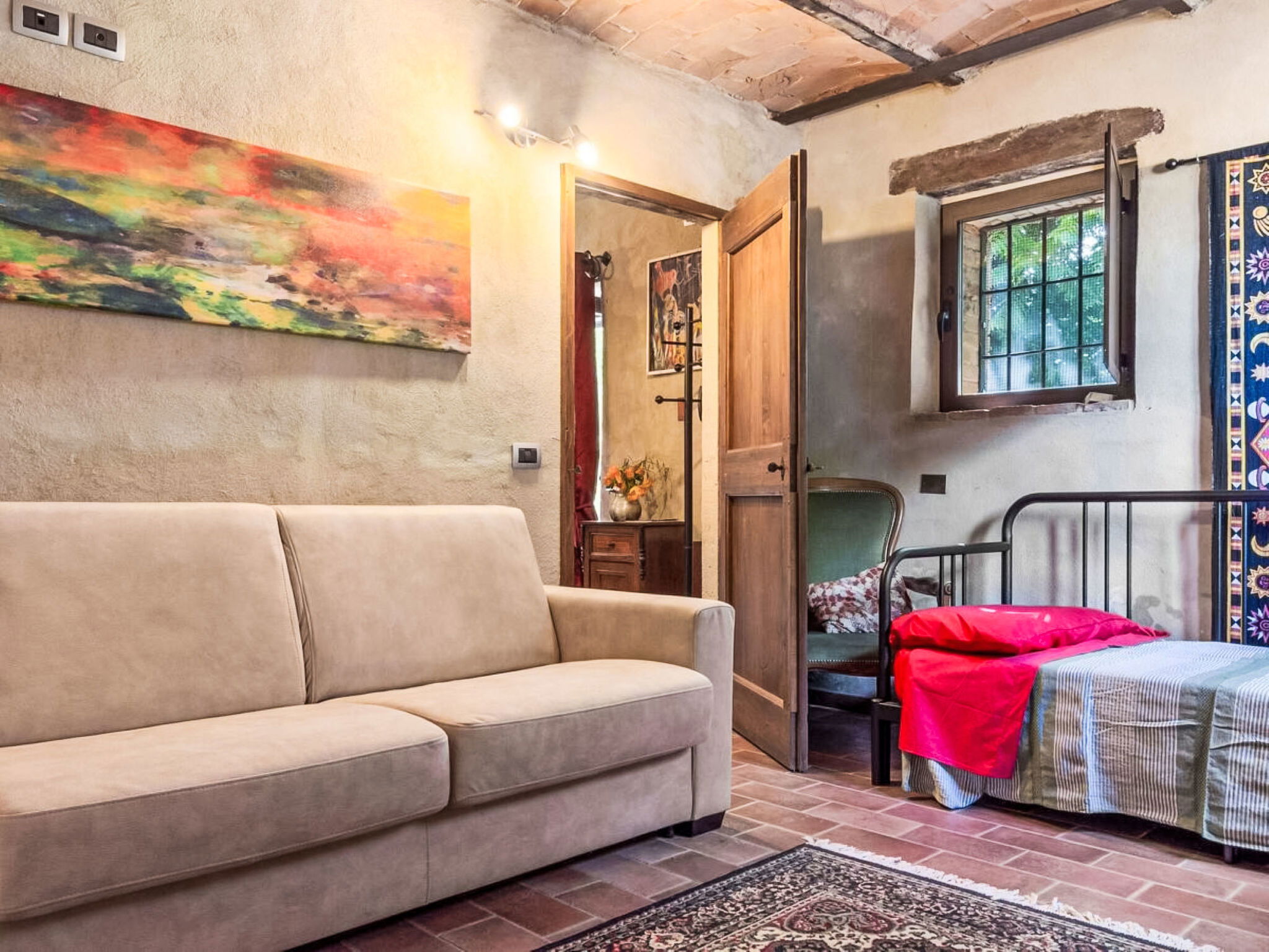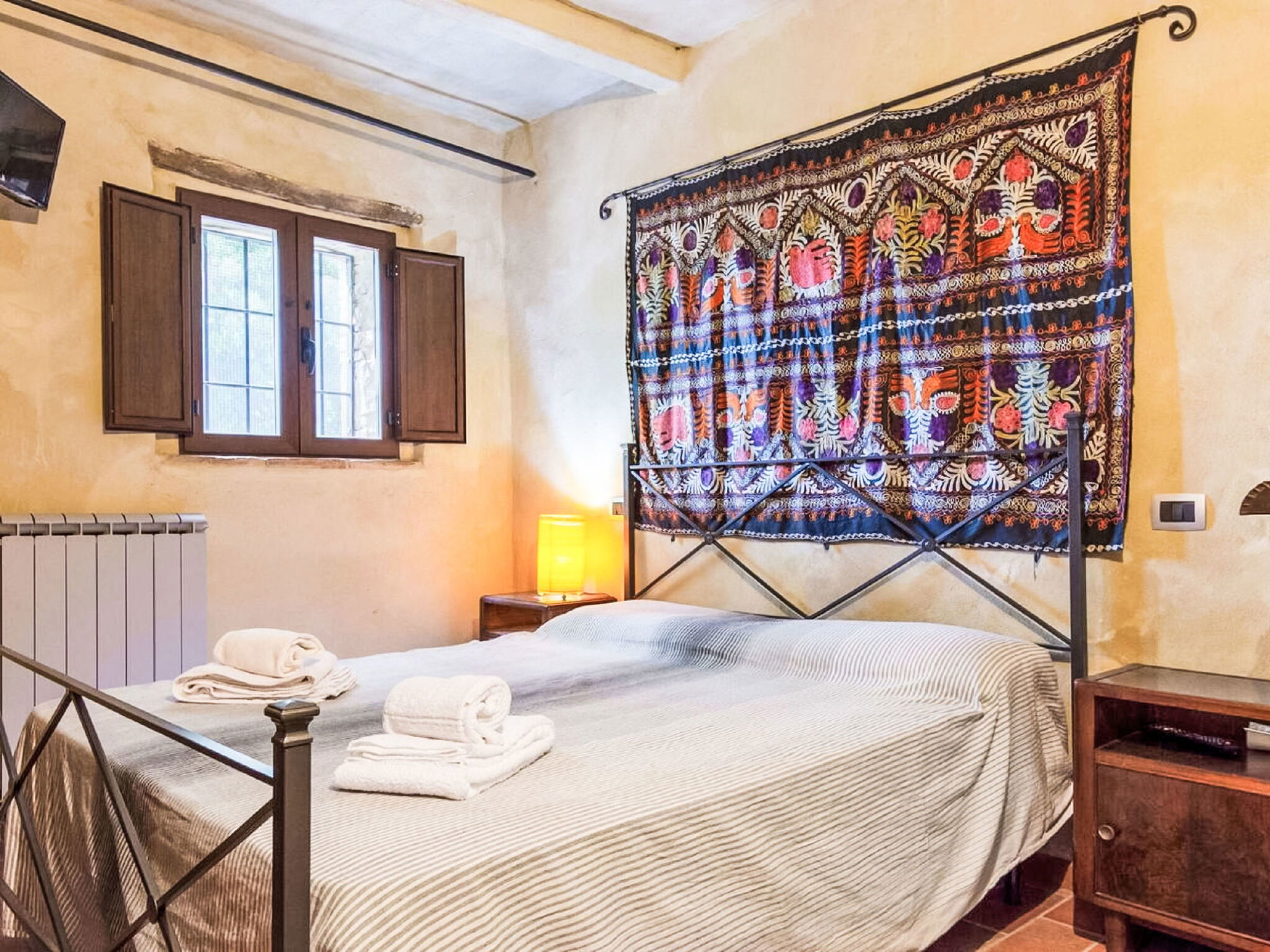 "La Collina degli Ulivi" is a typical farmhouse from the rural areas of the last century, nestled in a valley of vineyards, olive trees and pastures, perfect for relaxing by the pool or exploring the surrounding area rich in history and nature. Rustic, comfortable country house detached. 6 apartments in the property. 25 km from the centre of Perugia. Private: well-kept garden 700 m2 (fenced) with trees, swimming pool (5 x 8 m, depth 140 cm, seasonal availability: 01.Jun. - 30.Sep.) with internal staircase. Garden furniture, barbecue. 600 m long bumpy motor access to the house. Parking on the premises. Grocery 4 km, supermarket 9 km, restaurant 2.7 km, bar 3.7 km, bus stop 2 km. Nearby attractions: Umbertide 10 km, Gubbio 32 km, Assisi 37 km, Spello 43 km, Cortona 60 km. Well-known lakes can easily be reached: Lago Trasimeno 39 km. Please note: car recommended. The owner lives on the same property.