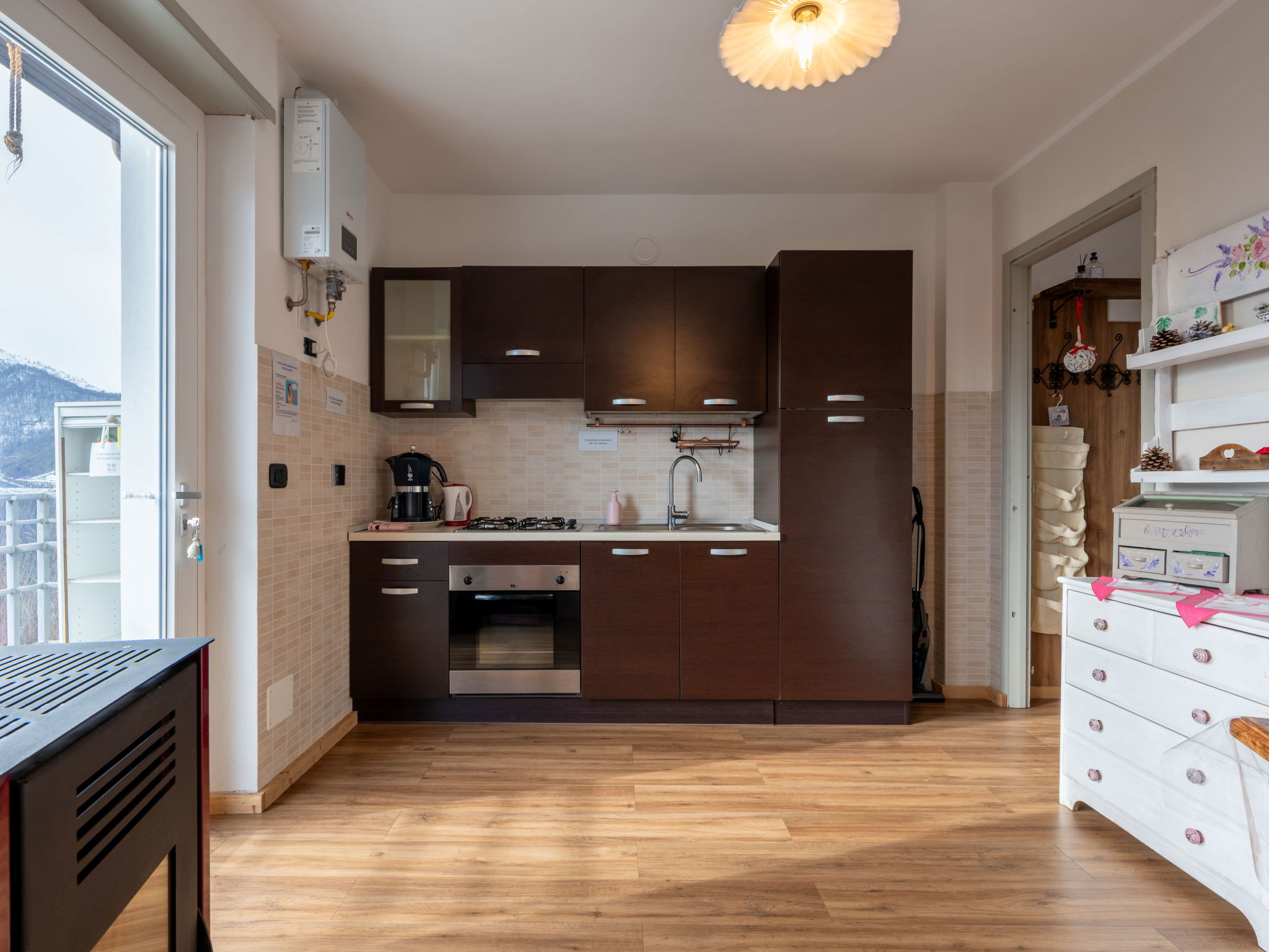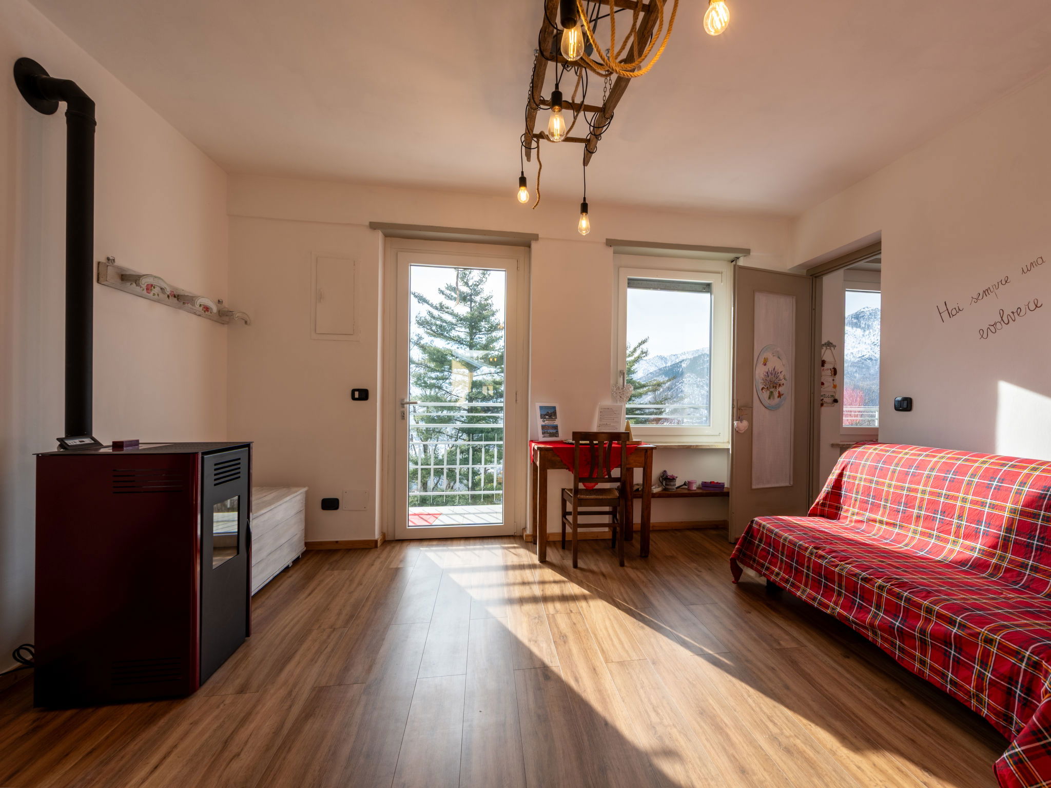 "Trekker’s Home L'Infinito", 3-room apartment 70 m2 on 2nd floor. Bright, modern and cosy furnishings: living/sleeping room with 2 x 2 bunk beds, heating stove. Exit to the balcony. 1 double bedroom. Exit to the balcony. Kitchen-/living room (oven, 4 gas rings, kettle, electric coffee machine) with dining table and heating stove. Exit to the balcony. Bath/bidet/WC. Heating. Parquet floors. 2 balconies. Beautiful panoramic view of the mountains and the countryside. Facilities: baby cot for up to 2 year olds, hair dryer. Internet (WiFi, free). Please note: maximum 2 pets/ dogs allowed. Private entrance, smoke alarm, fire extinguisher. IT001188C24MFDF3IB