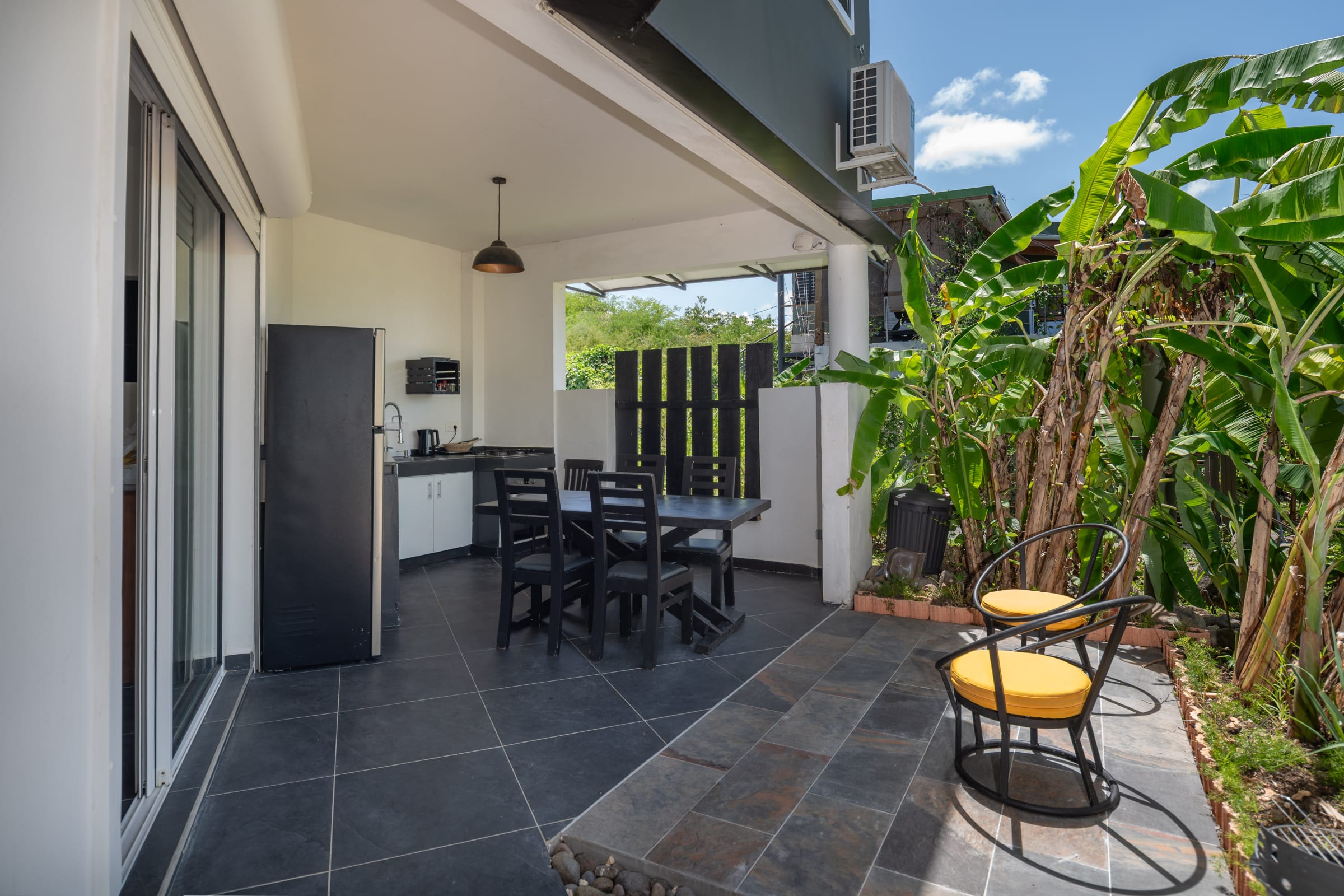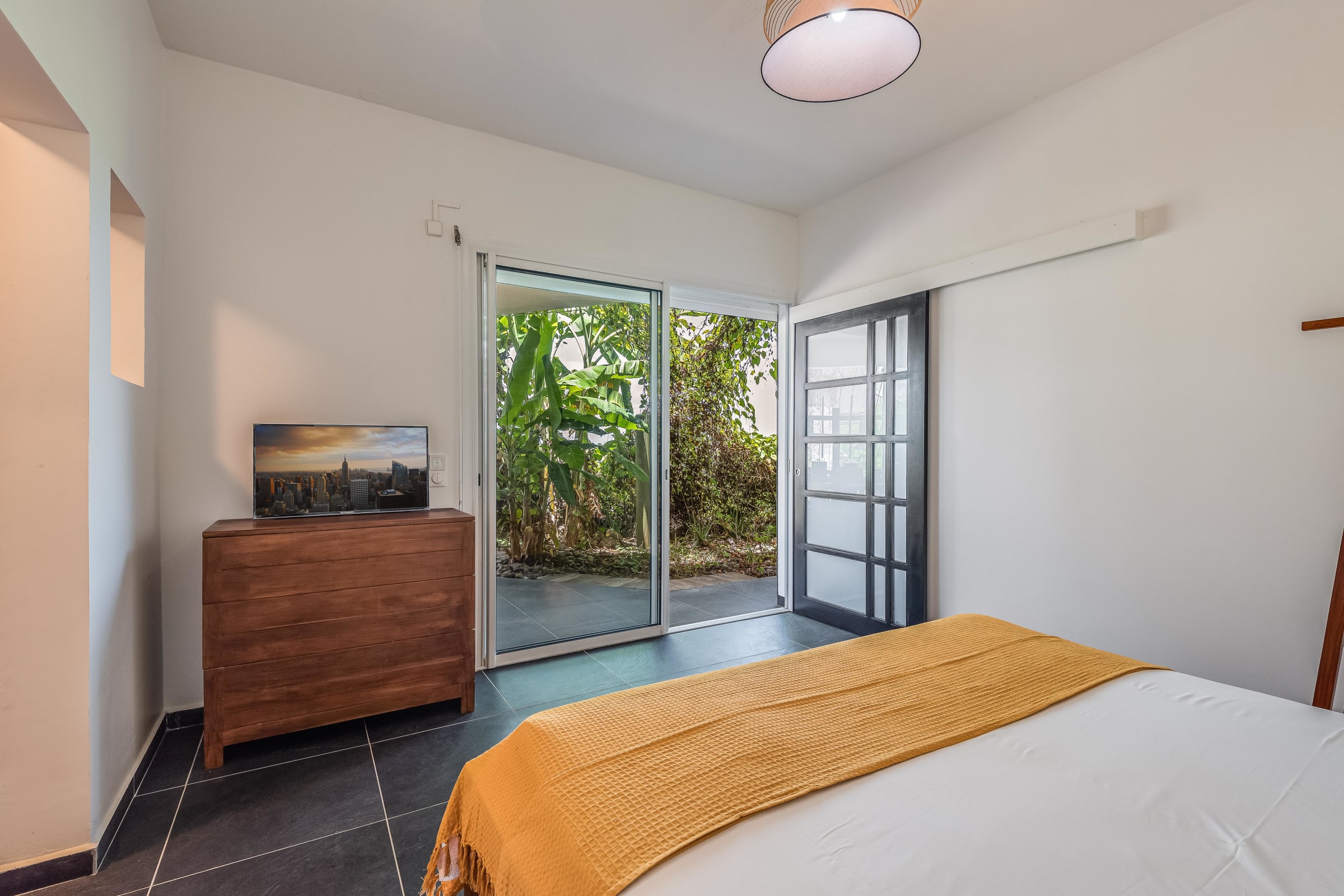 Dive into Caribbean history and charm with Canne Blanche Apartment, where Guadeloupe’s lush nature enhances every moment of your stay. Spacious and refined, this 80 m² ground-floor apartment comfortably accommodates 4 guests. It features two elegant bedrooms, each with a king-size bed and a private bathroom, ensuring both privacy and comfort.