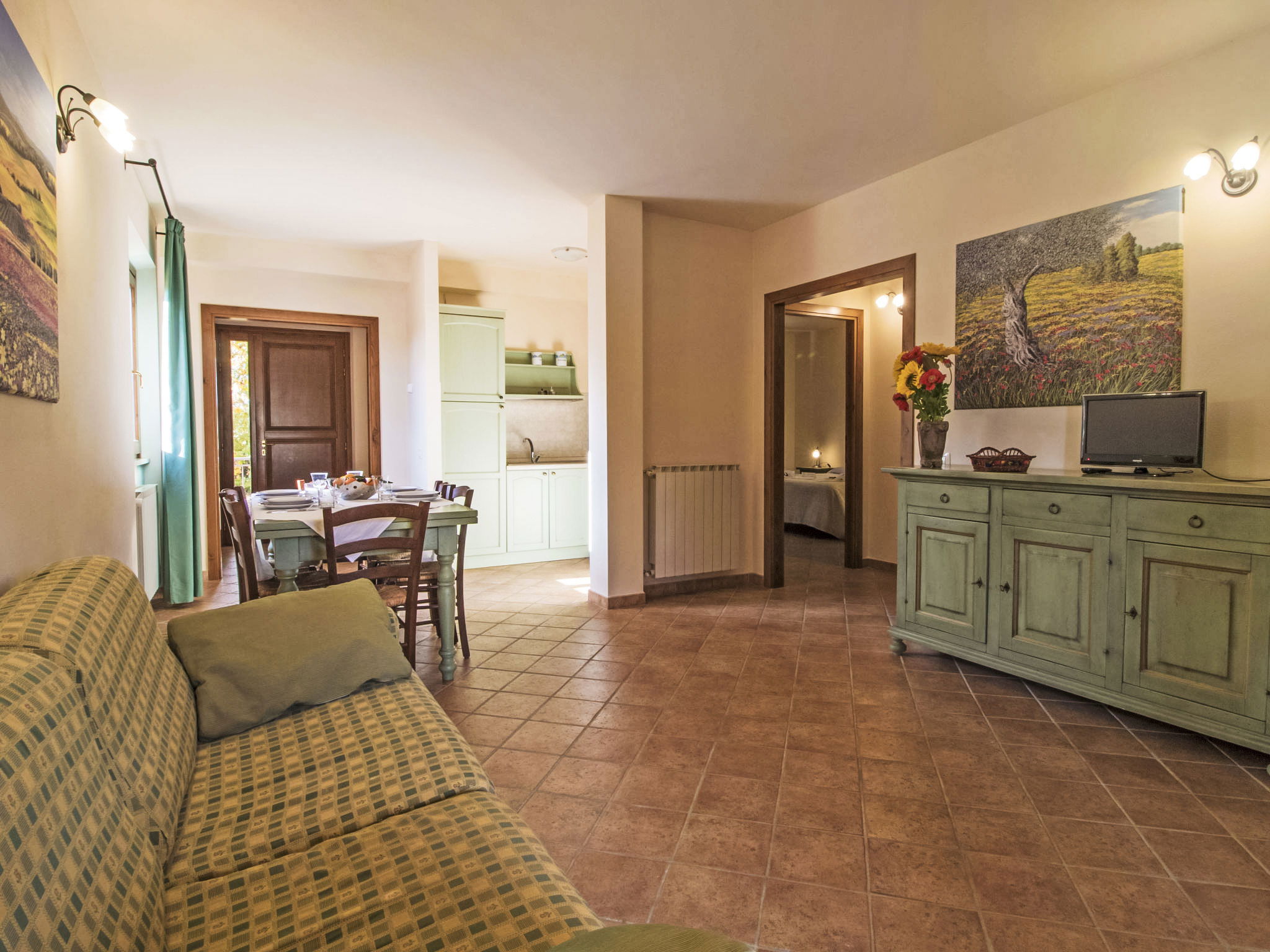 Thermal village with 30 apartments and 10 villas, 2 swimming pools including 1 thermal water from natural springs at 37°C (350m2, irregular shape) open all year round and 1 children´s pool. Every unit with private parasols and loungers in the relaxation area of the pool. Wellness center with face and body treatments and various packages, to be booked on site. Life and bike trail, partner riding school, food and wine tours. The structure develops around a millenary parish church. Beautiful resort "Thermae", 460 m a.s.l.. 10 houses in the residence. 30 apartments in the residence. 3 km from the centre of Sorano, 7 km from the centre of Pitigliano, in a sunny position, 55 km from the sea, in the countryside. For shared use: park 6 ha, 2 swimming pools (17 x 11 m, seasonal availability: 01.Jan. - 31.Dec.) with internal staircase. Unconventional pool shape. Children's pool, outdoor shower, tennis, table tennis, barbecue, children's playground. In the complex: reception, restaurant, bar, WiFi, massage (extra). Hot tub (extra). Sun terrace, laundry, washing machine (for shared use, extra), heating to be paid on the spot, heating available only from 01.Nov. - 15.Apr., bicycles available (extra). Linen change weekly. Room cleaning on request (extra). Breakfast and half board on request (extra). Motor access to the house. Parking at 200 m. E-charging station. Grocery 3 km, supermarket 7 km, restaurant 3 km, bus stop 300 m, sandy beach 55 km, bathing lake "Bolsena" 25 km. Riding stable 800 m. Nearby attractions: Grotte Di Castro 22 km, Saturnia 28 km, Capalbio 52 km, Monte Argentario 45 km. Well-known lakes can easily be reached: Bolsena 25 km. Please note: car recommended. Suitable for families. The complex has night security. Residence with electric gates. The photograph shows a typical example. Obligation to wear bathing caps.