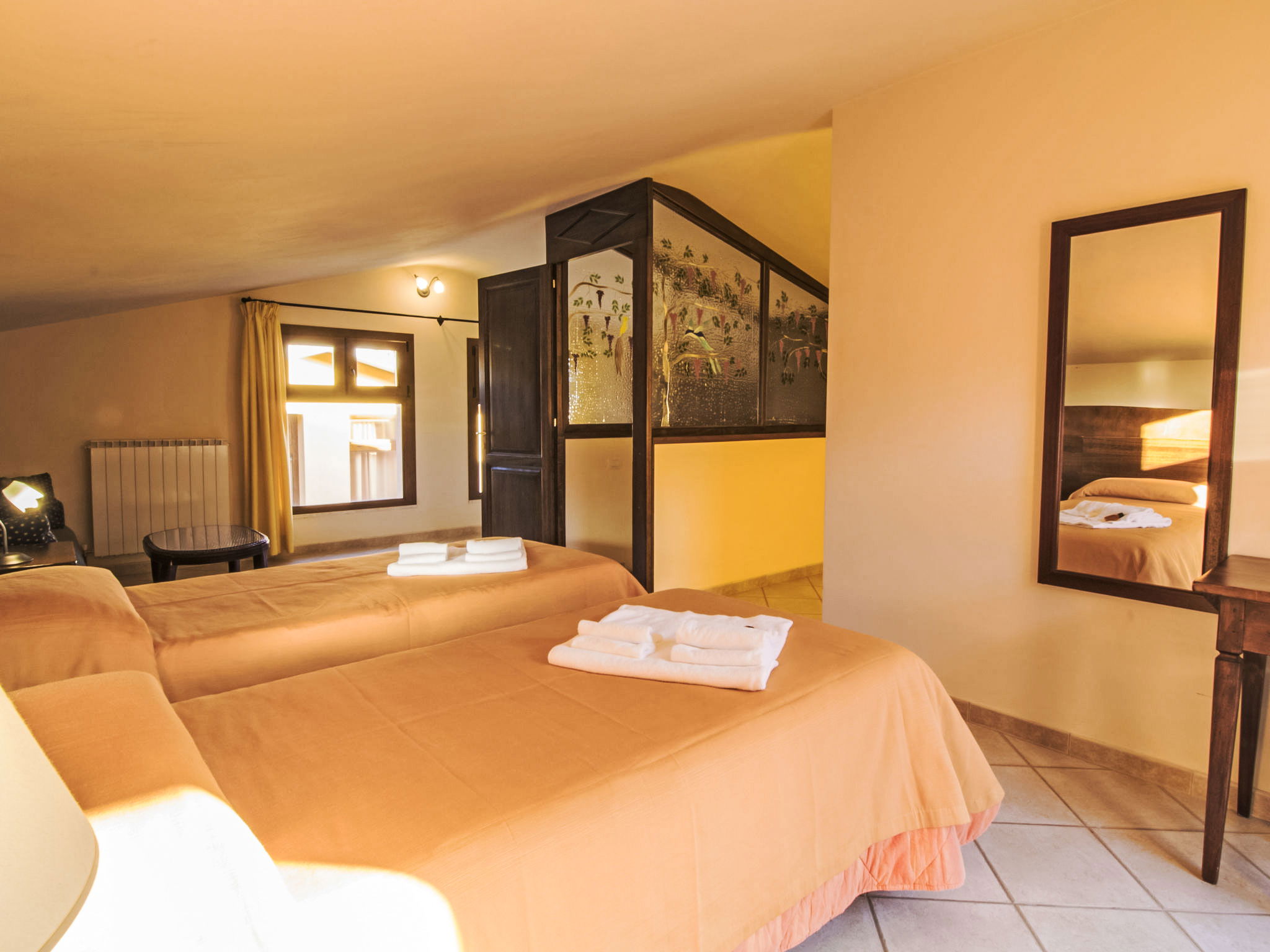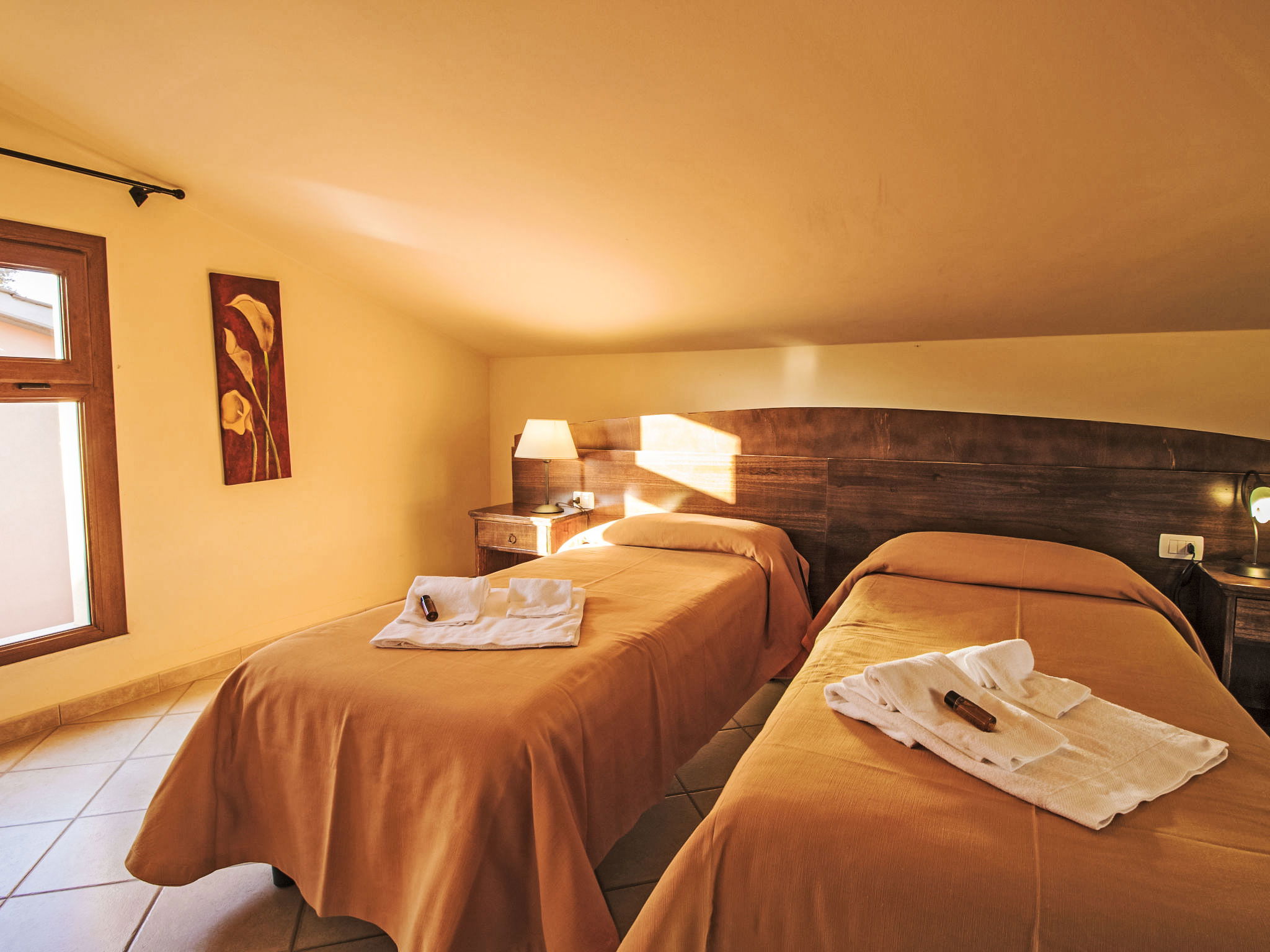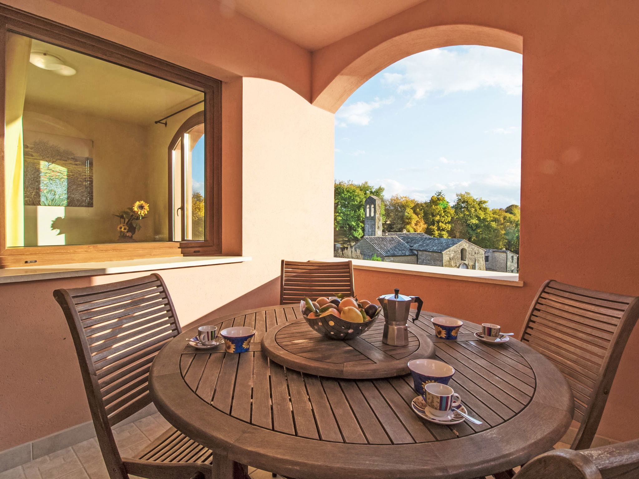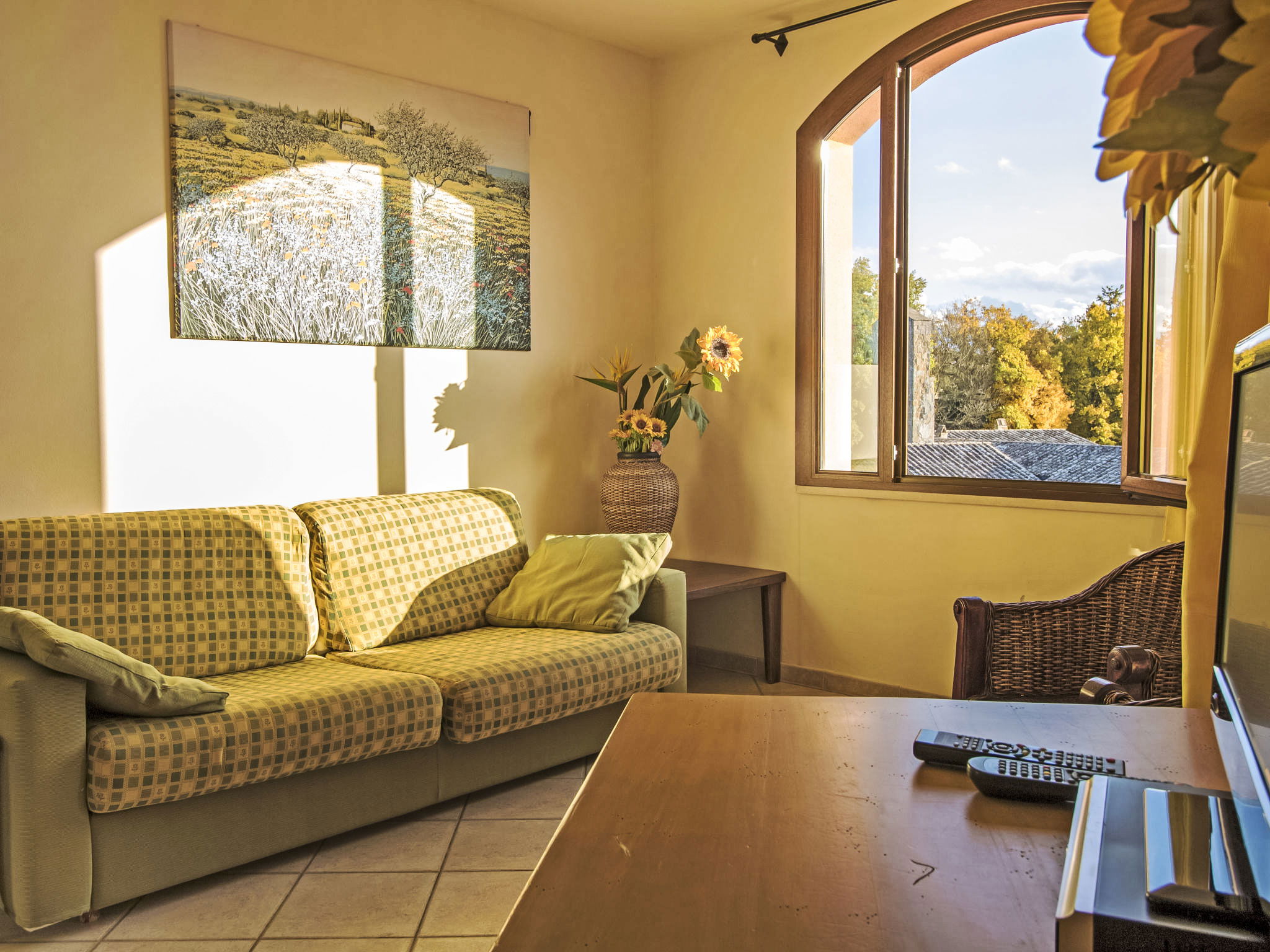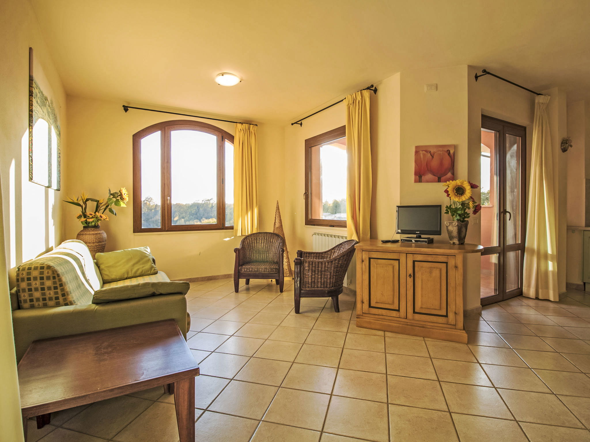 Thermal village with 30 apartments and 10 villas, 2 swimming pools including 1 thermal water from natural springs at 37°C (350m2, irregular shape) open all year round and 1 children´s pool. Every unit with private parasols and loungers in the relaxation area of the pool. Wellness center with face and body treatments and various packages, to be booked on site. Life and bike trail, partner riding school, food and wine tours. The structure develops around a millenary parish church. Beautiful resort "Thermae", 460 m a.s.l.. 10 houses in the residence. 30 apartments in the residence. 3 km from the centre of Sorano, 7 km from the centre of Pitigliano, in a sunny position, 55 km from the sea, in the countryside. For shared use: park 6 ha, 2 swimming pools (17 x 11 m, seasonal availability: 01.Jan. - 31.Dec.) with internal staircase. Unconventional pool shape. Children's pool, outdoor shower, tennis, table tennis, barbecue, children's playground. In the complex: reception, restaurant, bar, WiFi, massage (extra). Hot tub (extra). Sun terrace, laundry, washing machine (for shared use, extra), heating to be paid on the spot, heating available only from 01.Nov. - 15.Apr., bicycles available (extra). Linen change weekly. Room cleaning on request (extra). Breakfast and half board on request (extra). Motor access to the house. Parking at 200 m. E-charging station. Grocery 3 km, supermarket 7 km, restaurant 3 km, bus stop 300 m, sandy beach 55 km, bathing lake "Bolsena" 25 km. Riding stable 800 m. Nearby attractions: Grotte Di Castro 22 km, Saturnia 28 km, Capalbio 52 km, Monte Argentario 45 km. Well-known lakes can easily be reached: Bolsena 25 km. Please note: car recommended. Suitable for families. The complex has night security. Residence with electric gates. The photograph shows a typical example. Obligation to wear bathing caps.