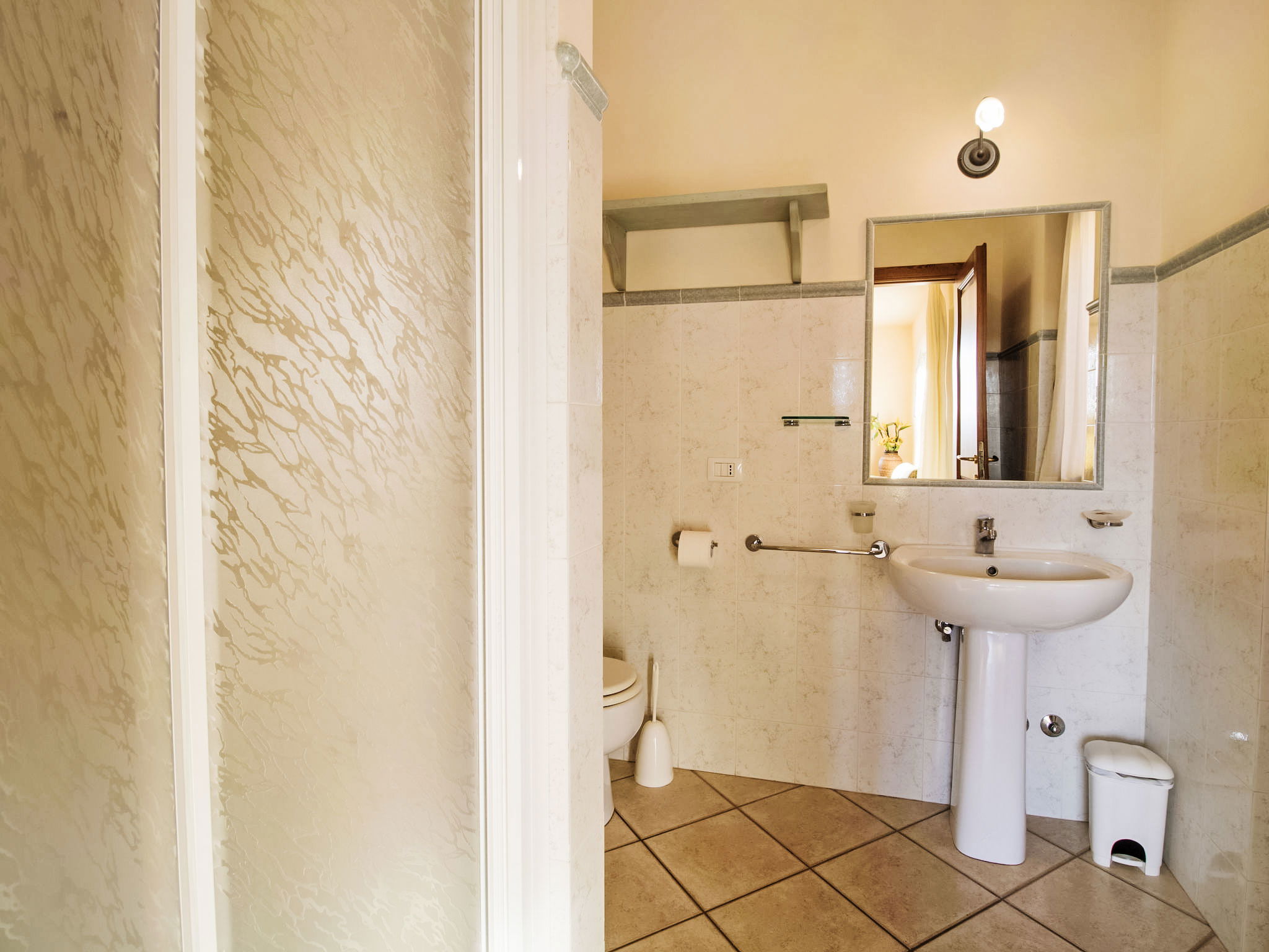 "Thermae Apartment 14", 3-room apartment 120 m2 on 2 levels on 1st floor. Object suitable for 4 adults + 2 children. Comfortable and tasteful furnishings: large living/dining room with 1 double sofabed and satellite TV (flat screen). Exit to the terrace. 1 double bedroom with shower/bidet/WC. Exit to the loggia. Kitchenette (4 hot plates, microwave, freezer). Shower/bidet/WC. Gas heating. Heating available only from 01.11. to 15.04. Upper floor: 1 large room with sloping ceilings with 2 beds. Terrace 16 m2, terrace 11 m2. Terrace furniture, box-room. Beautiful view of the swimming pool. Facilities: washing machine, hair dryer. Parking at the house. Maximum 1 pet/ dog allowed. Sofa bed as extra bed for children up to 12 years (free of charge). IT053026B4ANCKKI4O