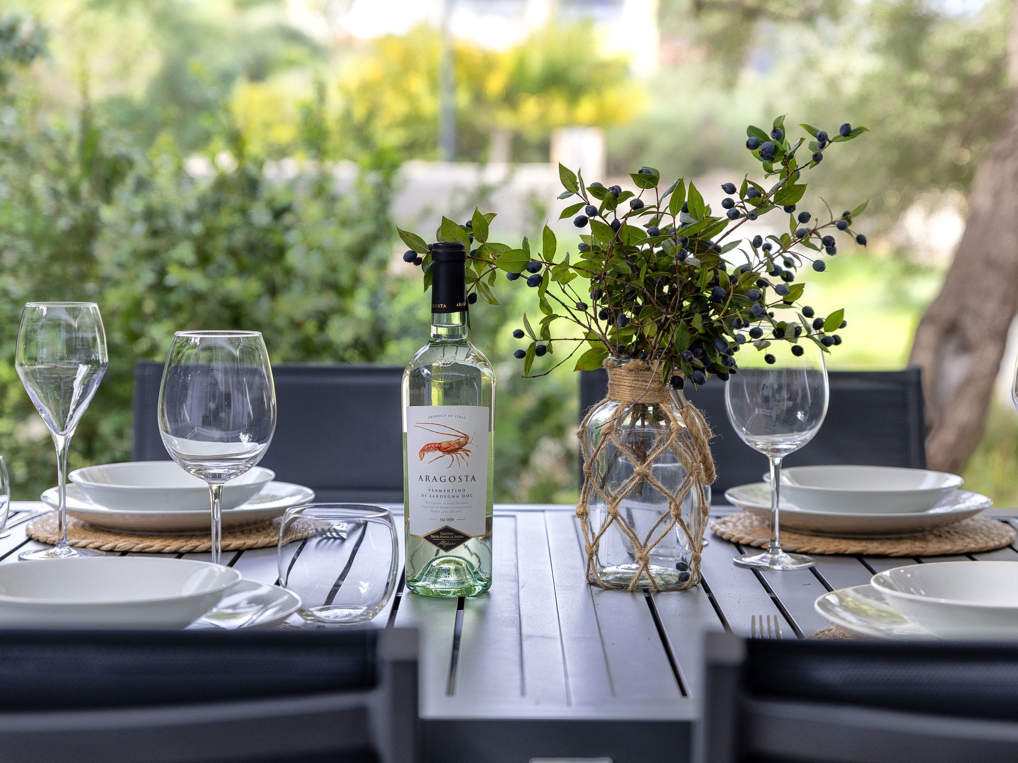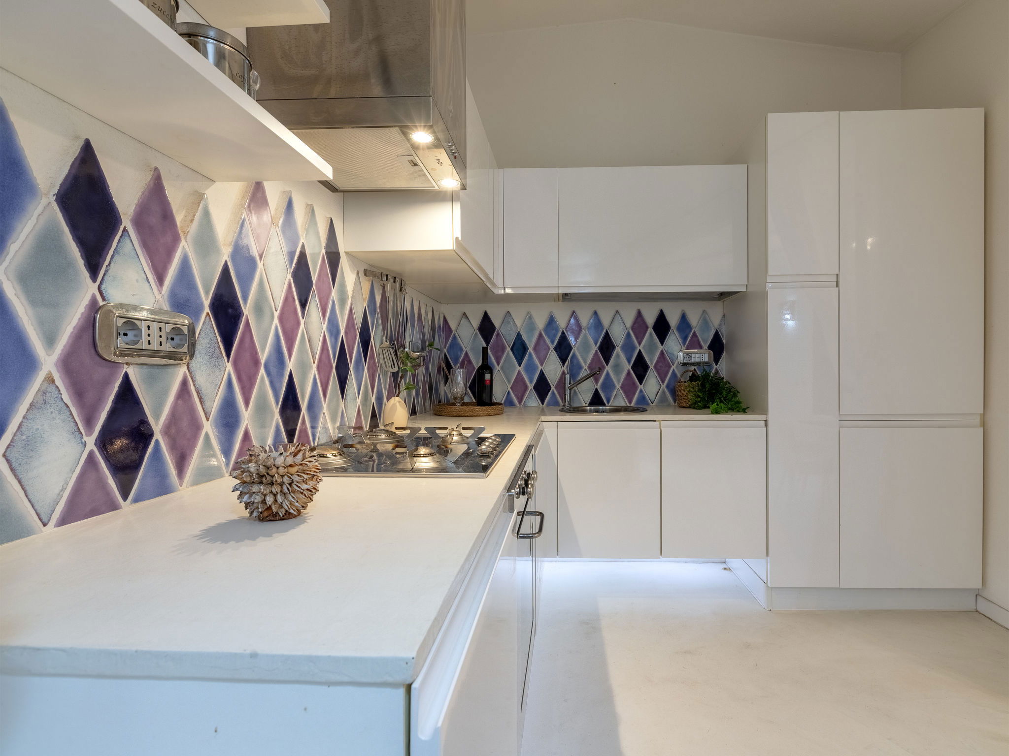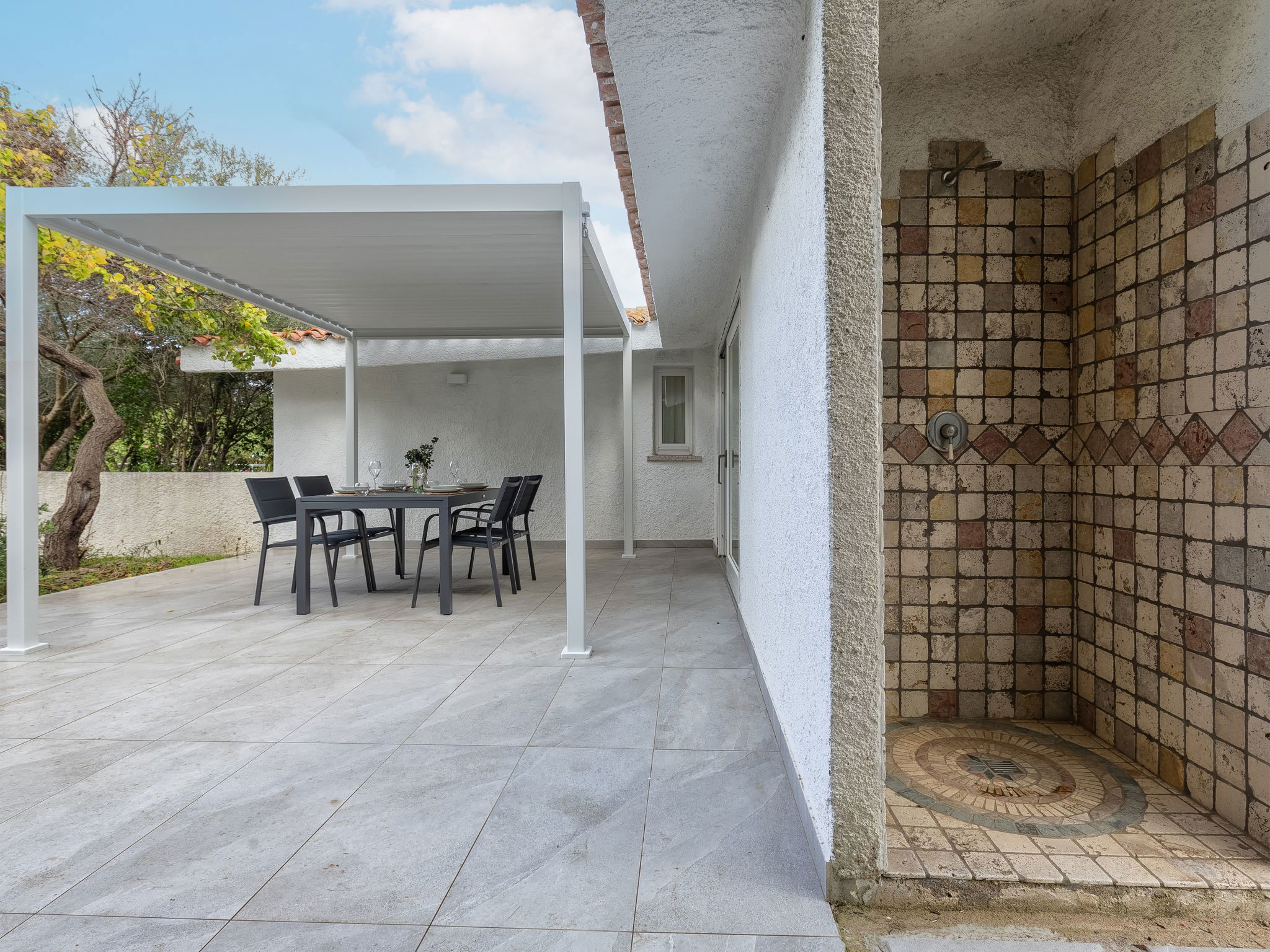 3-room house 57 m2, on the ground floor. Modern and luxurious furnishings: living/dining room with satellite TV (flat screen). Exit to the terrace. 1 double bedroom with satellite TV (flat screen). 1 room with 1 x 2 bunk beds. Large, open kitchen (4 hot plates, oven, dishwasher, kettle, microwave, electric coffee machine). Shower/bidet/WC. Air-conditioning, forced-air heating. Large terrace partly roofed. Terrace furniture, barbecue (portable), sitting area. Facilities: washing machine, iron, hair dryer. Internet (WiFi, free). Please note: maximum 1 pet/ dog allowed. Fire extinguisher. IT090081C2000Q8123